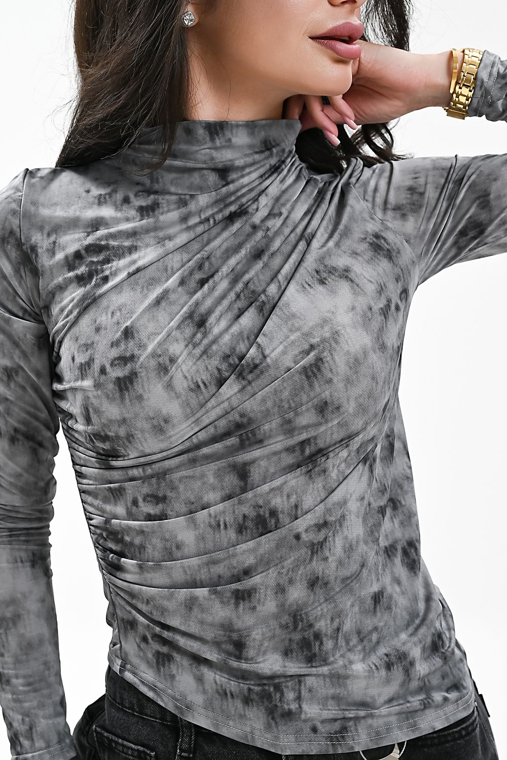 Лонгслив с драпировкой - серый гранит