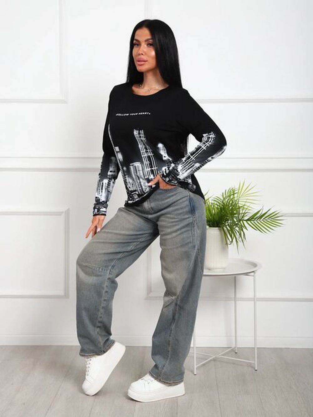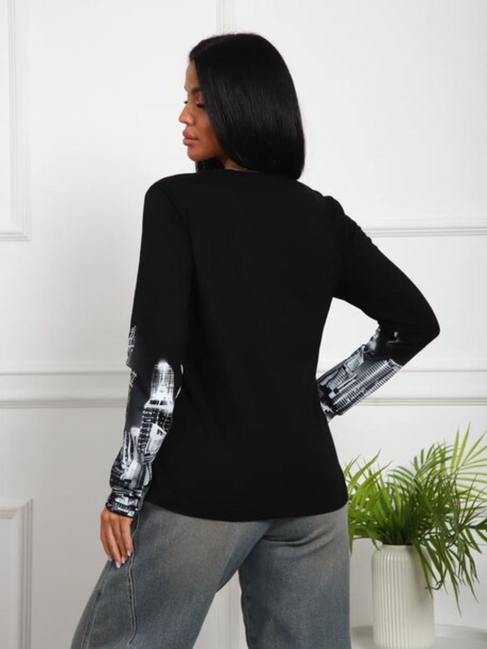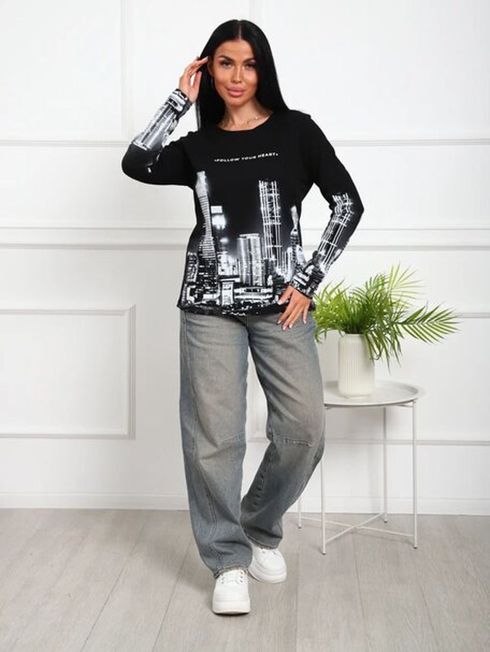 Лонгслив с рисунком Город Арт. 1097 - черный