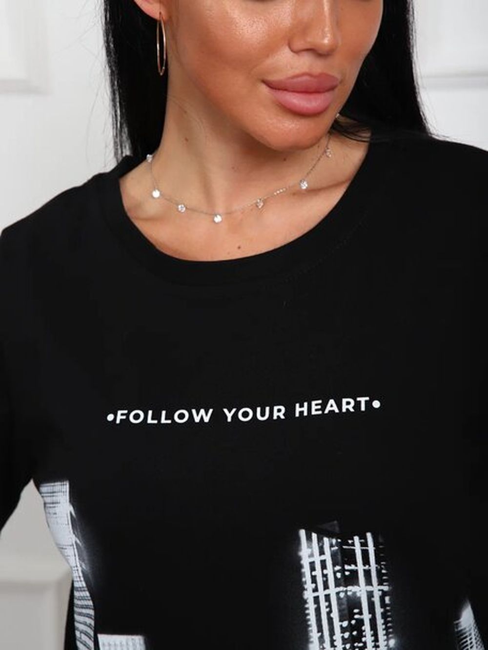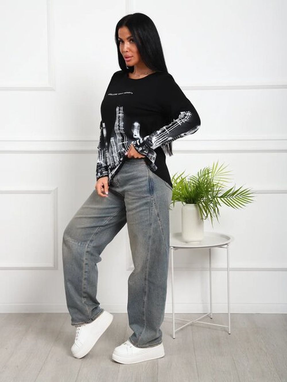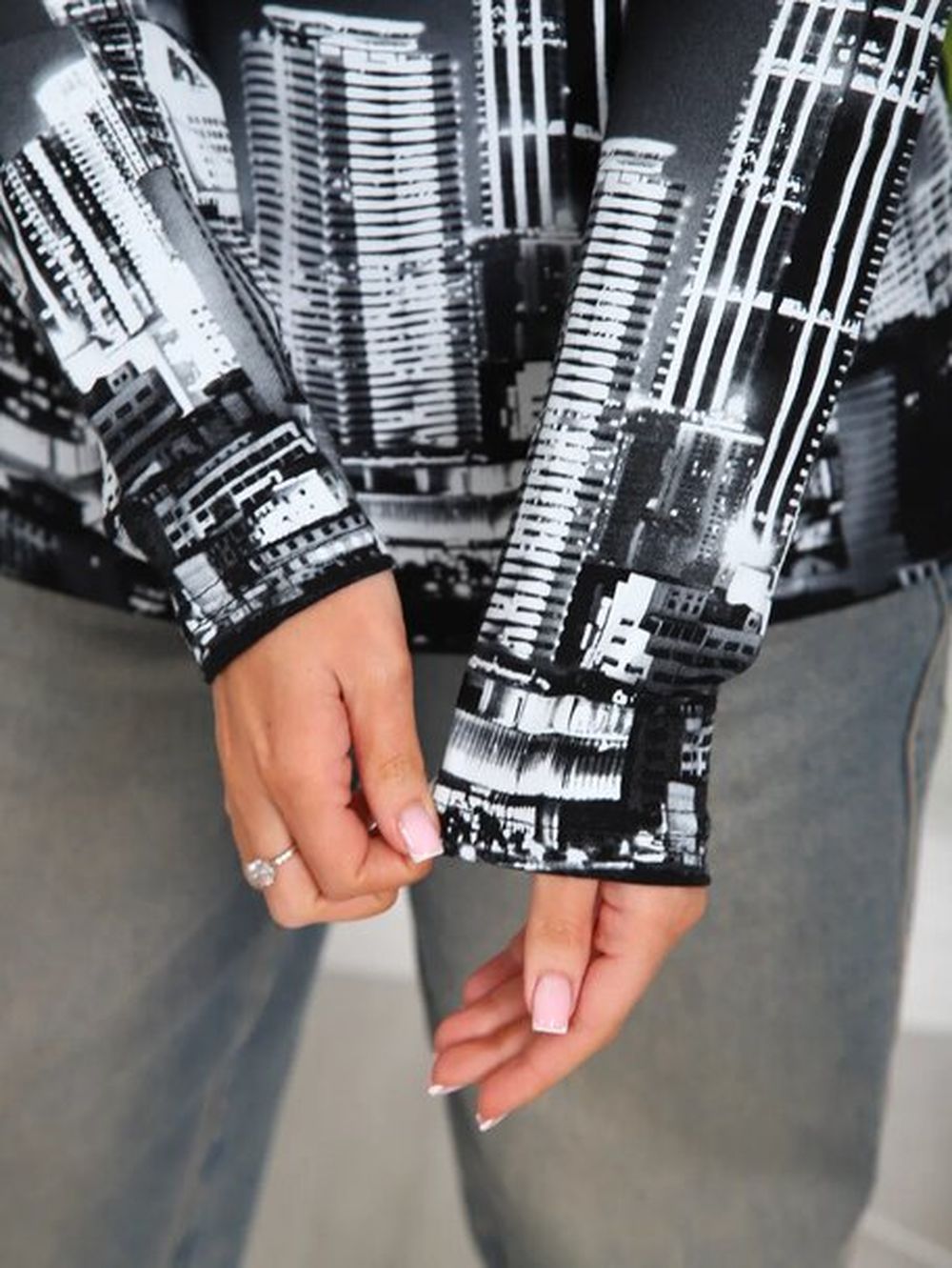 Лонгслив с рисунком Город Арт. 1097 - черный