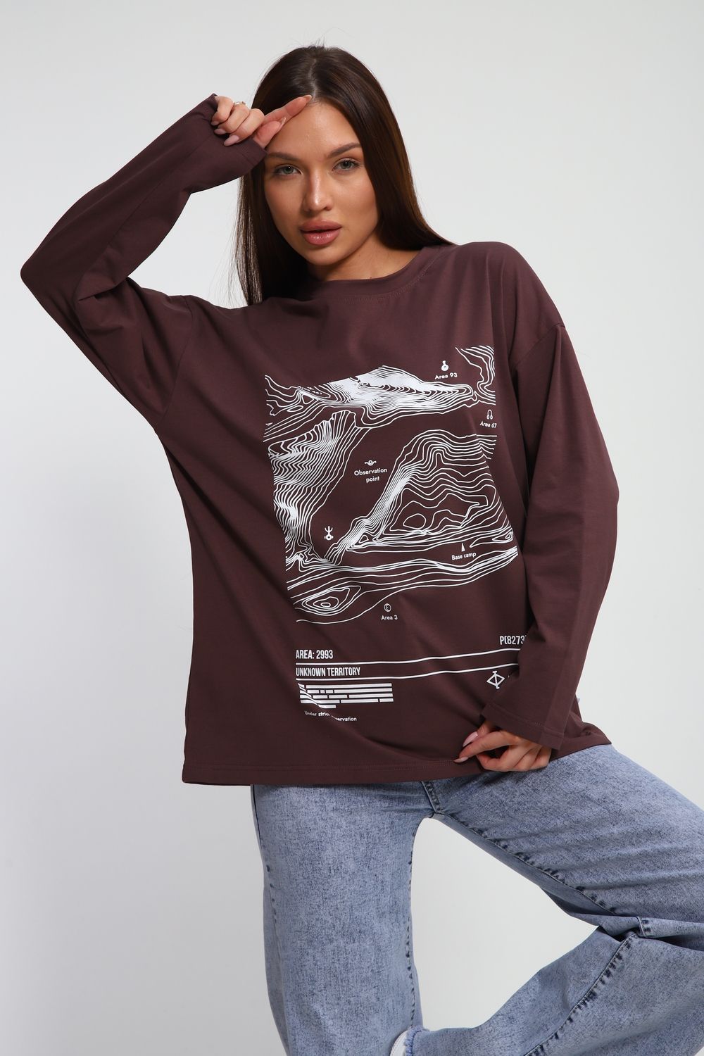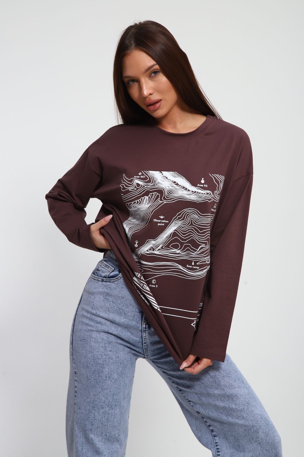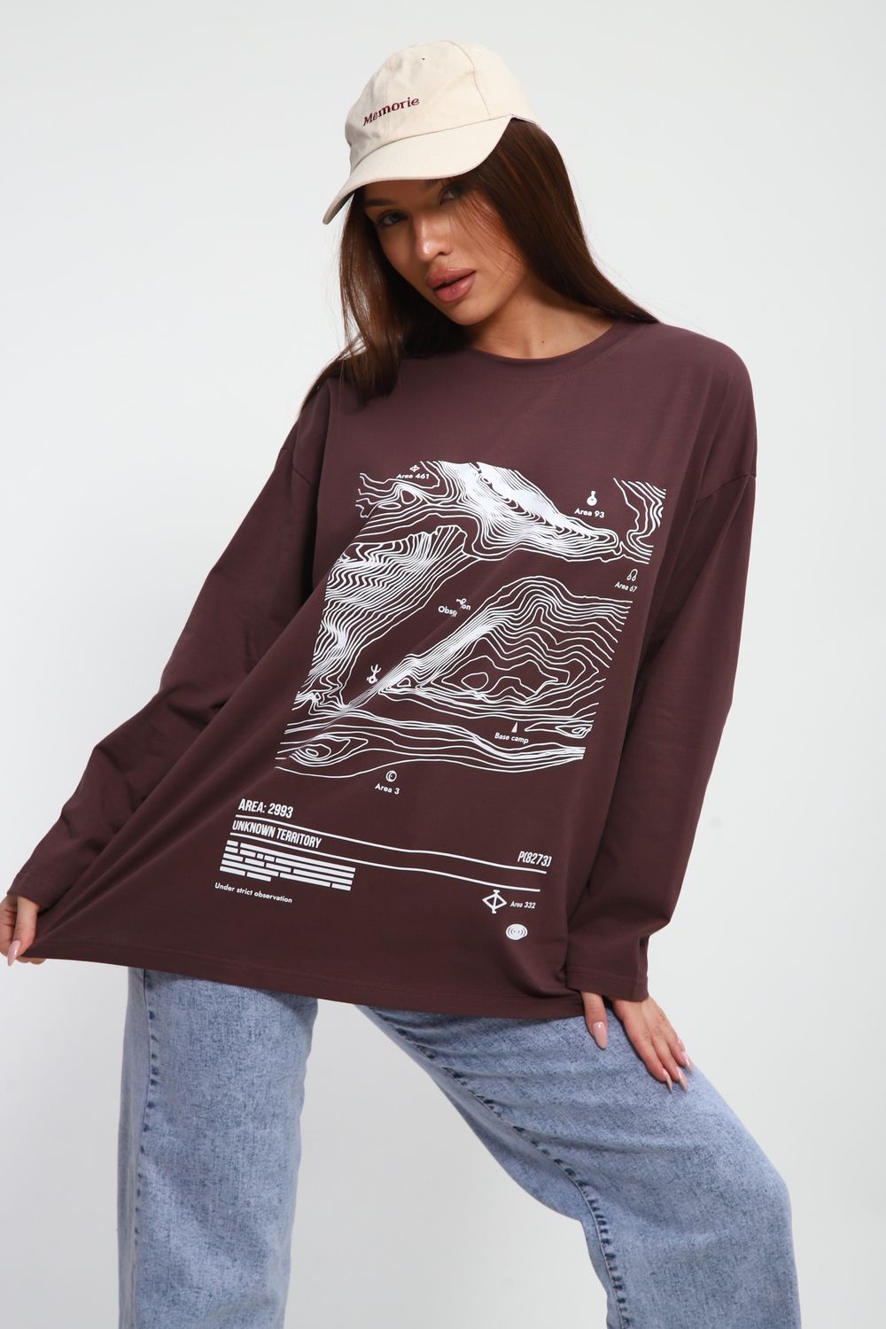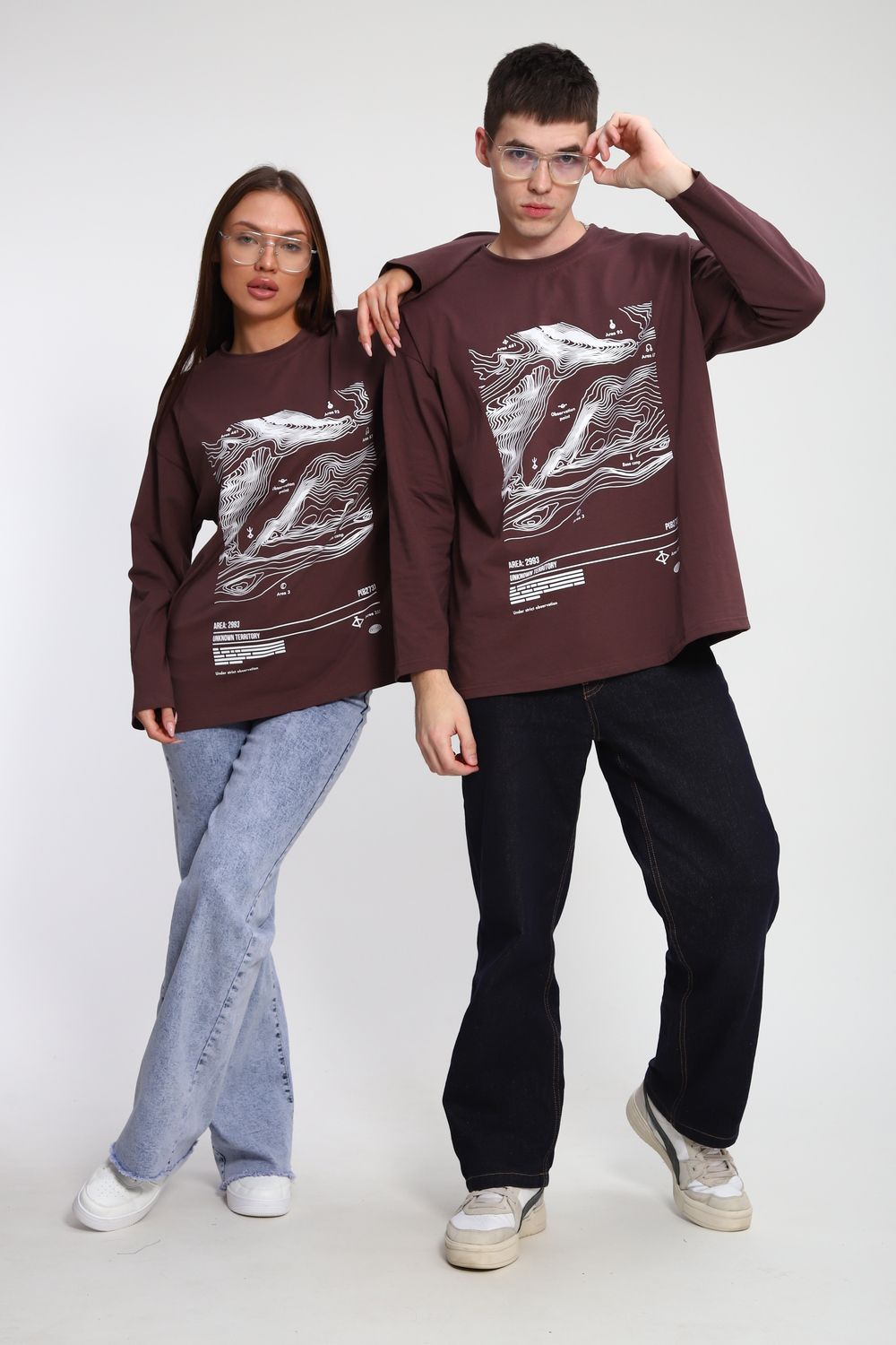 Лонгслив унисекс с принтом Карта ЛГ-01 - шоколад