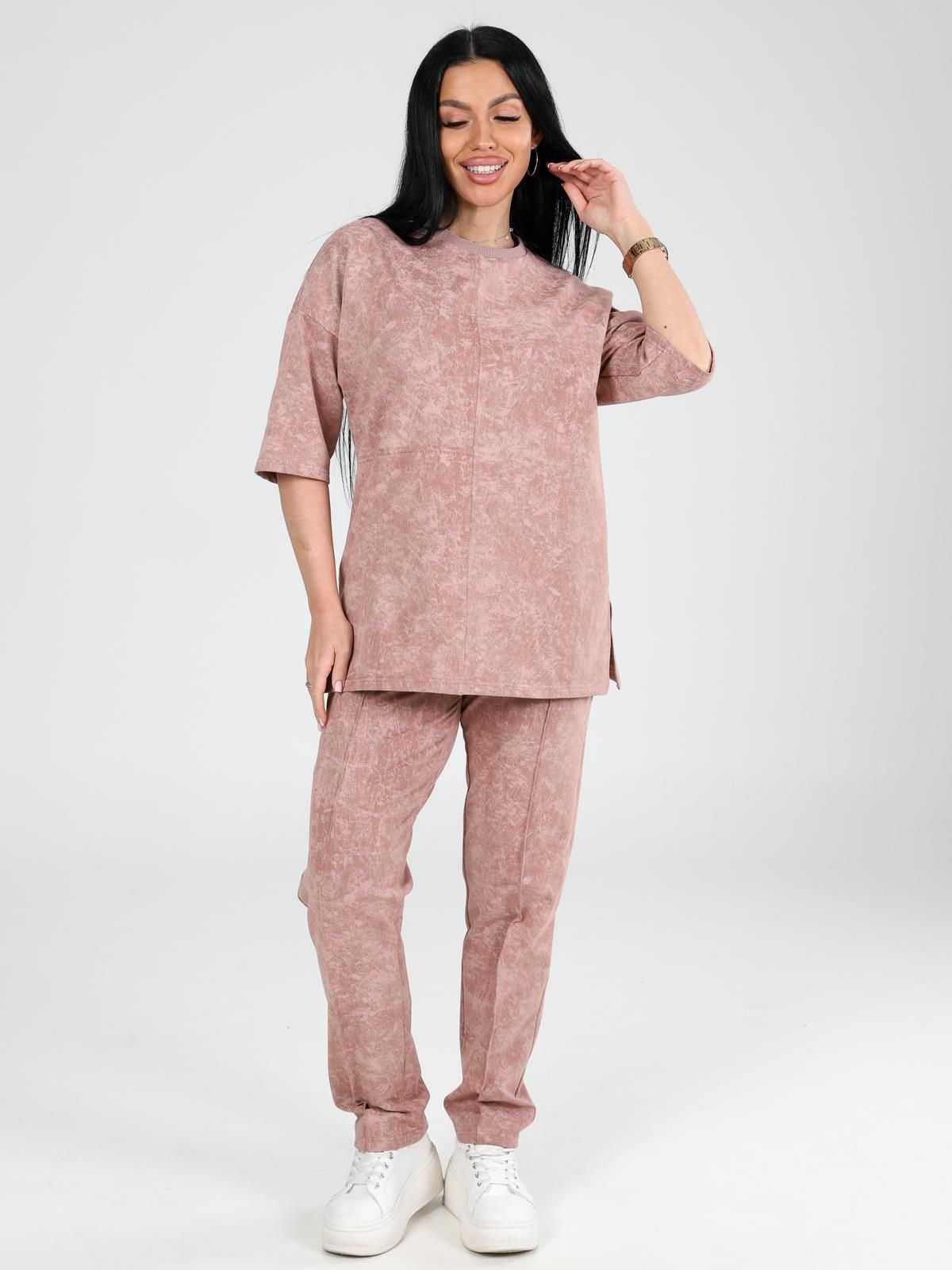 Трикотаж - Футер двунитка с пич эффектом (Хлопок 71%; Полиэстер 24%; Лайкра 5%).