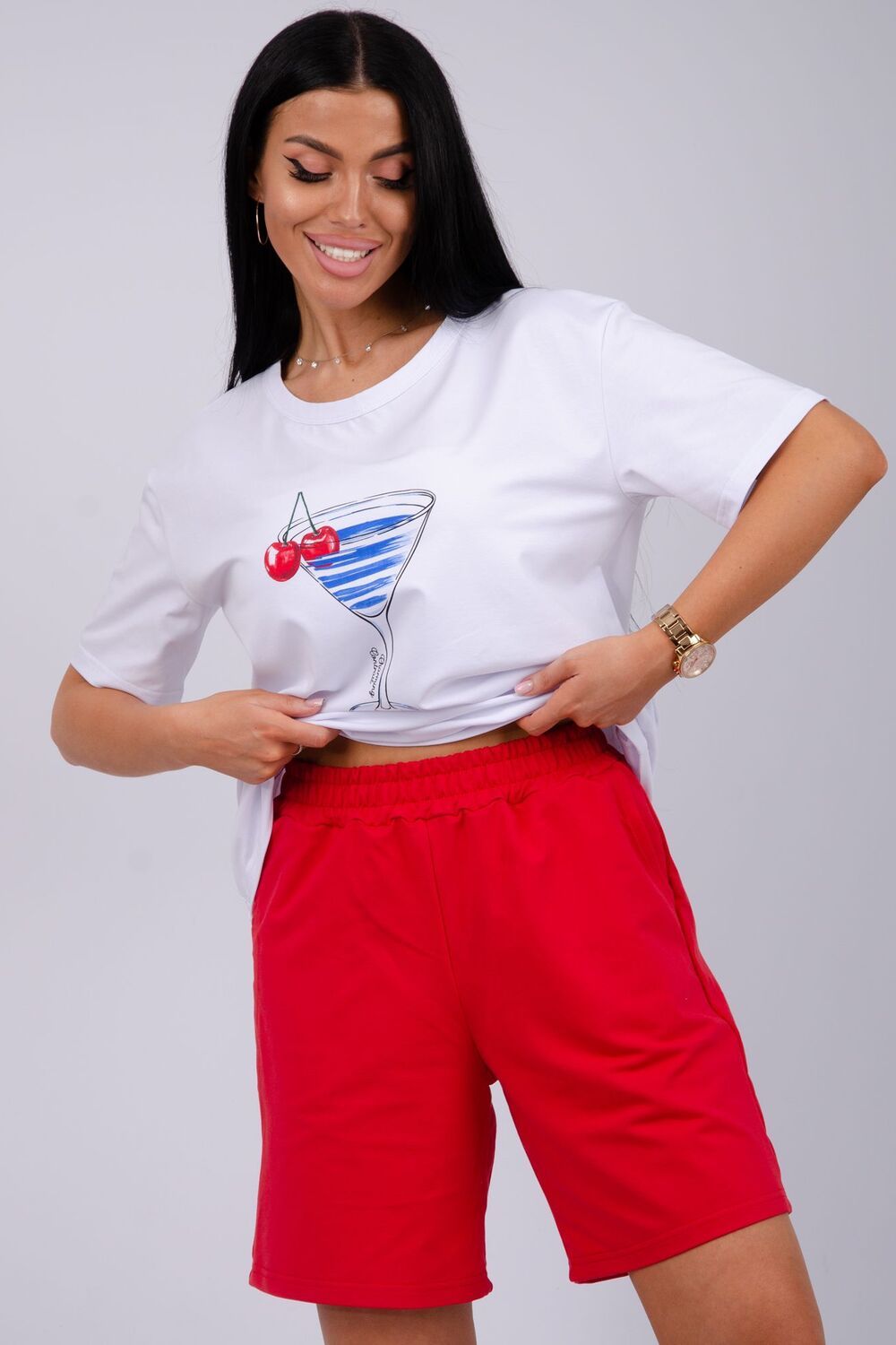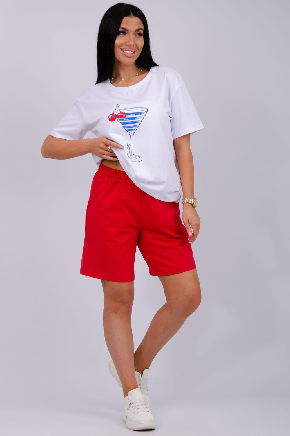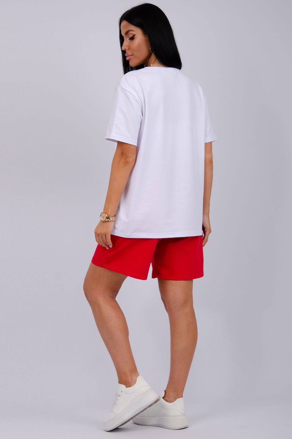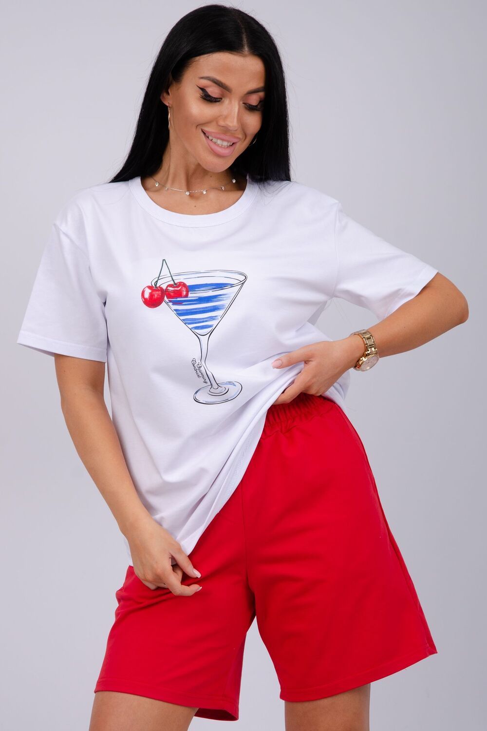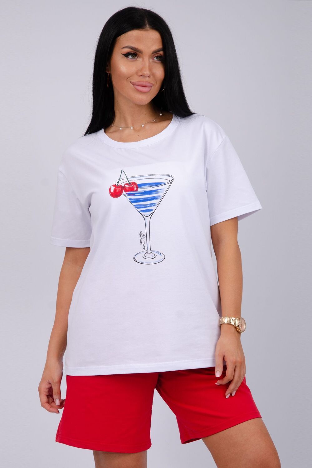 Стильный женский костюм - отличное дополнение гардероба на летний сезон. Этот комфортный комплект идеально подходит для отдыха дома или прогулок по свежему воздуху. Изготовленный из легких и дышащих тканей, он обеспечит вам максимальное удобство в жаркую погоду. Двойка состоит из футболки и шорт, которые созданы для того, чтобы дарить ощущение свободы и легкости, позволяя вам наслаждаться каждой минутой. Модель предлагается в больших размерах, что позволяет каждой женщине найти подходящий вариант. В нем вы будете чувствовать себя уверенно, независимо от того, проводите ли вы время за чтением книги в любимом кресле или готовите ужин на кухне. Такой комплект станет отличным выбором как для отдыха, так и для активного времяпрепровождения дома. Он станет вашим верным спутником на протяжении всего теплого времени года, придавая вашему стилю легкость и непринужденность. Рассмотрите его как практичный вариант для себя или в качестве подарка для близкой подруги, сестры или мамы. Этот костюм позволит насладиться комфортом и стилем в любой ситуации.
