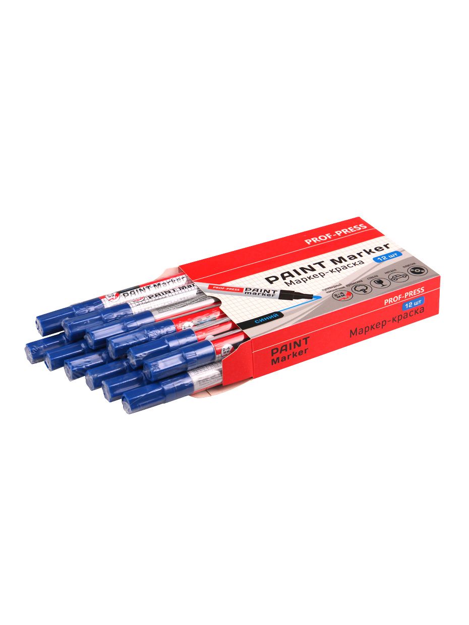 Маркер-краска подходит для письма на любых поверхностях, таких как: древесина, стекло, пластик, металл, резина, бумага, ткань. Количество штук в упаковке: 12. Благодаря спиртовой основе чернила высыхают быстро и не размазываются. Пулевидный пишущий узел, ширина линии 2-4 мм. Устойчив к стиранию, воде, свету, температурным воздействиям. Плотный колпачок предотвращает высыхание.