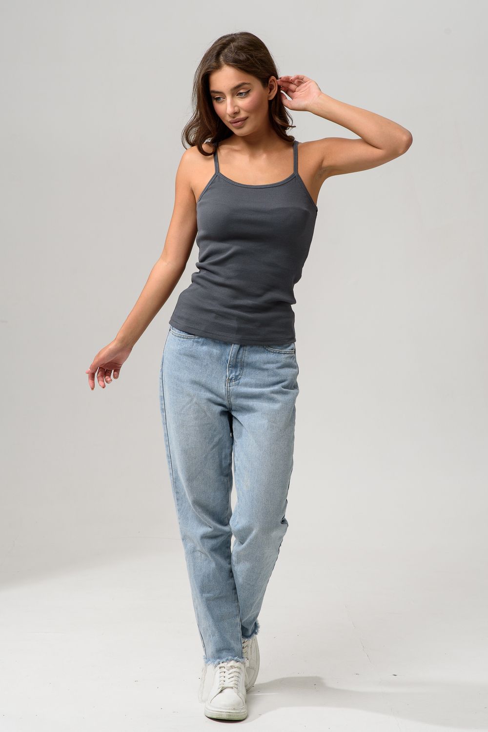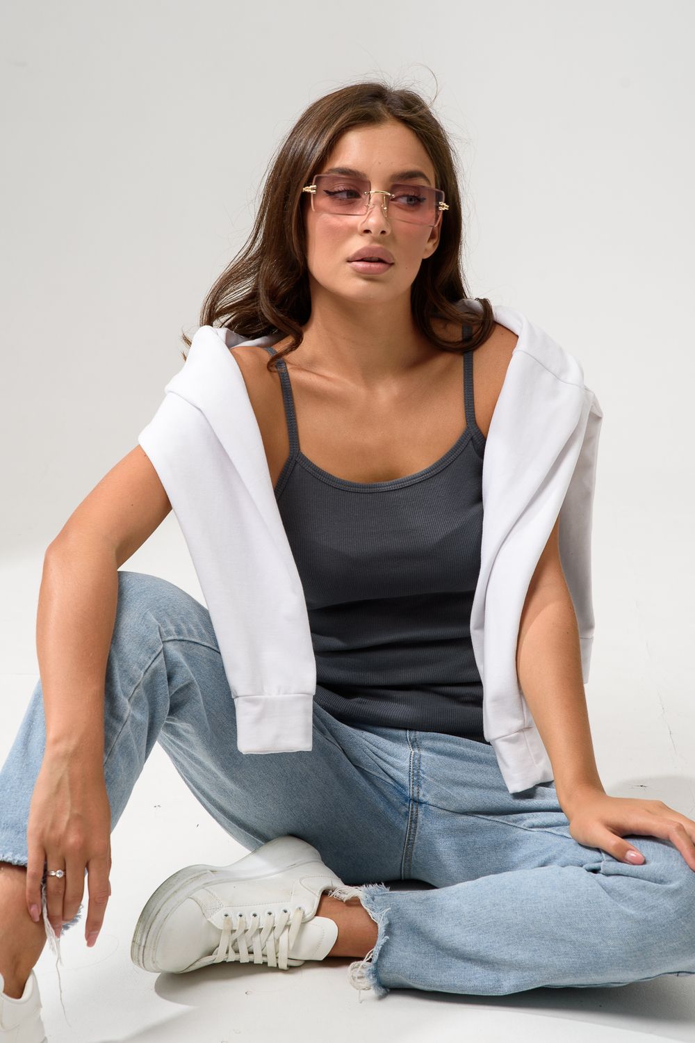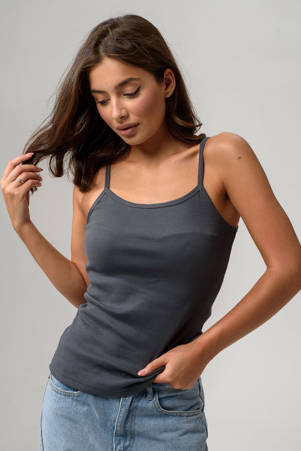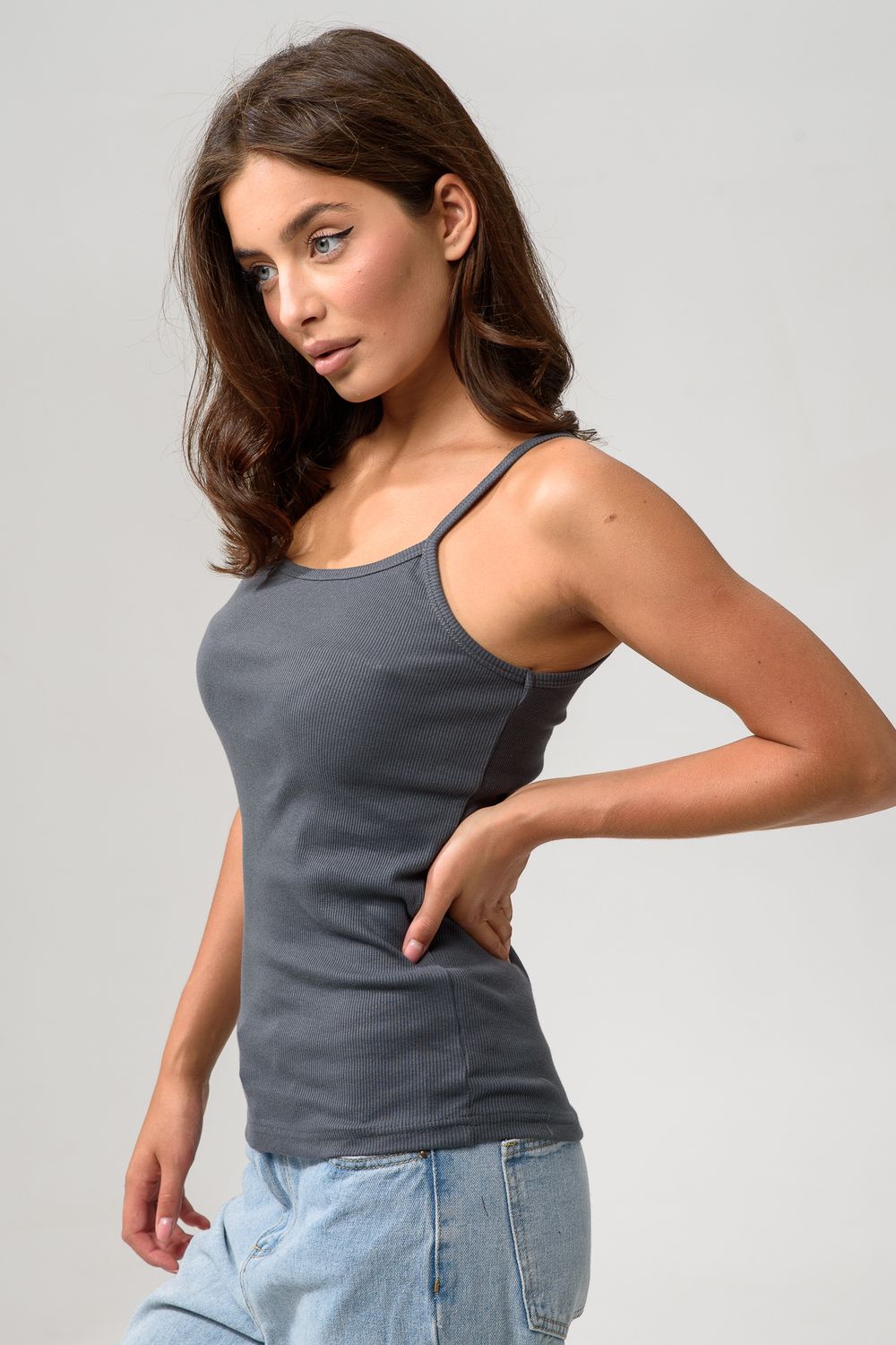 Трикотажная стильная майка из мягкого хлопка в рубчик. Содержит в себе хлопок и лайкру, изделия из такой ткани служат больше. Модная элегантная майка с квадратным вырезом идеально сочетается с джинсами жакетами и шортами. А небольшое количество эластана позволяет футболке сесть по фигуре.