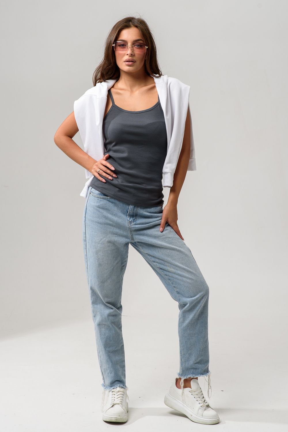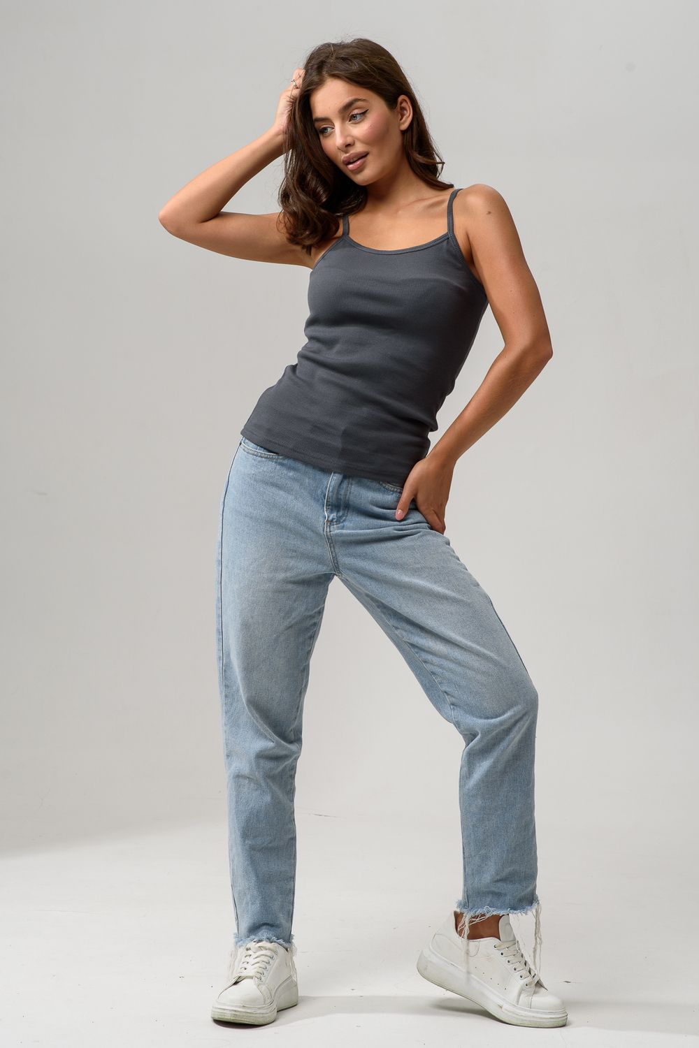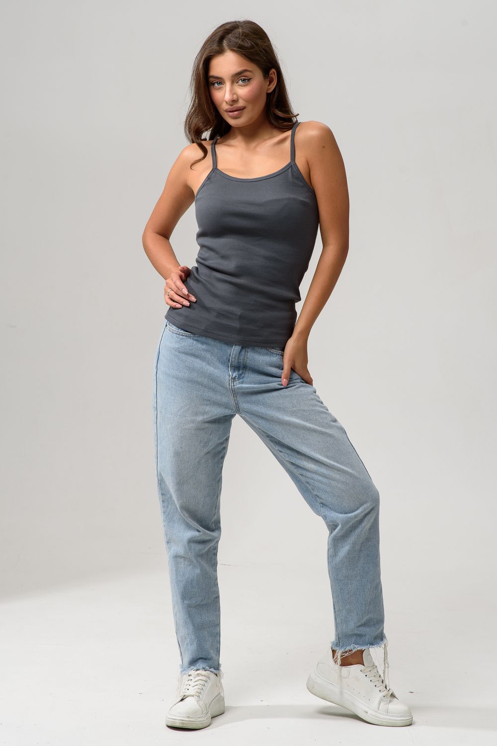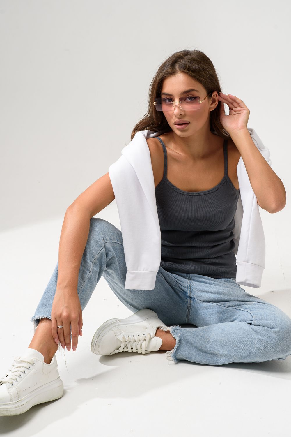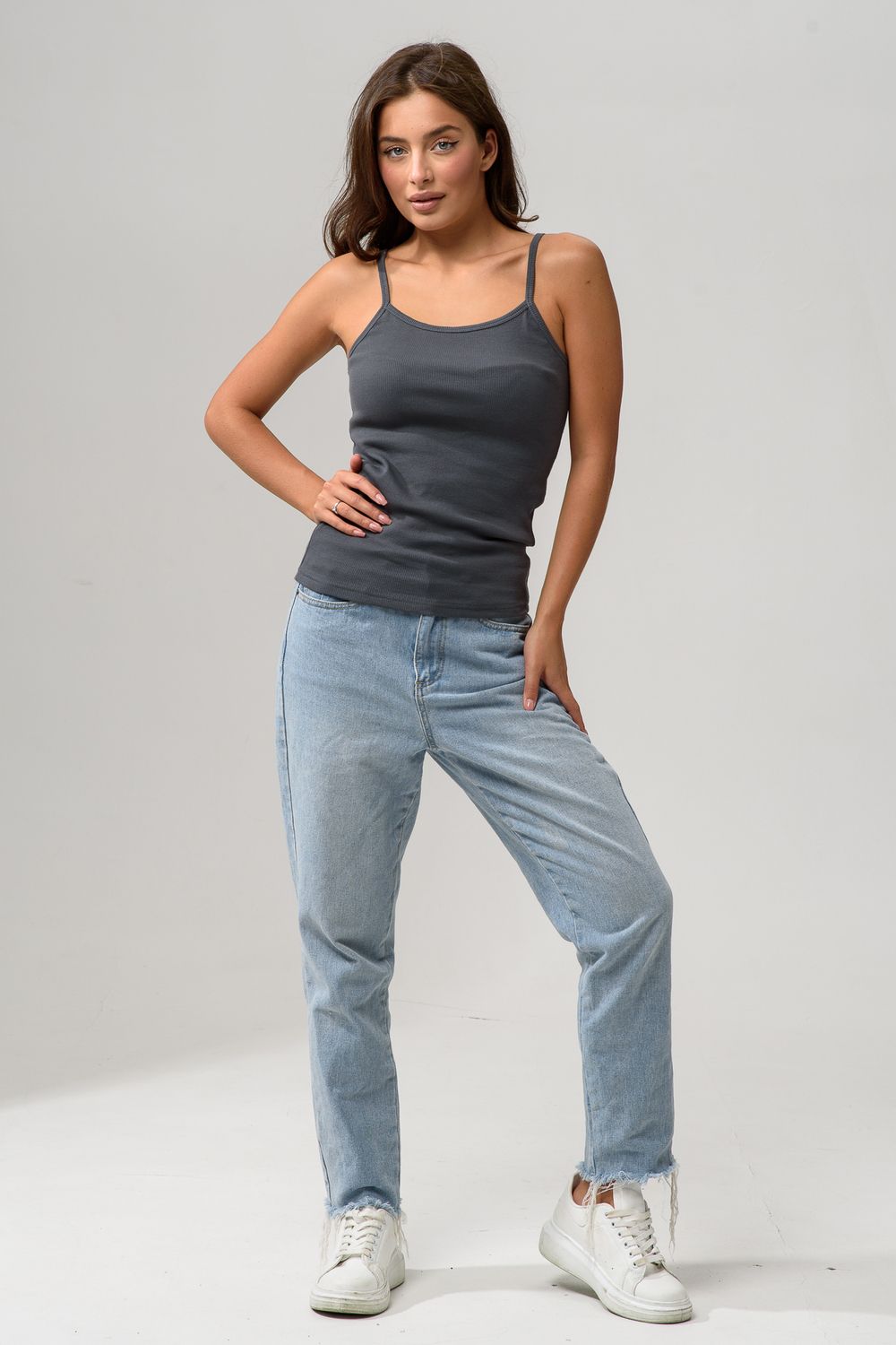 Трикотажная стильная майка из мягкого хлопка в рубчик. Содержит в себе хлопок и лайкру, изделия из такой ткани служат больше. Модная элегантная майка с квадратным вырезом идеально сочетается с джинсами жакетами и шортами. А небольшое количество эластана позволяет футболке сесть по фигуре.