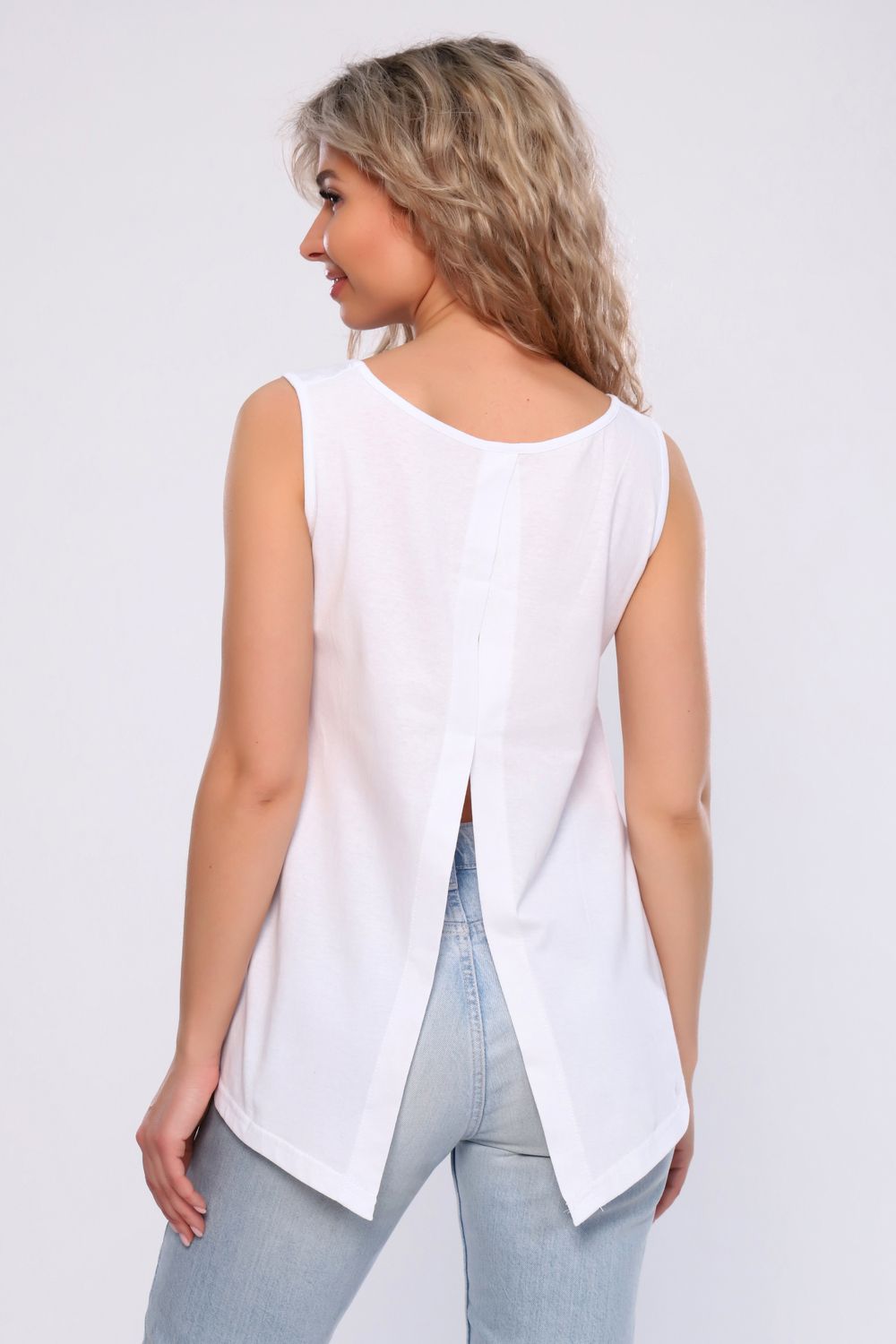 Майка женская изготовлена из 100% хлопкового трикотажа высокого качества, который приятен на ощупь и обеспечивает комфорт при ношении. Она имеет свободный крой и является базовым оверсайзом, что делает ее удобной и подходящей для различных типов фигур. Спинка удлиненная с разрезом делает ее более привлекательной.
