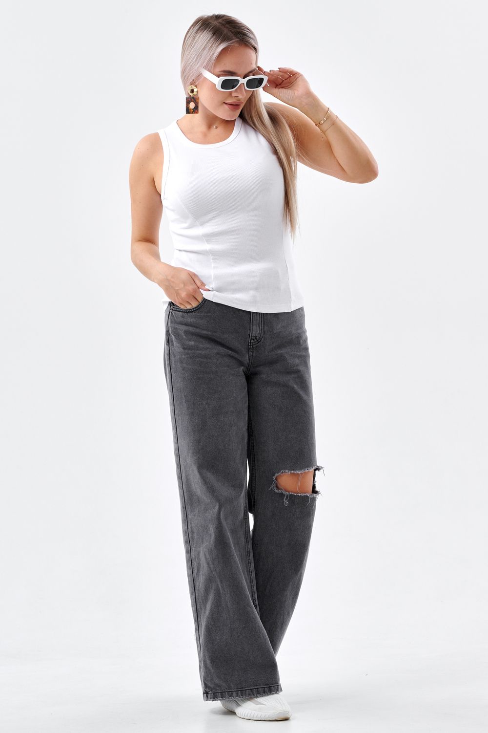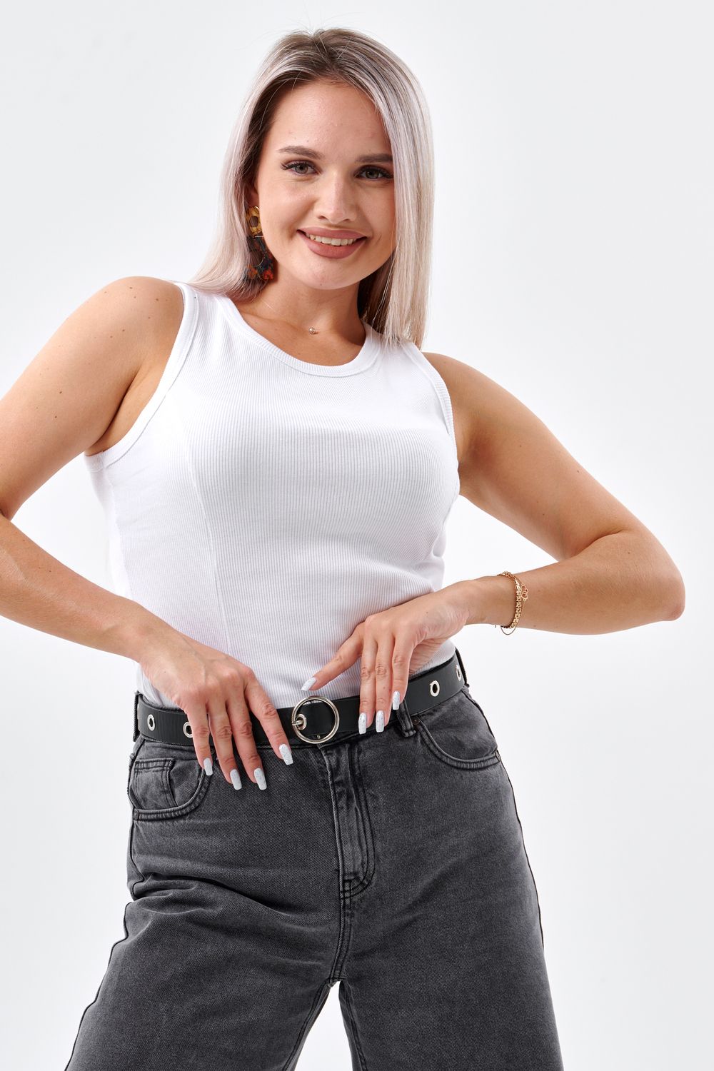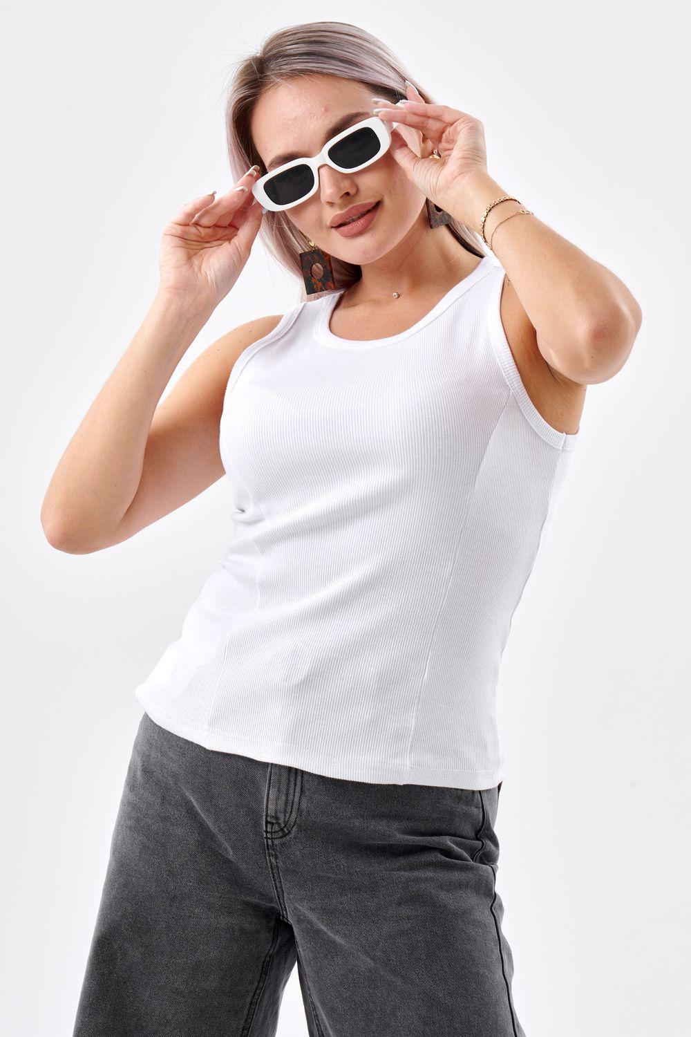 Майка женская из кашкорсе с отрезными бочками. Пройма и горловина майки обработаны окантовкой, низ подогнут на плоскошовной машине. Идеальный вариант для повседневной носки.