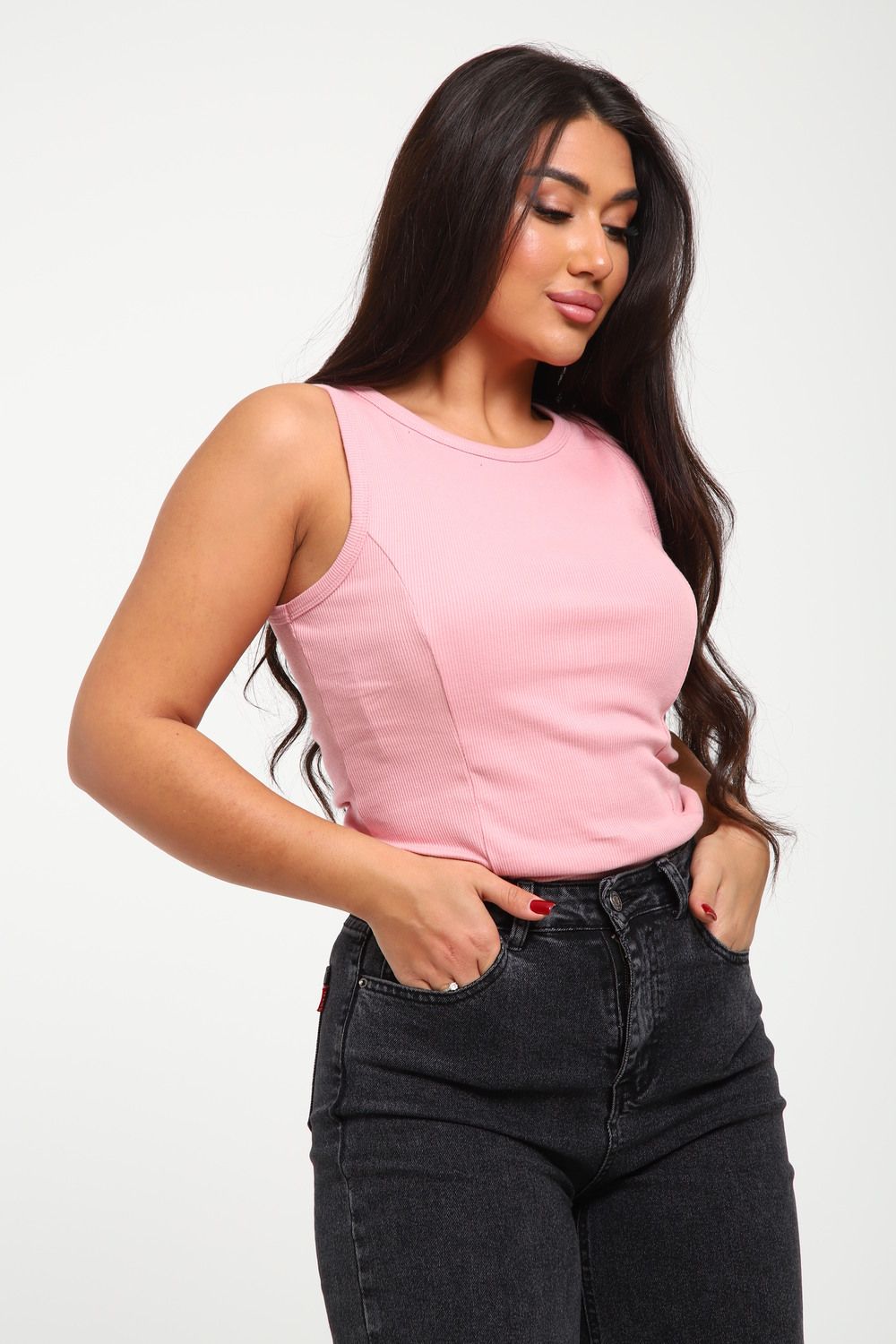 Майка женская из кашкорсе с отрезными бочками. Пройма и горловина майки обработаны окантовкой, низ подогнут на плоскошовной машине. Идеальный вариант для повседневной носки.