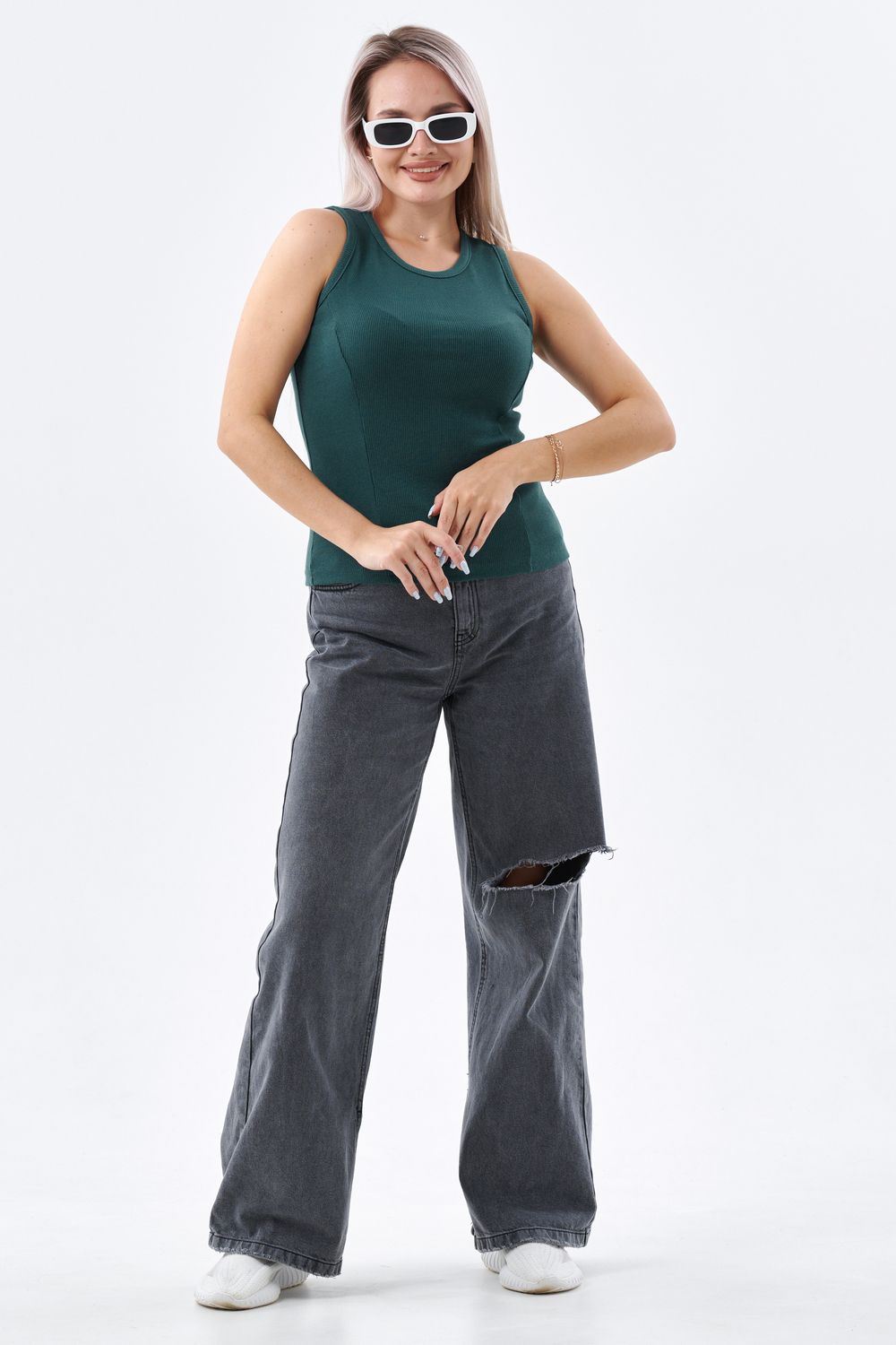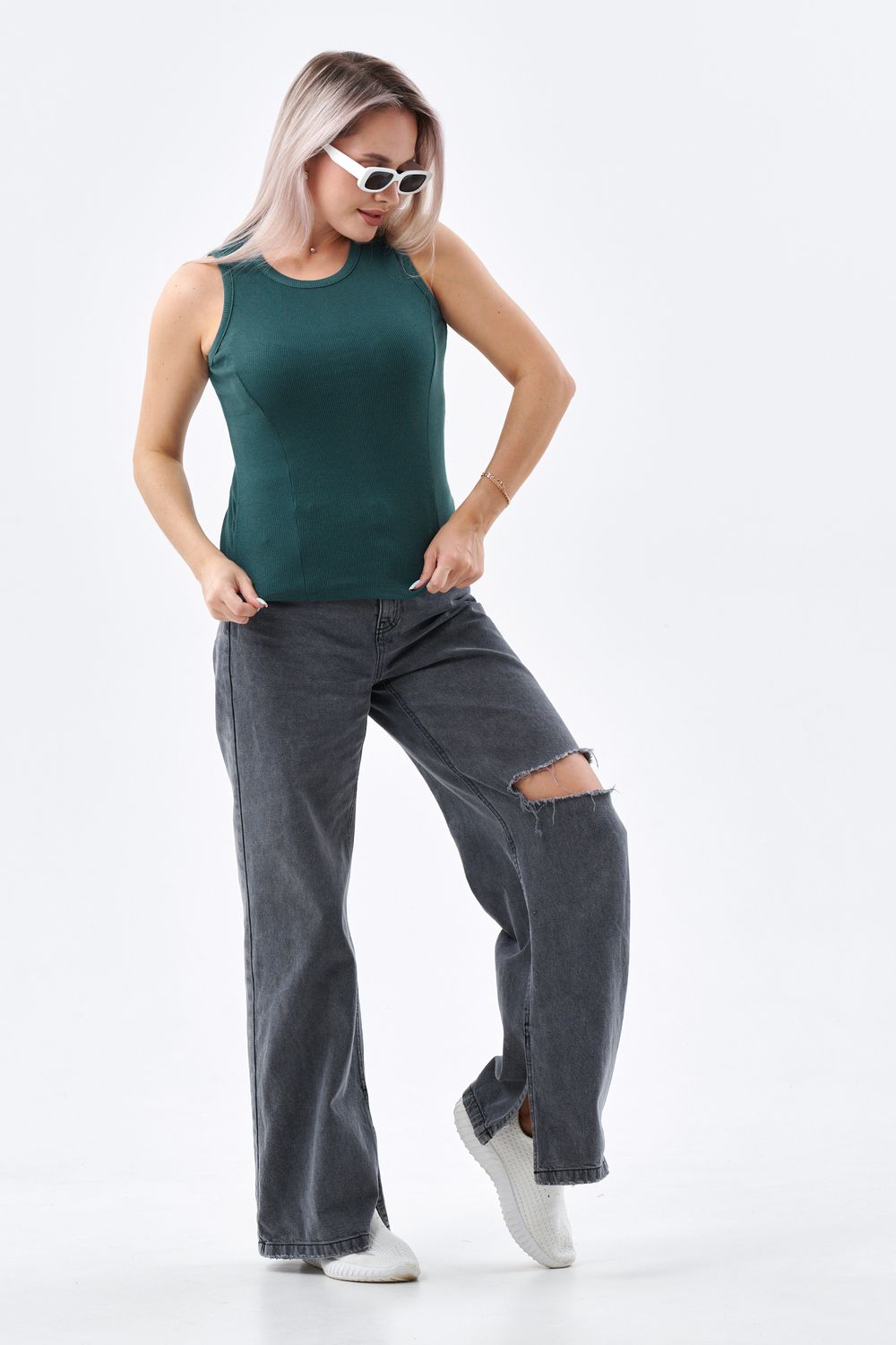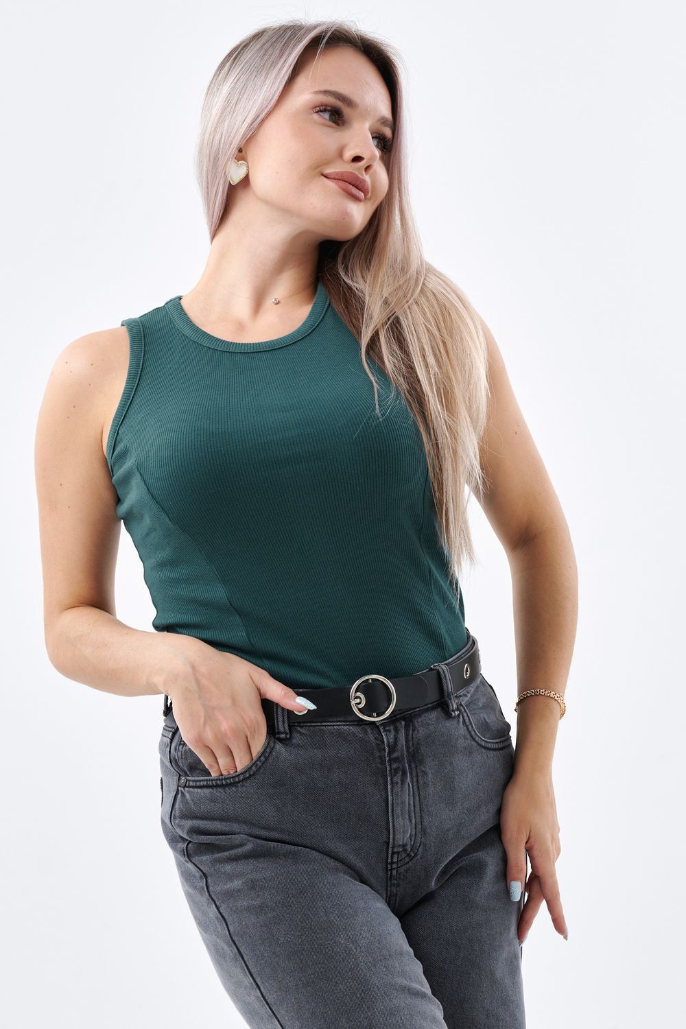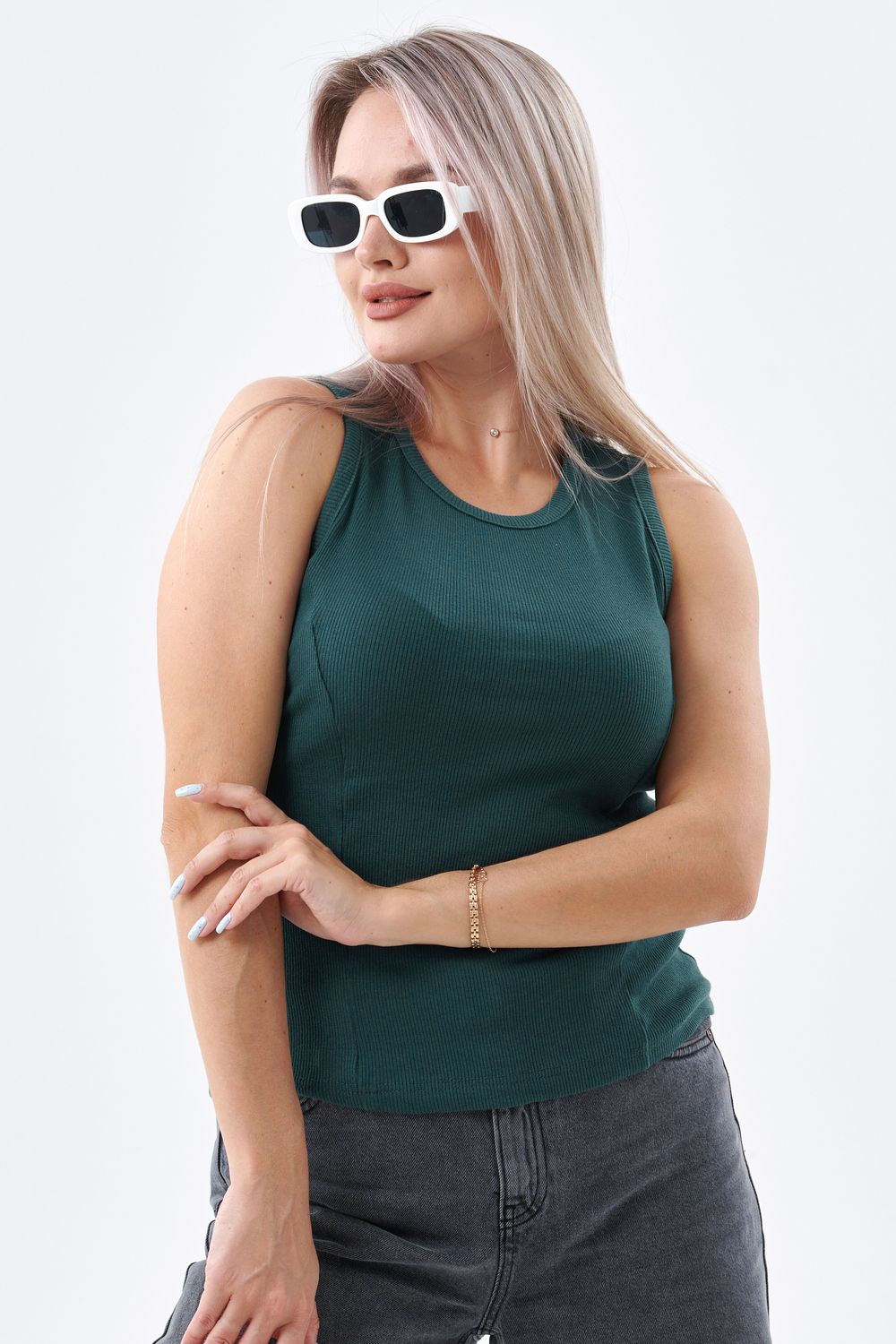 Майка женская из кашкорсе с отрезными бочками. Пройма и горловина майки обработаны окантовкой, низ подогнут на плоскошовной машине. Идеальный вариант для повседневной носки.