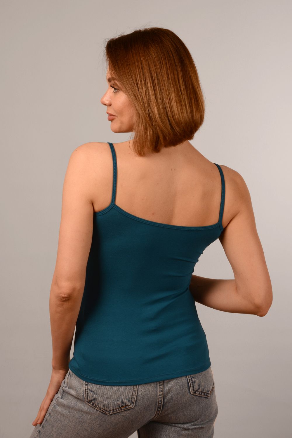 Базовый топ на тонких бретелях, прямого покроя с округлым вырезом горловины. Топ изготовлен из высококачественной вискозы с добавлением эластана, что обеспечивает облегающий покрой и удобство носки, обеспечивая идеальный силуэт.