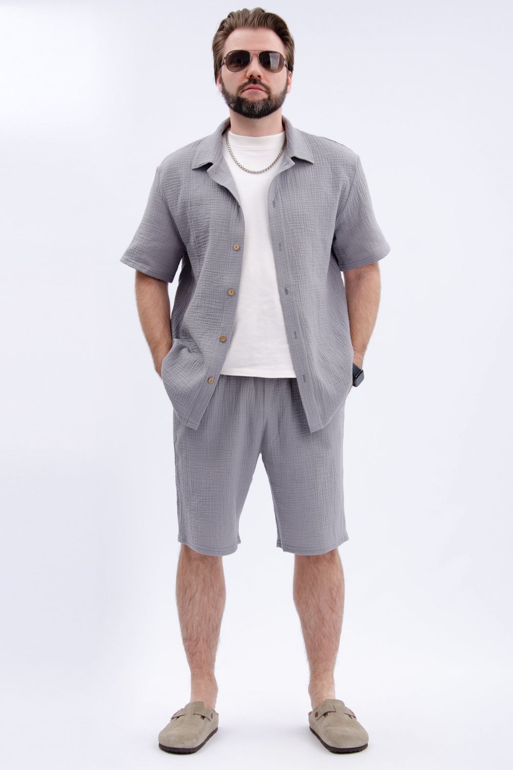Костюм мужской с шортами и рубашкой Мэтью - это идеальный выбор для тех, кто ценит качество и стиль. Этот комплект одежды изготовлен из высококачественного материала муслин-100% хлопок, который обеспечивает комфорт и долгую службу.