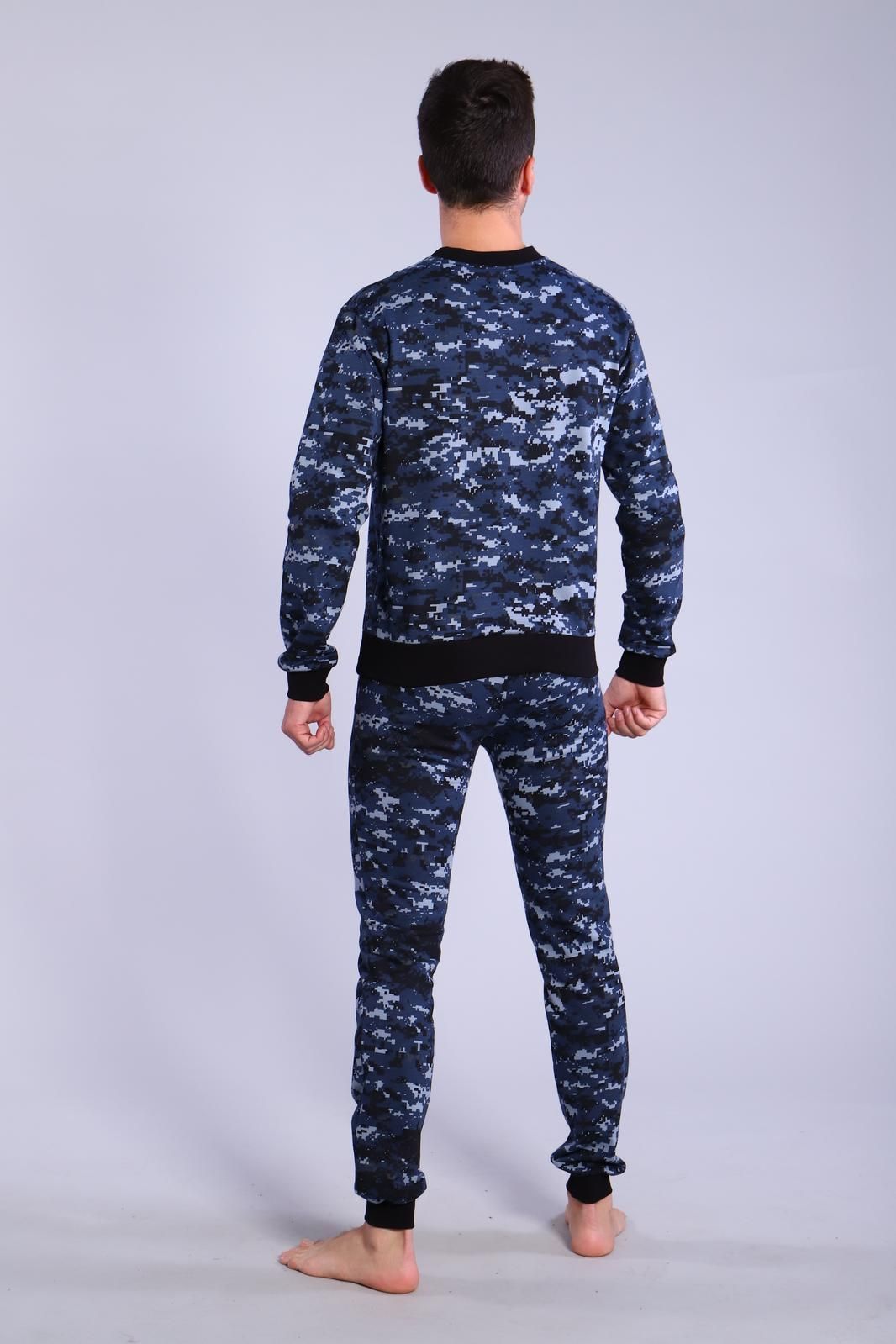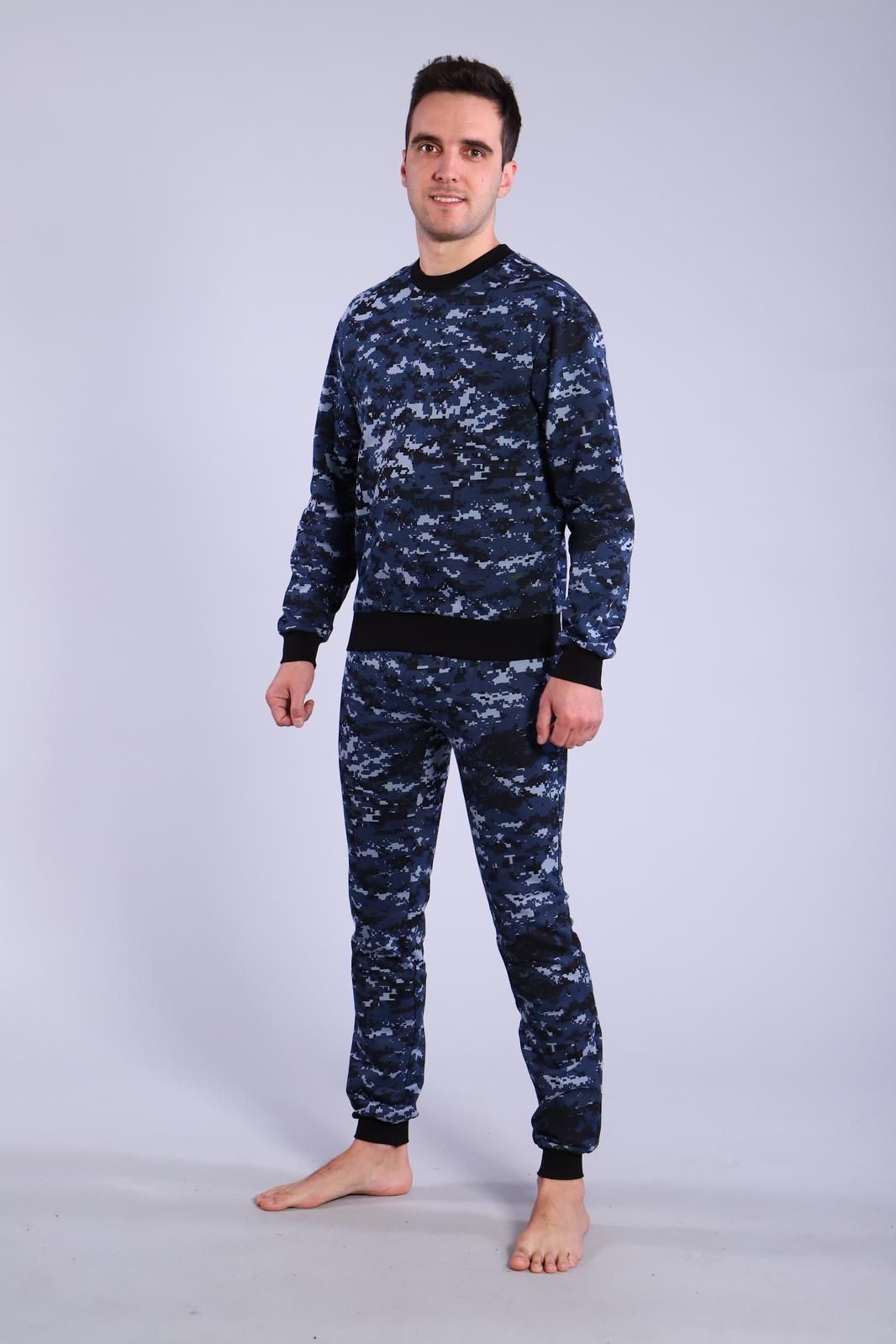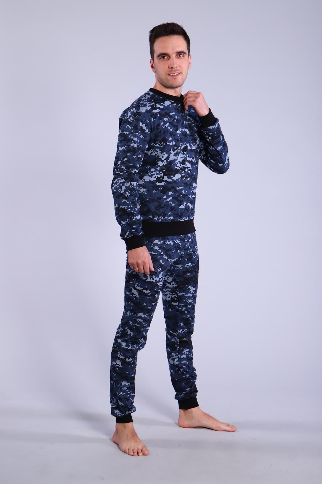 Пижама изготовлена из хлопкового трикотажа с начесом. Хлопковый трикотаж комфортен и гигиеничен, позволяет коже дышать. В комплект входит трикотажный лонгслив и кальсоны. Лонгслив имеет круглую горловину, манжеты на рукавах. Брюки на резинке, нижние края брюк имеют трикотажные манжеты. Пижама не сковывает движений, при этом дает дополнительный терморегулирующий слой одежды.