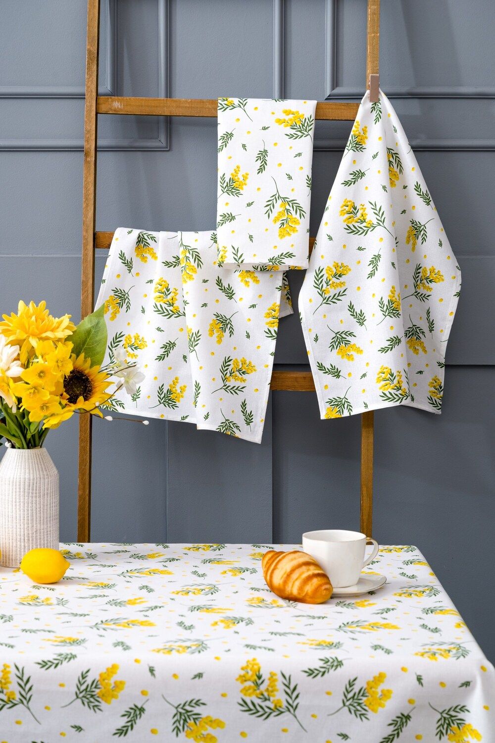 Набор полотенец для кухни "Мимоза" - это отличный выбор для тех, кто ценит качество и стиль. Изготовленный из 100% хлопка материала рогожка, эти полотенца не только функциональны, но и красиво оформлены. Белый цвет полотенец и желтые мимозы на них создают яркий и свежий образ, который поднимет ваше настроение.