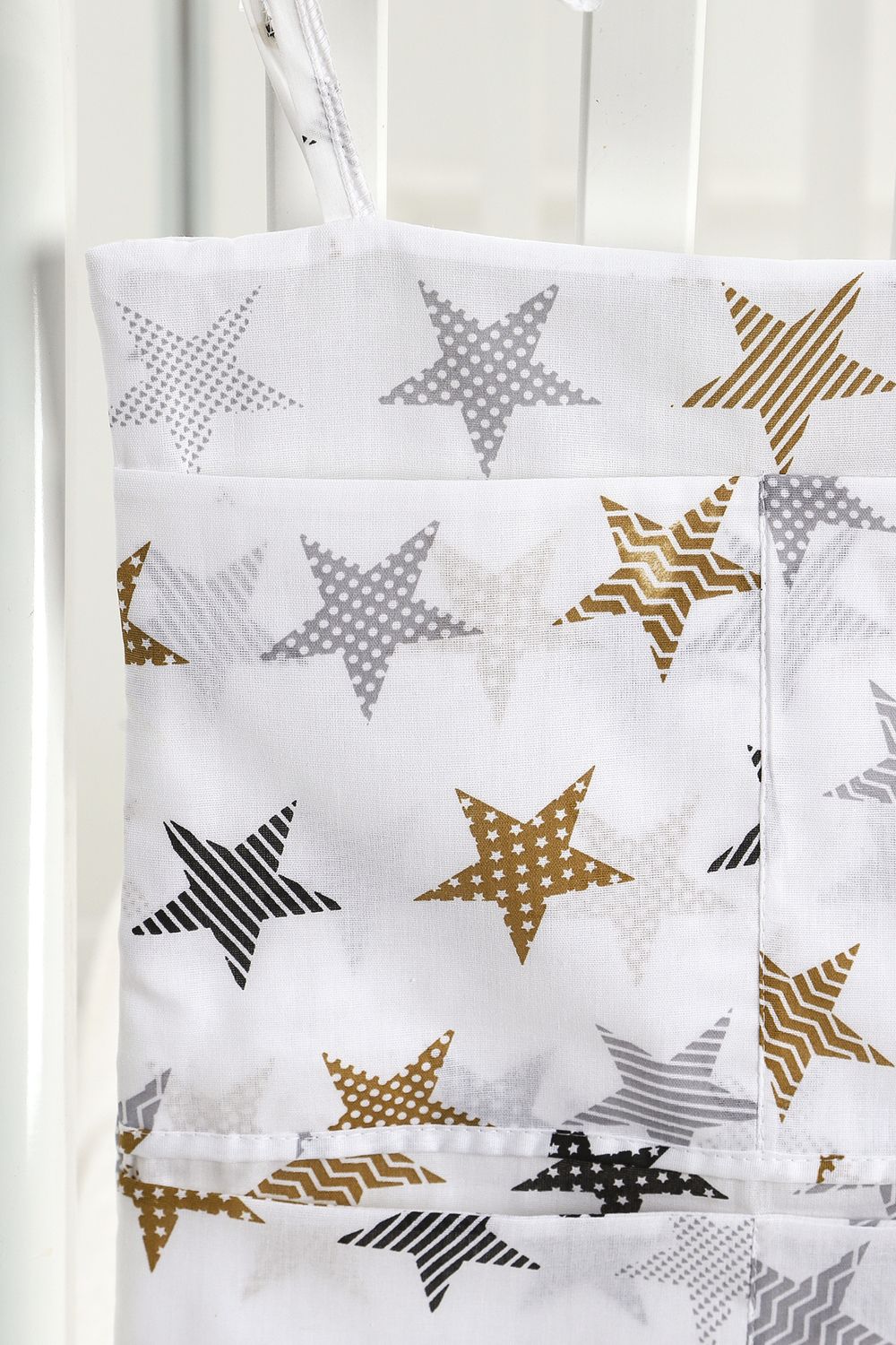 Удобный органайзер на детскую кроватку. Все самое необходимое под рукой! Бутылочки, салфетки, памперсы, погремушки, различные предметы гигиены. Органайзер выполнен из бязи плотностью 125г/м2, 100% хлопок. Внутри подложка из синтепона, благодаря этому кармашки держат форму и не провисают. Рекомендуется ручная стирка при температуре не выше 40 градусов. Можете не сомневаться, любой мамочке приятно будет получить этот аксессуар в качестве символического подарка.