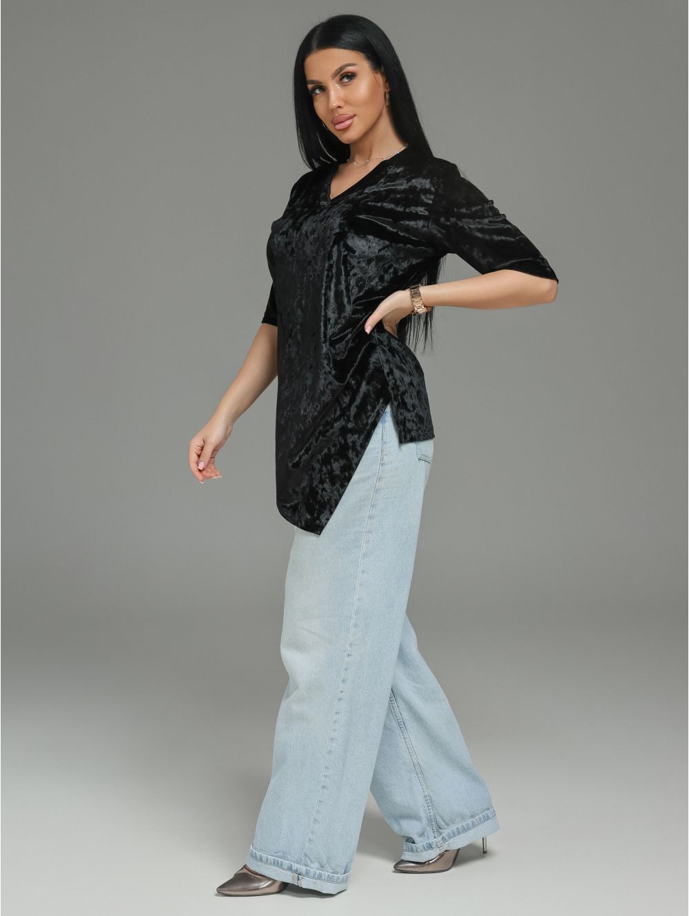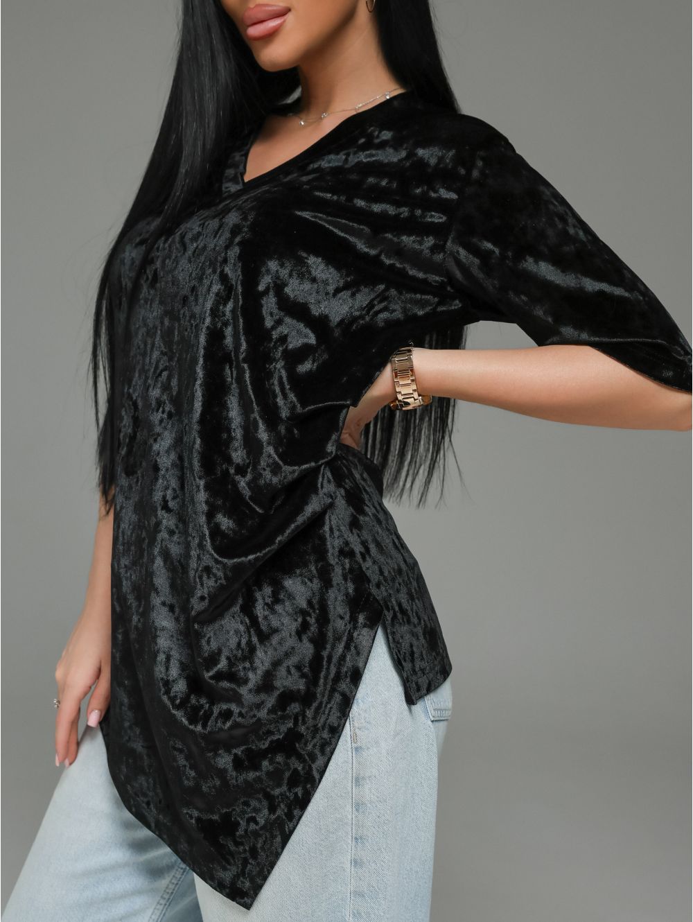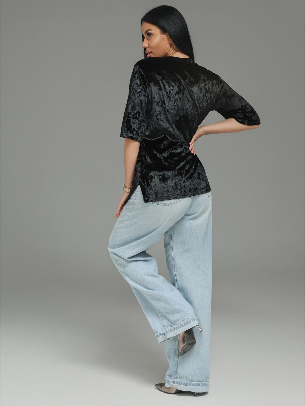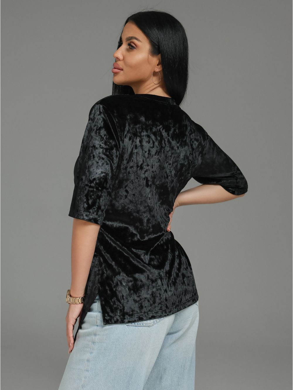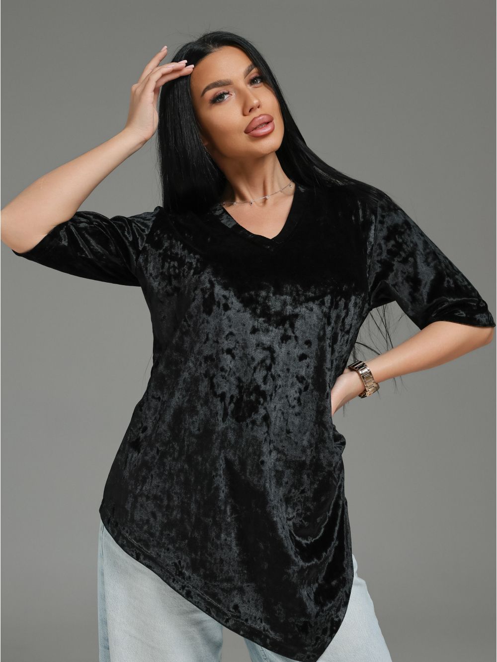 Вышли за рамки обыденного. Мия- то не просто футболка. Это архитектурный объект для вашего тела, где роскошь бархата встречается со смелым дизайном.