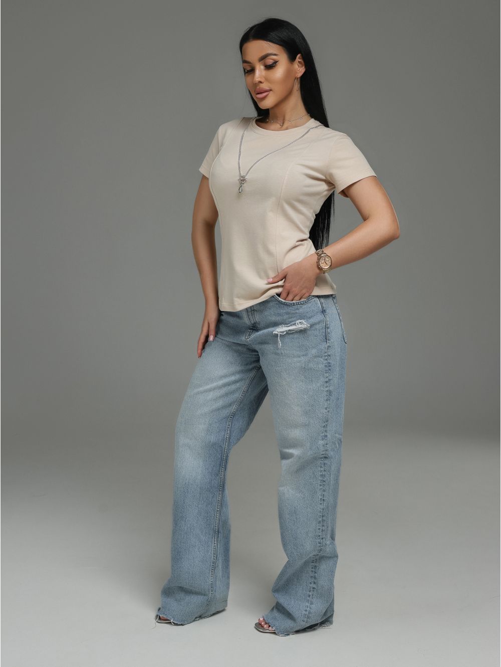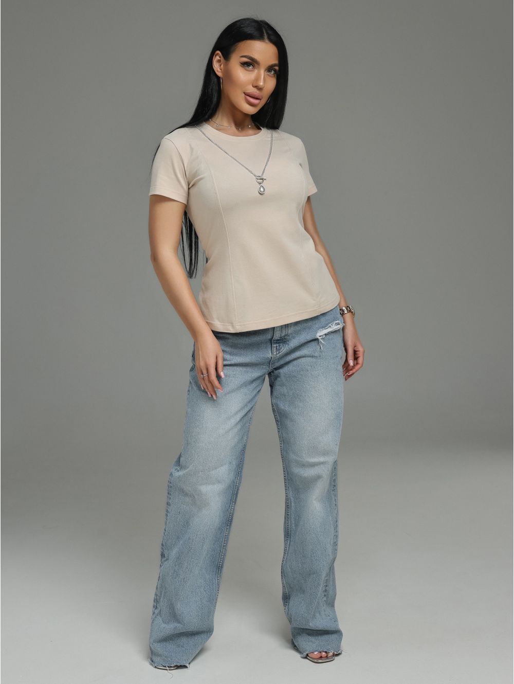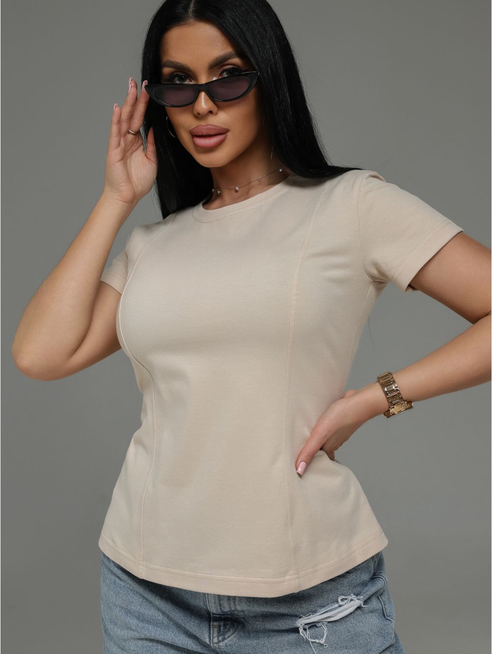 Мода футболка женская (бежевый)