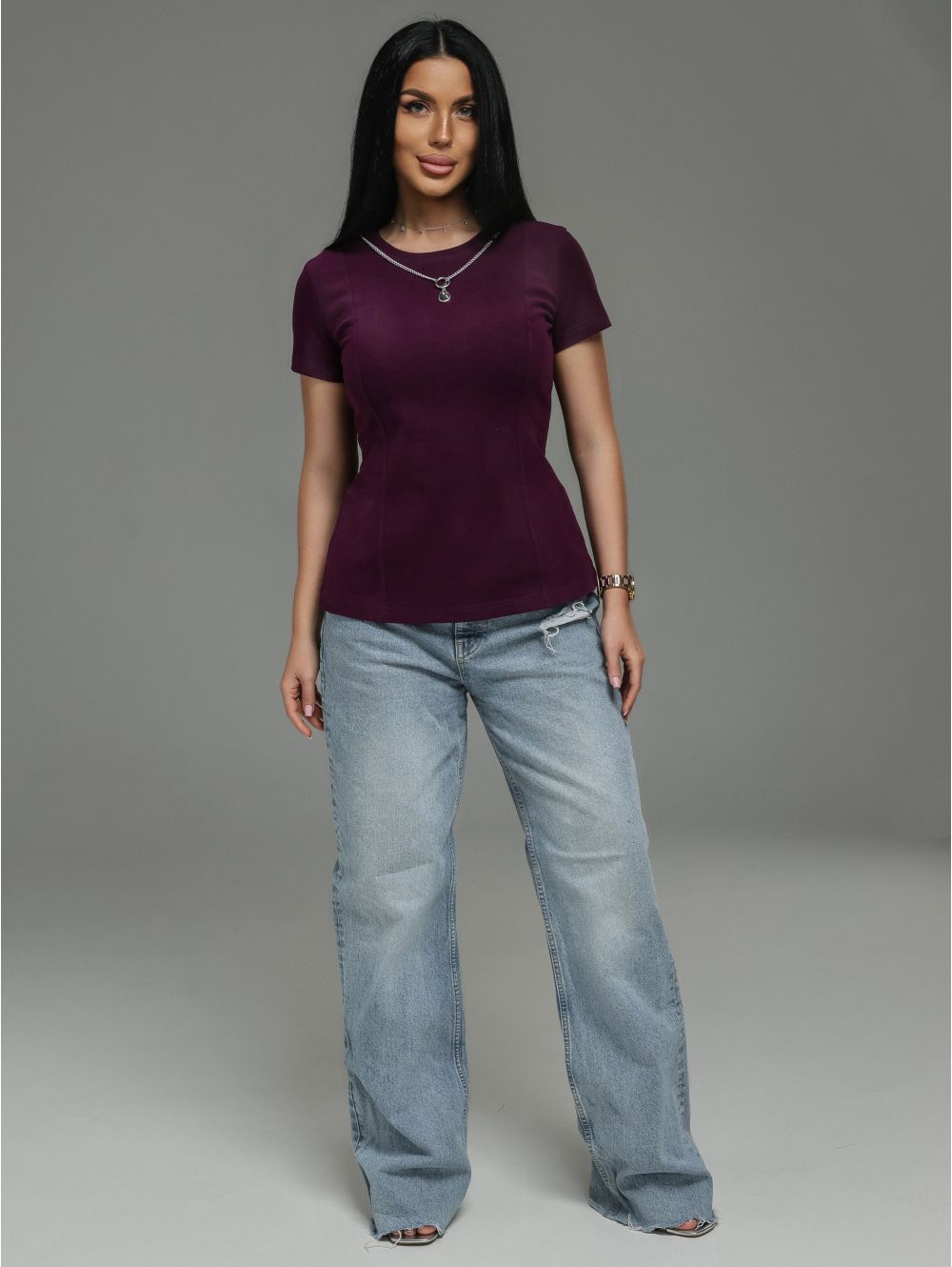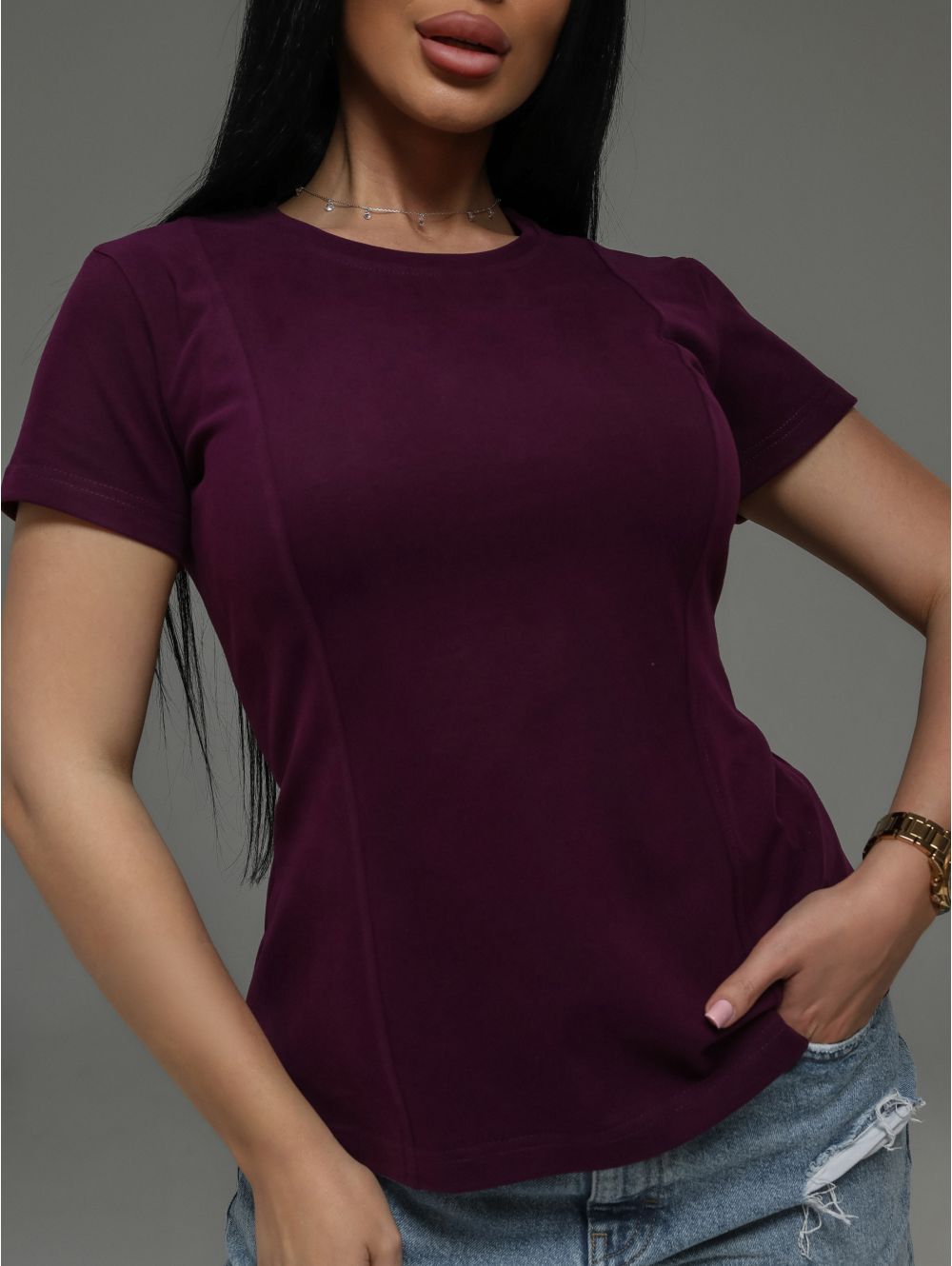 Мода футболка женская (сливовый)
