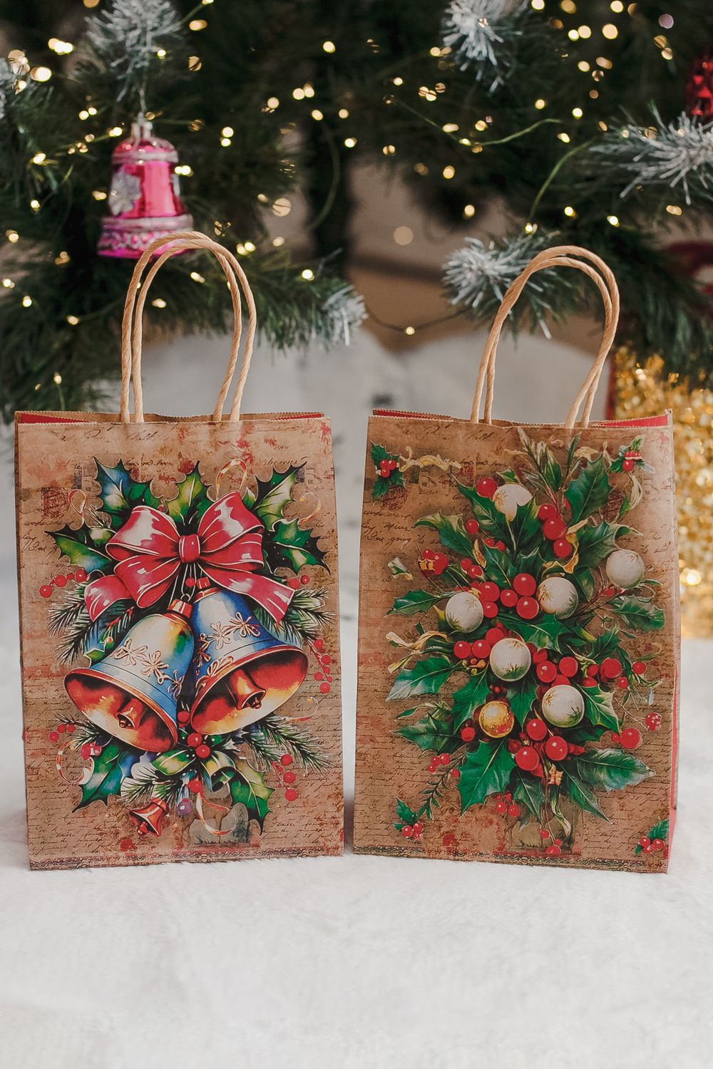 Набор из 2шт новогодних крафт-пакетов размером 21×15×8 см — стильная и практичная упаковка для праздничных подарков. Пакеты выполнены из плотной крафт-бумаги и аккуратными бумажными ручками, украшены атмосферным новогодним принтом (елочки, снежинки, гирлянды), что делает их готовыми к использованию для новогоднего подарка. Каждый пакет выдерживает небольшие наборы и сувениры (например, косметику, сладости, свечи, аксессуары), прекрасно смотрится с бумажной стружкой или крафт-этикеткой и отлично подходит для корпоративных подарков, подарочных наборов, праздников и ярмарок. Экологичный материал биоразлагаем и пригоден для вторичной переработки, хранить пакеты лучше в сухом помещении, избегая длительной влажности.