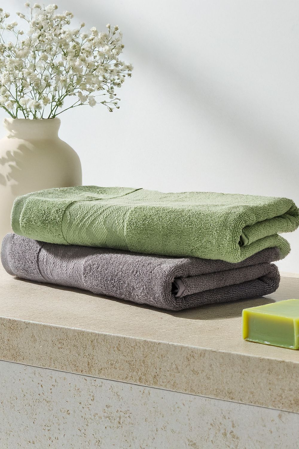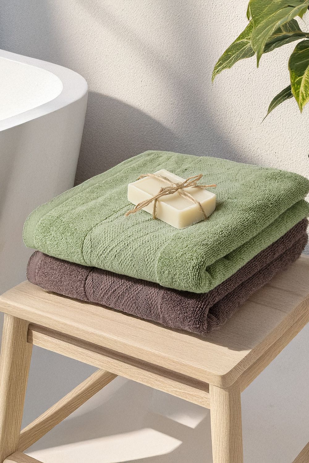 Набор махровых полотенец Веларио 2 шт. - оливковый