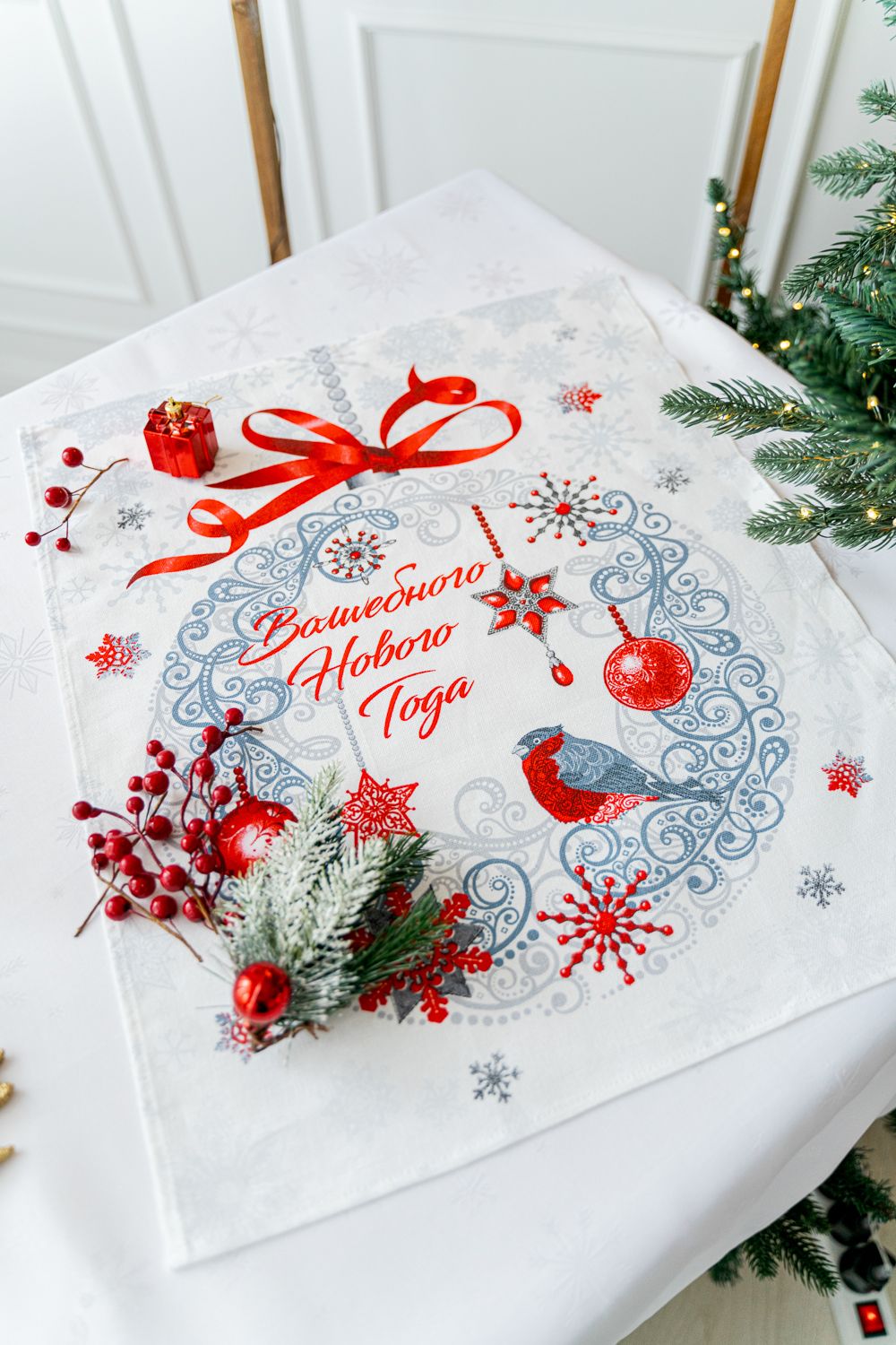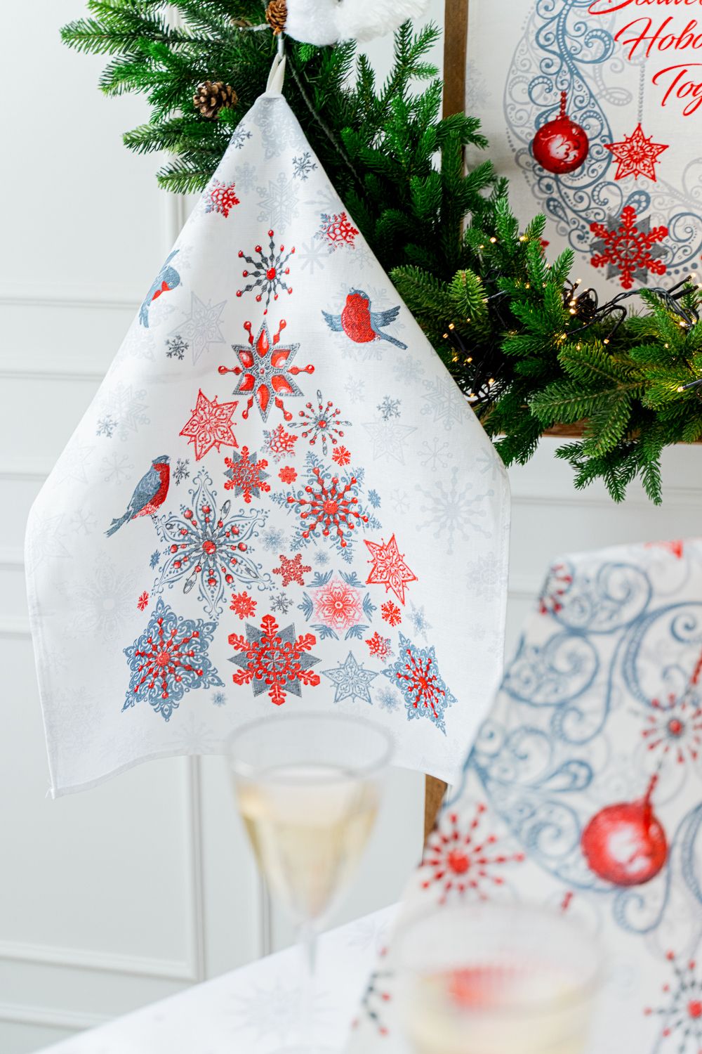 Чудесным подарком на Новый год и Рождество станут полотенца из рогожки «Серпантин». Полотенца в этом наборе выполнены в нейтральных и спокойных оттенках, которые отлично подойдут на любую кухню, а так же украсят новогодний стол любой цветовой гаммы! Прекрасные полотенца с елочками, снежинками, птичками и лентами обязательно создадут атмосферу праздника. Порадуйте себя и своих близких новогодними полотенцами!