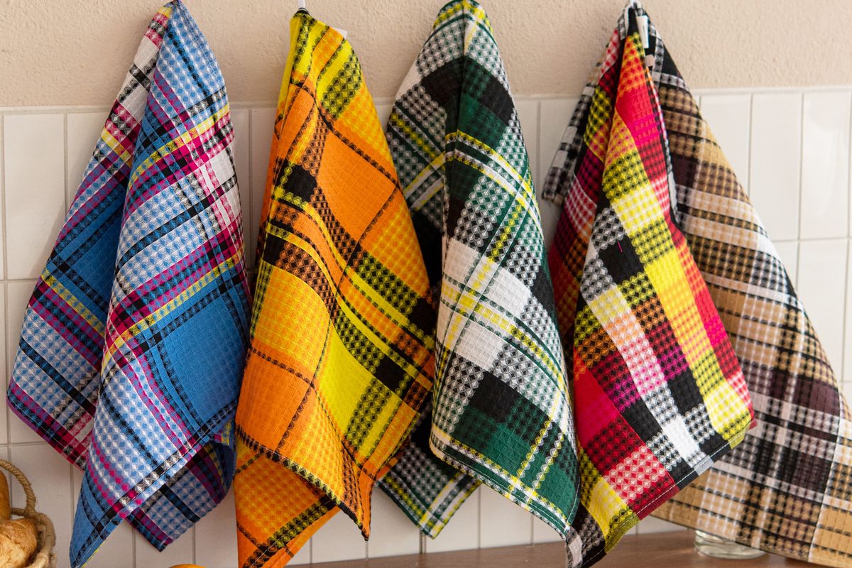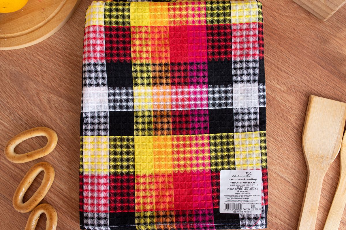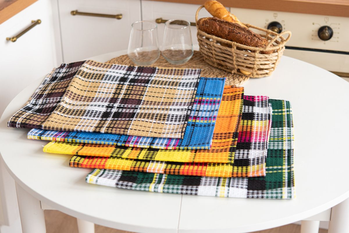 Набор полотенец вафельн."Шотландка" 40*75 см (5шт)