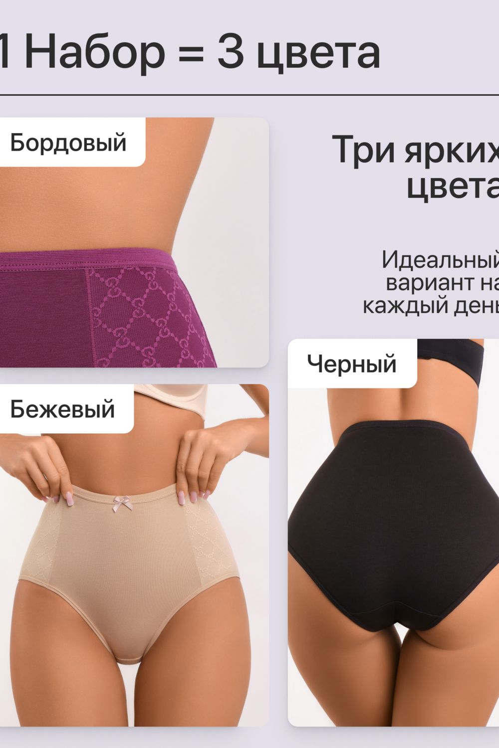 Набор трусов OIRO 3902 3 шт. хлопковые высокие - Борд,черн,беж