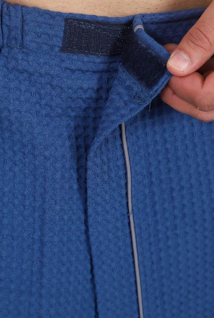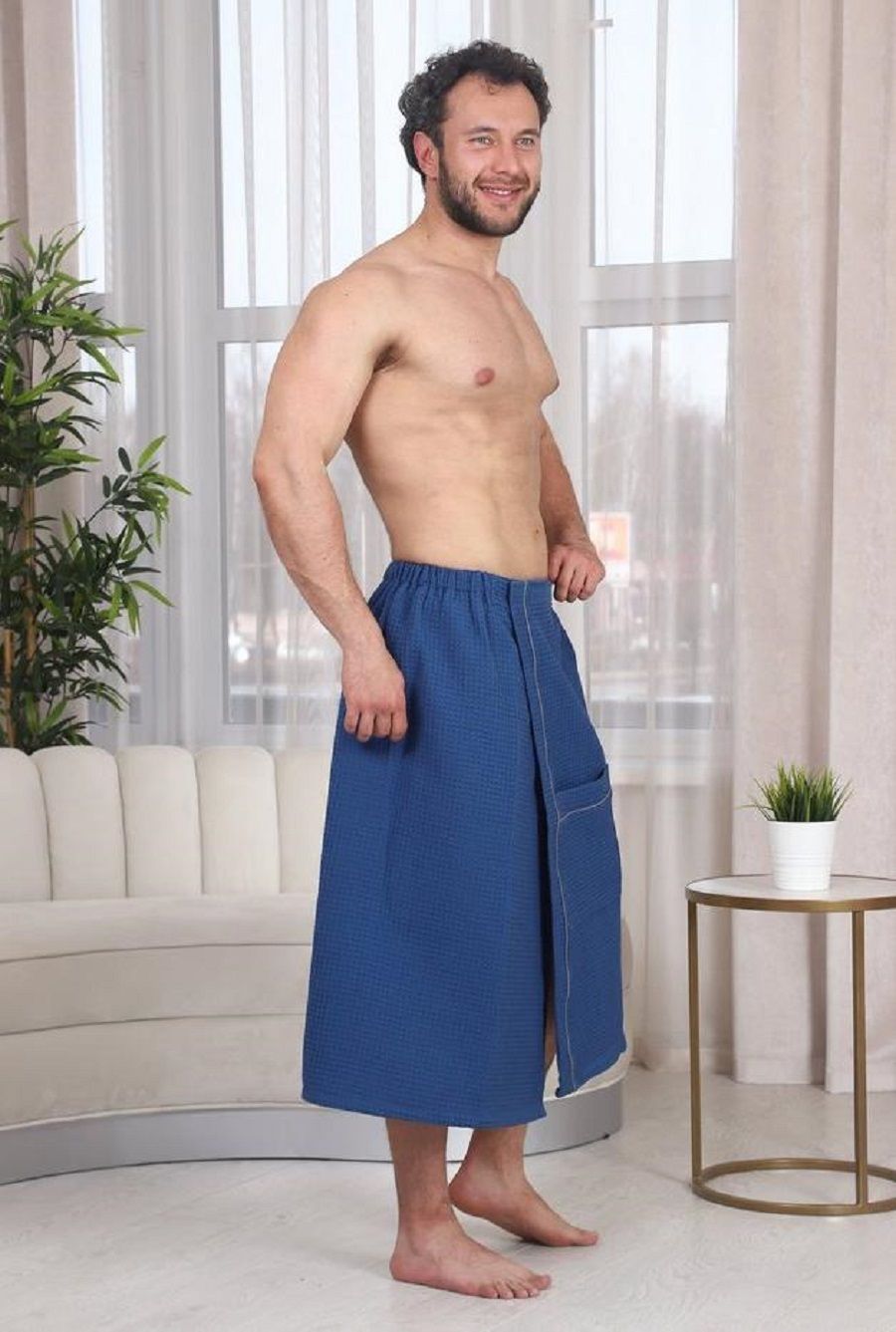 Килт банный мужской - полотенце-накидка на липучке для сауны и бани. Материал: вафельное полотно, 100% хлопок. Плотность: 220 г/м2. Набедренная накидка (килт для бани) отлично держится за счет резинки и фиксации на широкую липучку. Килт для мужчин удобно подходит для любой комплекции с 44 по 52 размер, а также с 54 по 60 размер. Накидка для сауны имеет глубокий накладной карман для хранения банных мелочей. Изделие приятно к телу, прекрасно впитывает влагу, быстро сохнет, хорошо переносит частые стирки, отличается долговечностью и прочностью. Это многофункциональный аксессуар, который обеспечит комфорт и удобство, а также гигиеническую защиту во время и после банных процедур. Килт можно постелить на лежак в сауне или использовать в качестве полотенца после душа, он удобен в массажном салоне или на пляже. Это замечательный подарок для мужчины - любителя парной, хаммама, сауны, бани, различных spa - комплексов!