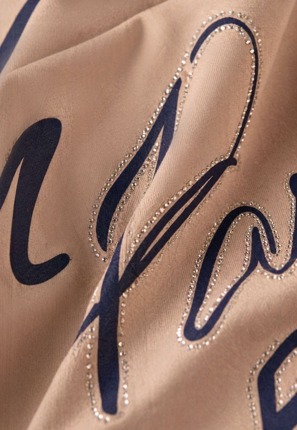 Уход: Рекомендуется бережная стирка при 30°C, вывернув наизнанку, чтобы сохранить блеск страз. Не гладить утюгом по принту.