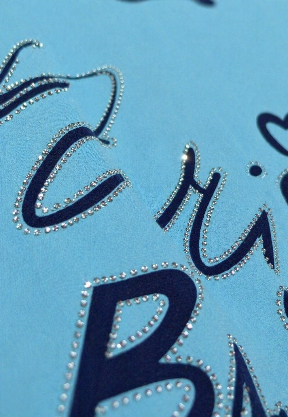 Уход: Рекомендуется бережная стирка при 30°C, вывернув наизнанку, чтобы сохранить блеск страз. Не гладить утюгом по принту.