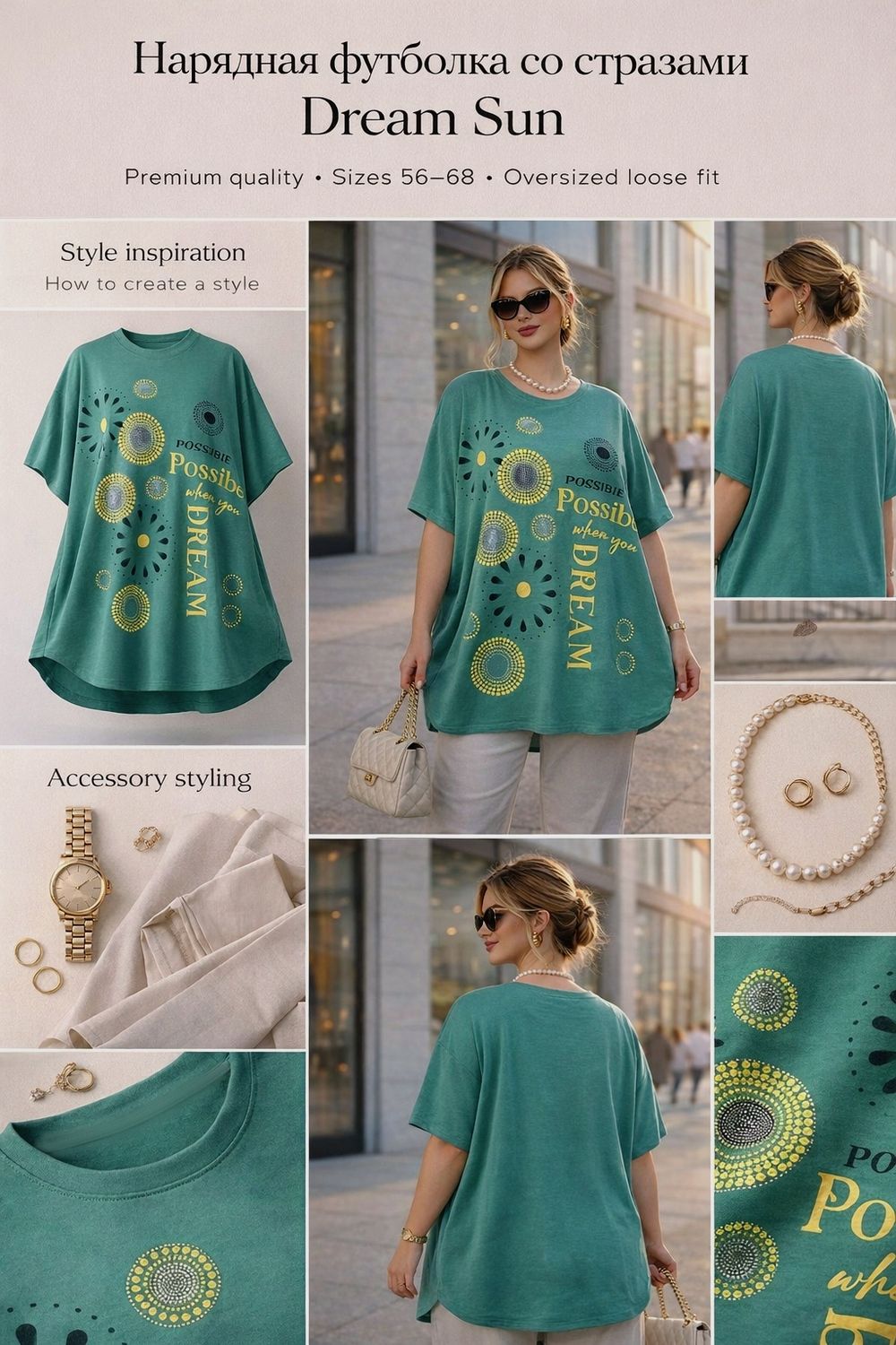 Нарядная футболка-туника «Dream Sun», арт. F9702 — сияющий образ для тех, кто верит в мечты.