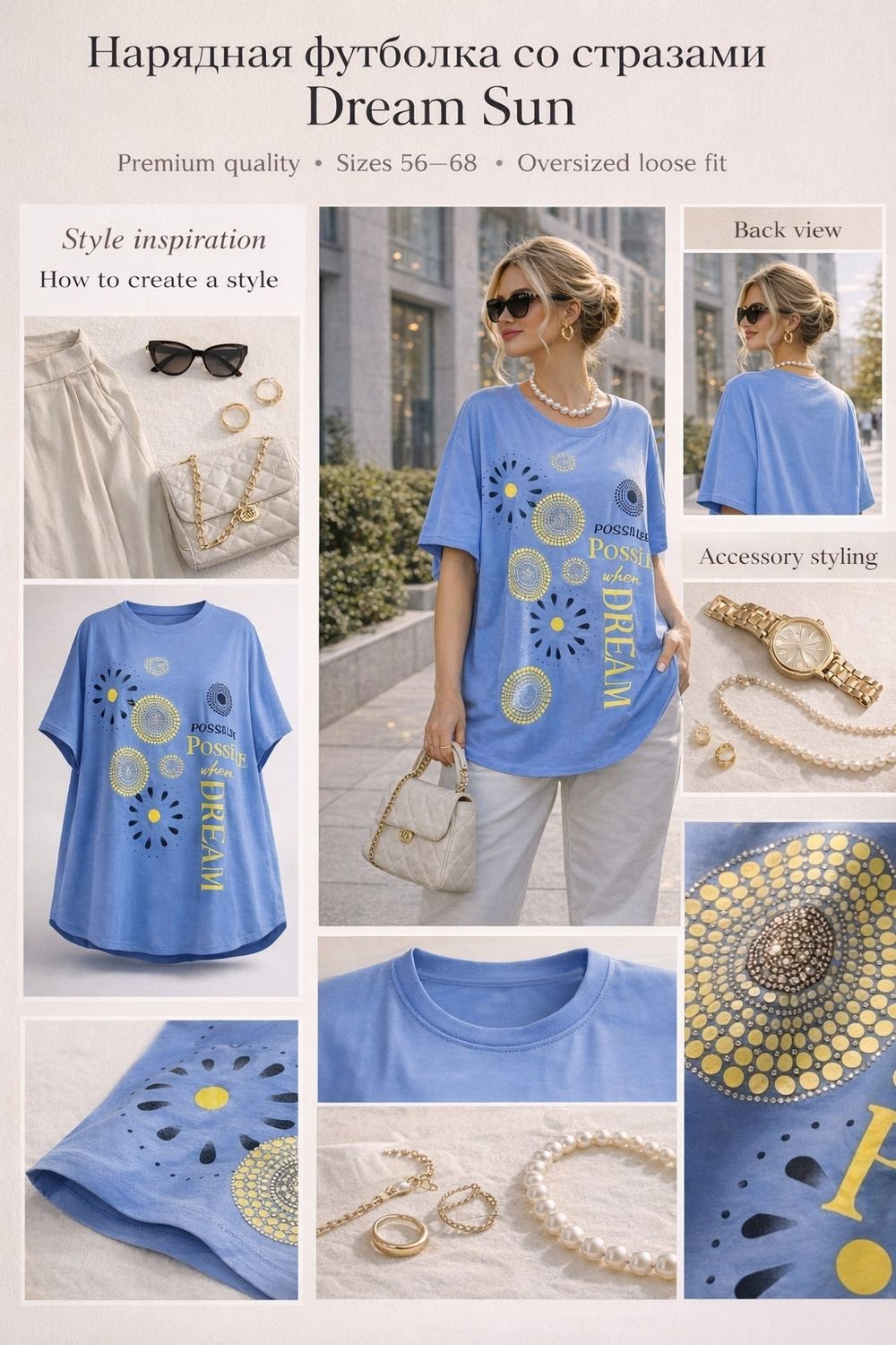 Нарядная футболка-туника «Dream Sun», арт. F9702 — сияющий образ для тех, кто верит в мечты.