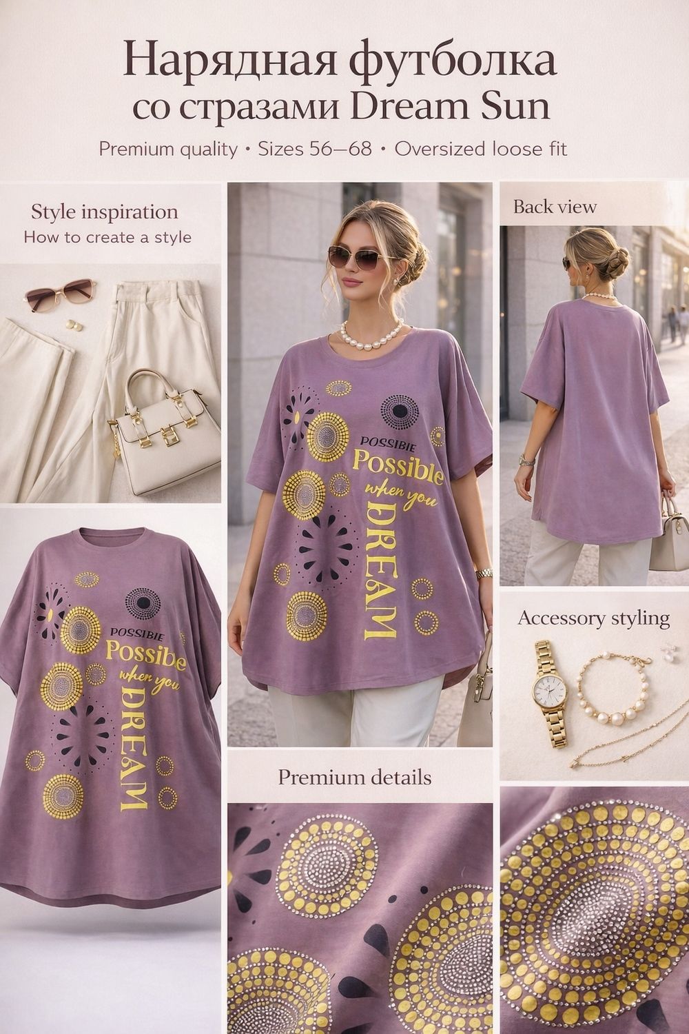 Нарядная футболка-туника «Dream Sun», арт. F9702 — сияющий образ для тех, кто верит в мечты.