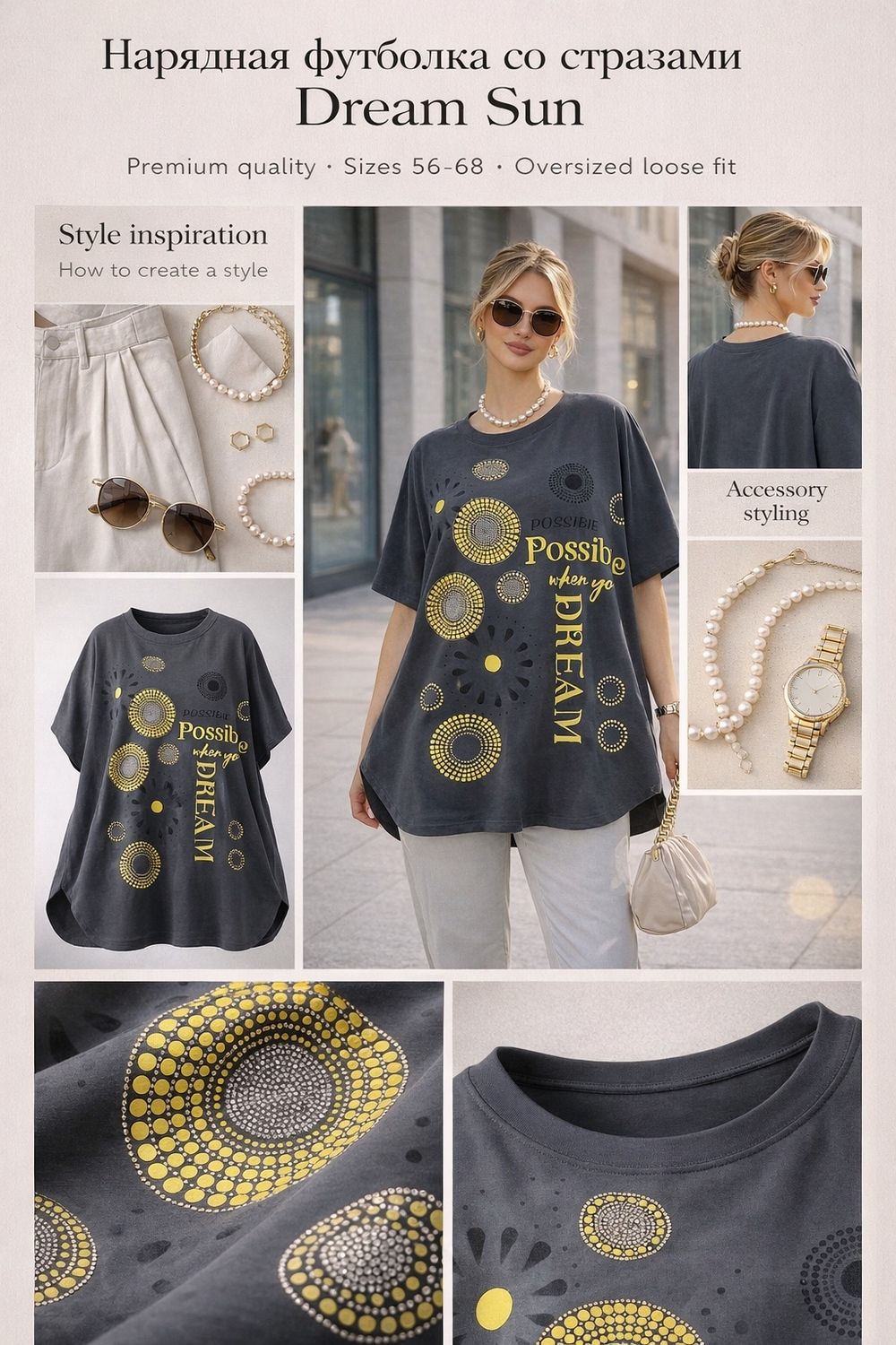 Нарядная футболка-туника «Dream Sun», арт. F9702 — сияющий образ для тех, кто верит в мечты.