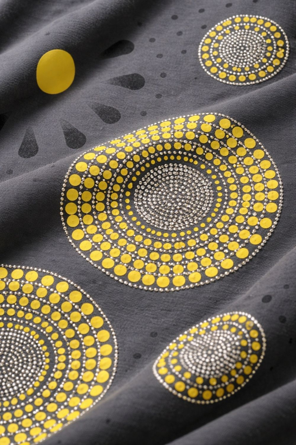 Сияющее впечатление — эффект «солнечного блеска»: по передней части расположены композиции из страз в виде абстрактных цветов и кругов. Стразы переливаются в свете — особенно красиво на солнце, создавая ощущение легкости, радости и внутреннего сияния. Это не просто декор — это энергия, которую вы несёте с собой.