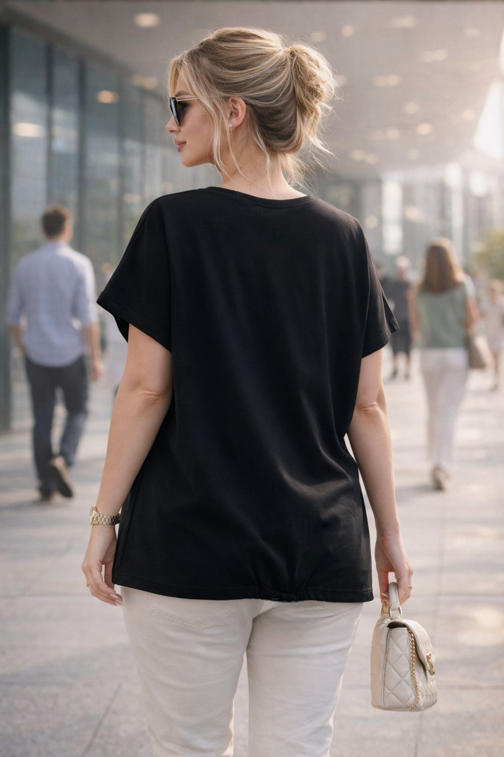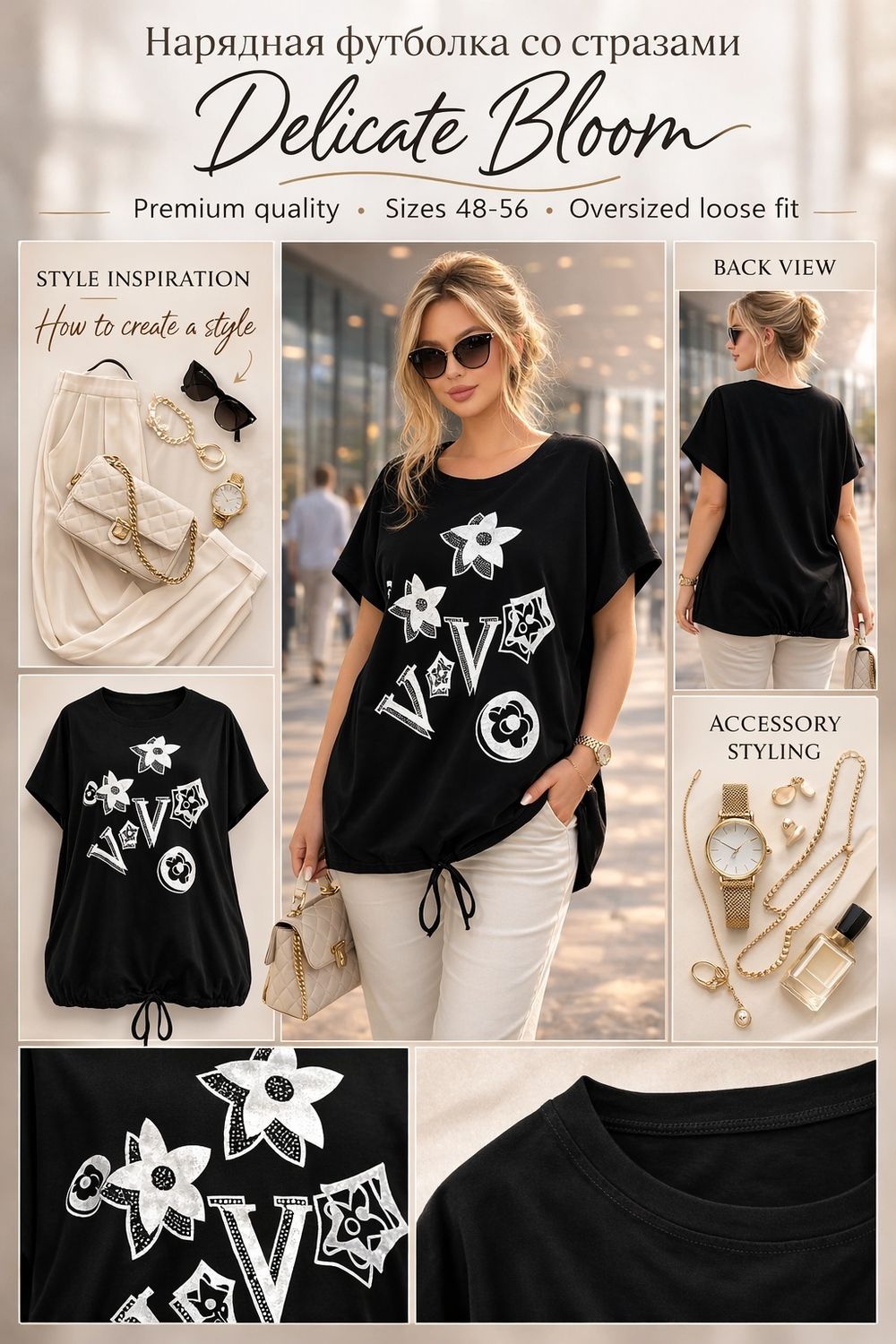 Дополните образ сумкой-клатч, стильной цепочкой или жемчужными аксессуарами — и вы готовы покорять улицы! Эта туника-футболка станет вашим любимым элементом гардероба, который вы будете носить снова и снова.