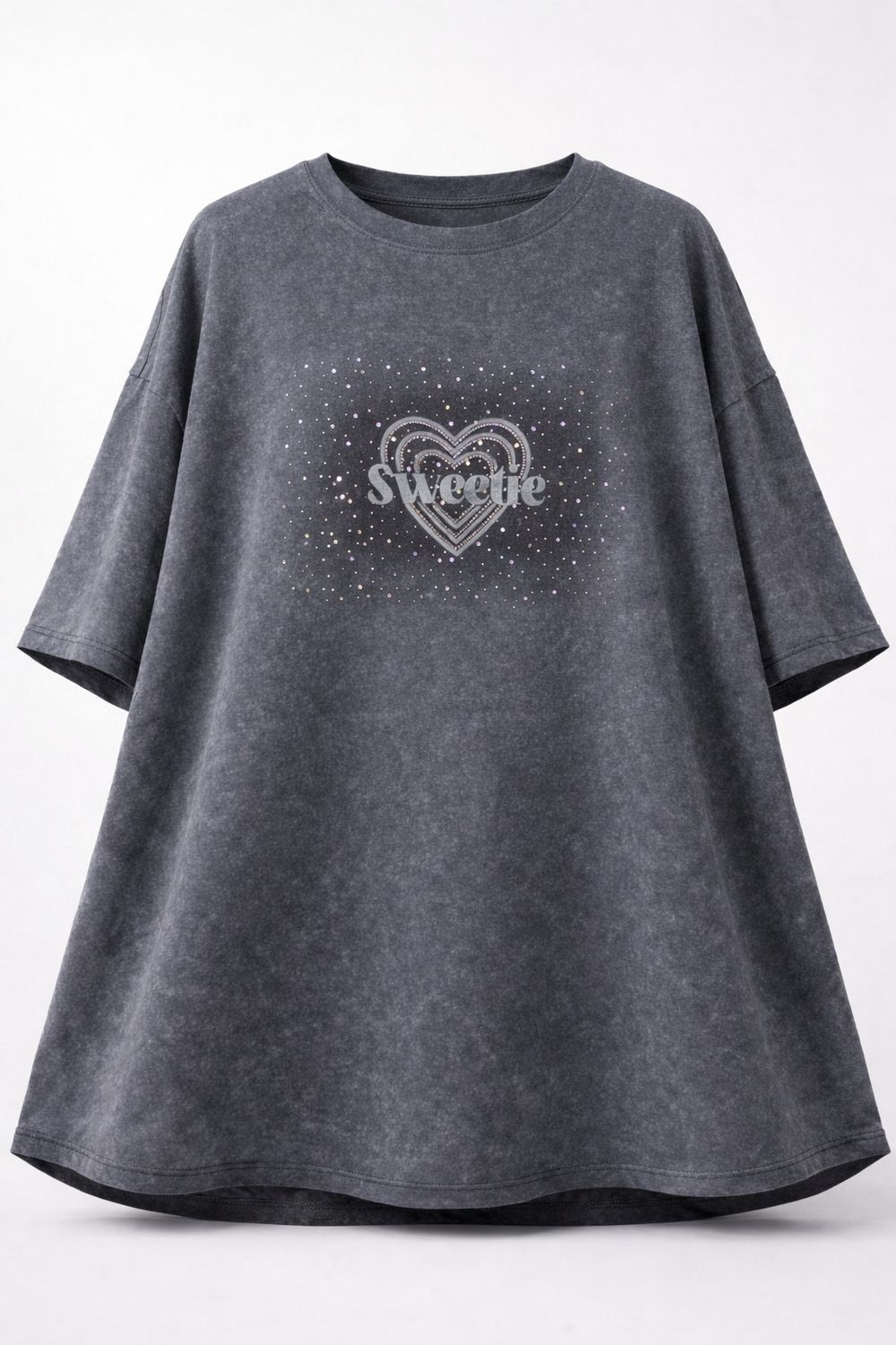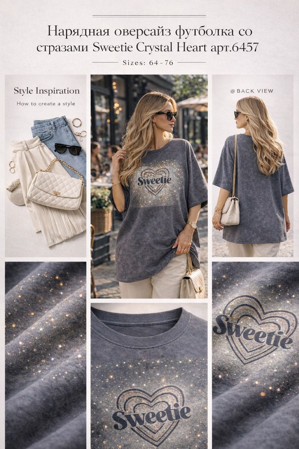 Нарядная оверсайз футболка со стразами Sweetie Crystal Heart арт.6457 — Главный Must-Have Сезона (Размеры 64–76). Эта футболка — не просто базовая вещь, это настоящий манифест современной моды для пышных форм. Если вы хотите выглядеть стильно, дорого и следовать последним веяниям фешн-индустрии, модель Crystal Flow Luxe создана специально для вас.
