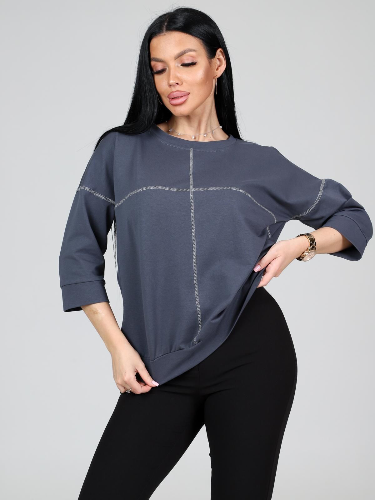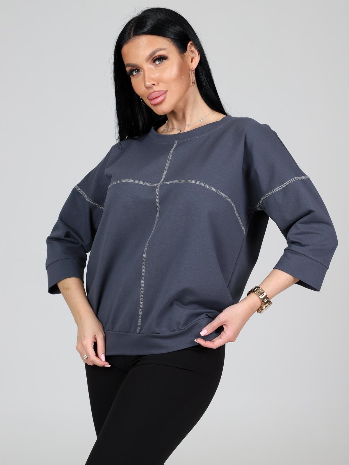 Удобный и стильный женский свитшот, сшит из мягкого трикотажного полотна высокого качества - футер двунитка. Свитшот не стесняет движений, отлично сочетается с брюками и джинсами. Максимально удобен при носке и выгодно сидит на фигуре.