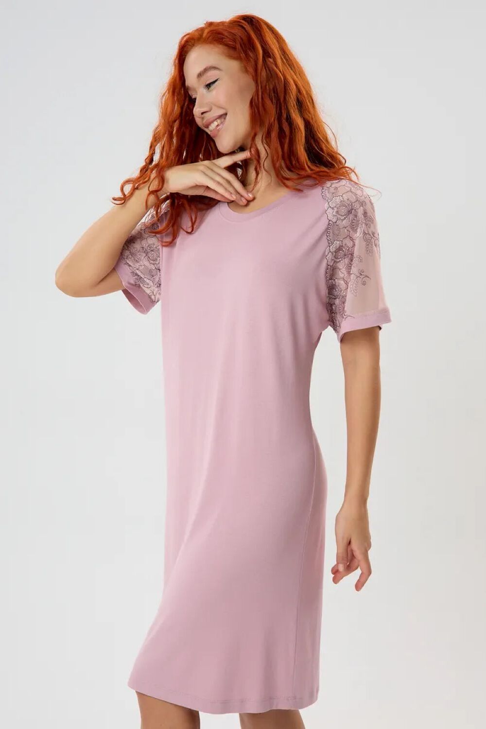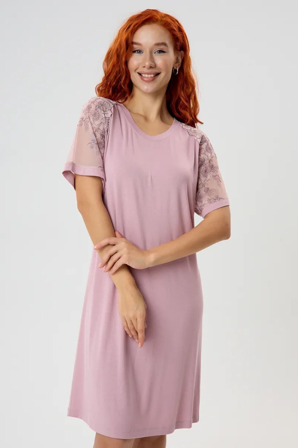 Ночная сорочка из вискозы станет незаменимой частью вашего гардероба для комфортного и стильного отдыха. Длина изделия чуть ниже колена обеспечивает оптимальное удобство и свободу движений, а округлый вырез горловины придает образу мягкость и женственность. Особое внимание привлекают рукава реглан, выполненные из эффектного кружева на сетке, добавляющие сорочке нотку романтичности и изящества. Свободный крой позволяет носить сорочку как будущим мамам, так и всем, кто ценит комфорт в сочетании с элегантностью. Большой размерный ряд позволит каждой женщине найти идеальный вариант, а трикотажная текстура ткани гарантирует идеальную посадку, благодаря своей способности хорошо тянуться и адаптироваться к особенностям фигуры.