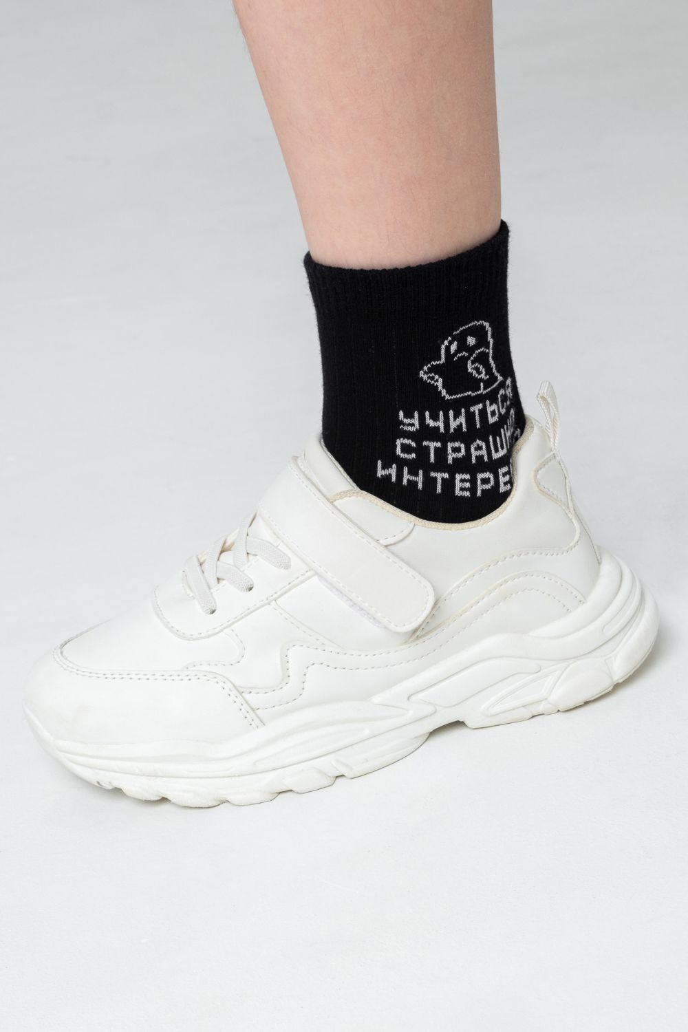 Подростковые носочки с реалистичными надписями, связанные из натурального хлопка. Креативная модель мягко облегает ногу, не доставляя дискомфорт в течение всего дня. Носки сочетаются с разной обувью, подходят как мальчикам, так и девочкам.