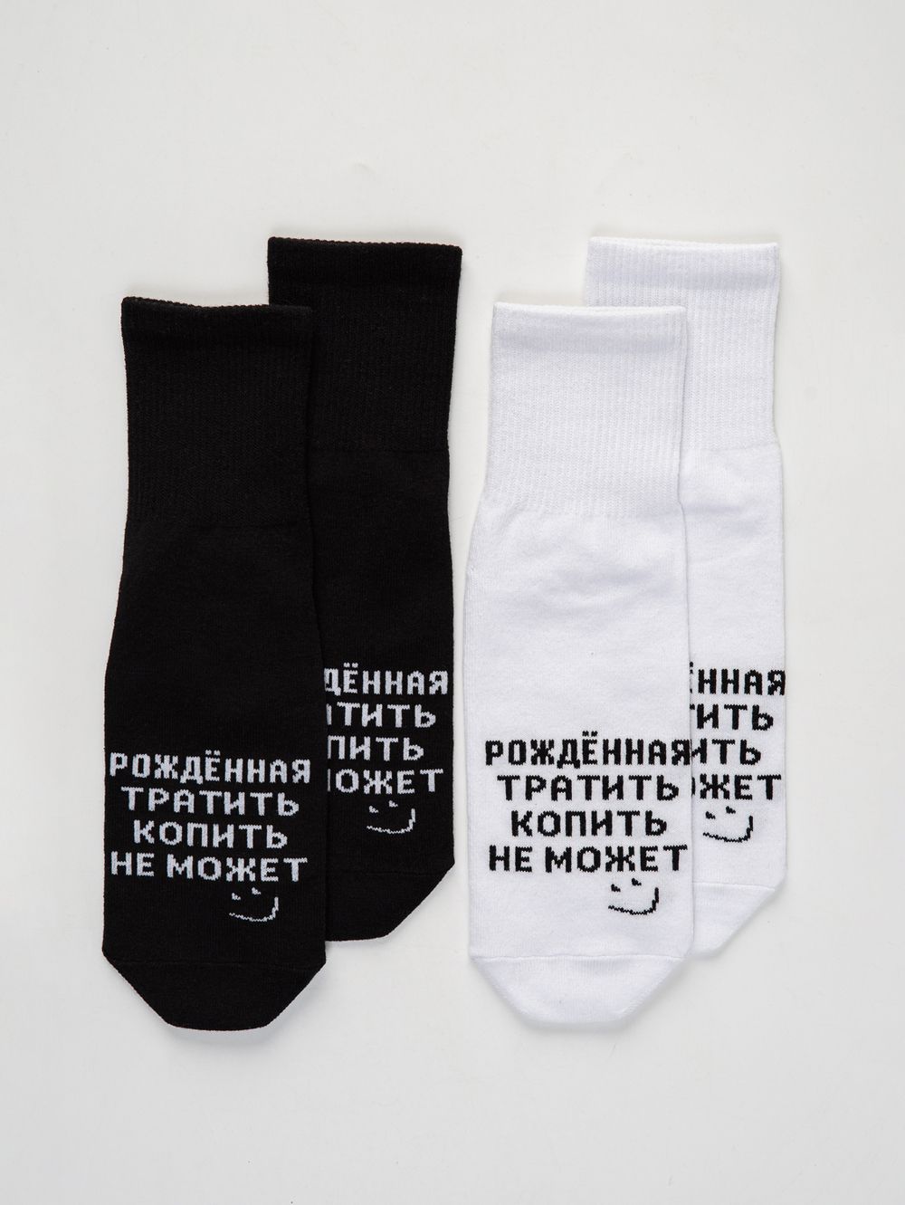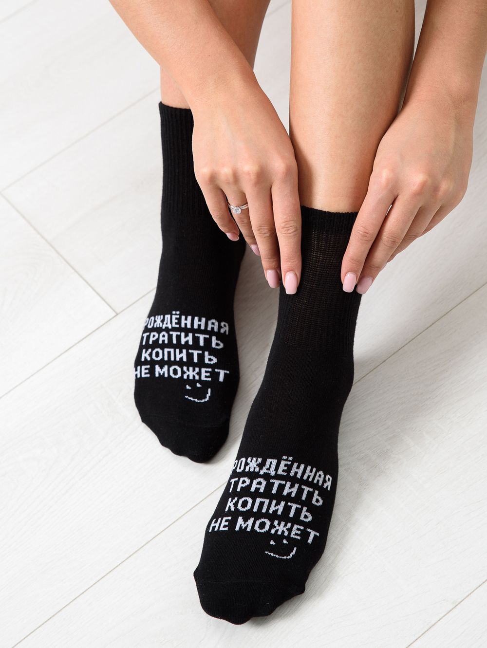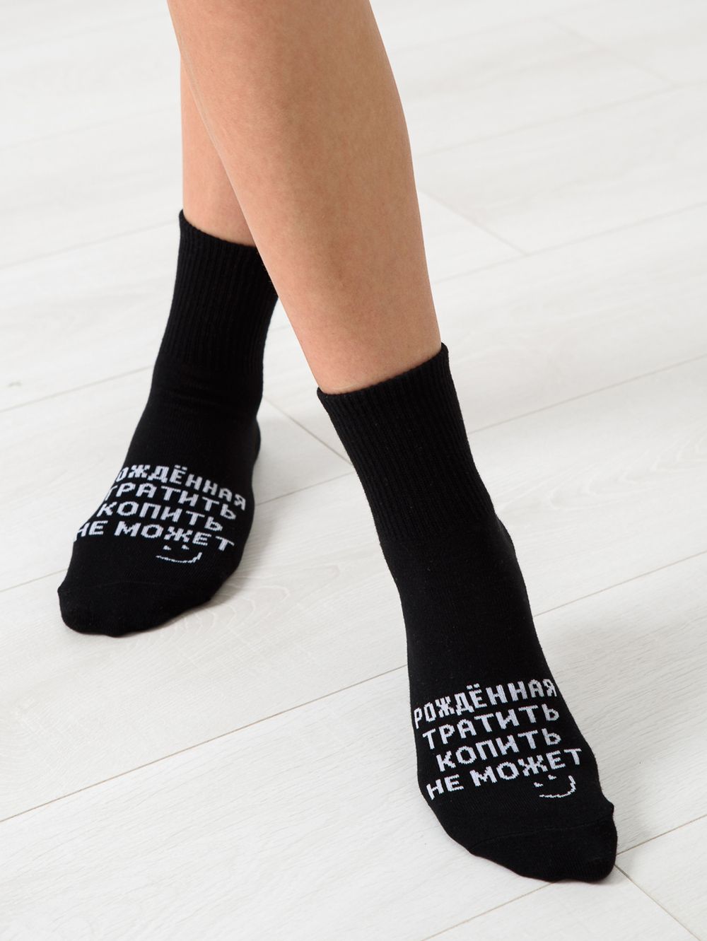 Выбери носки для тех, кто знает: жизнь одна, а удовольствие — в каждой покупке! Яркий принт “Рождённая тратить, копить не может” поднимет настроение тебе и всем вокруг. Мягкий хлопок, отличная посадка, долговечность и нескучный дизайн — именно то, что нужно для максимального комфорта и самовыражения.