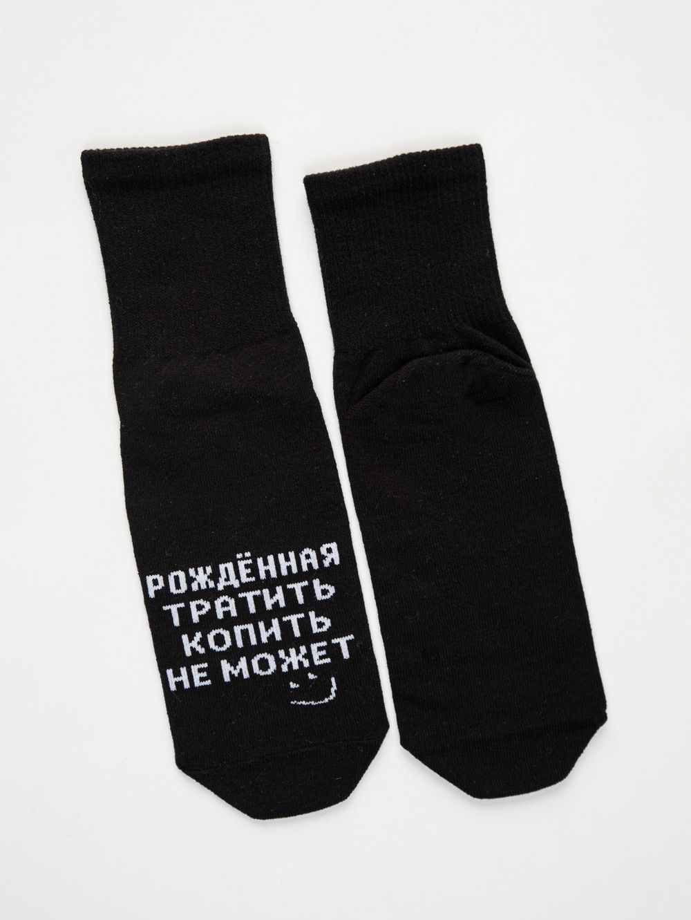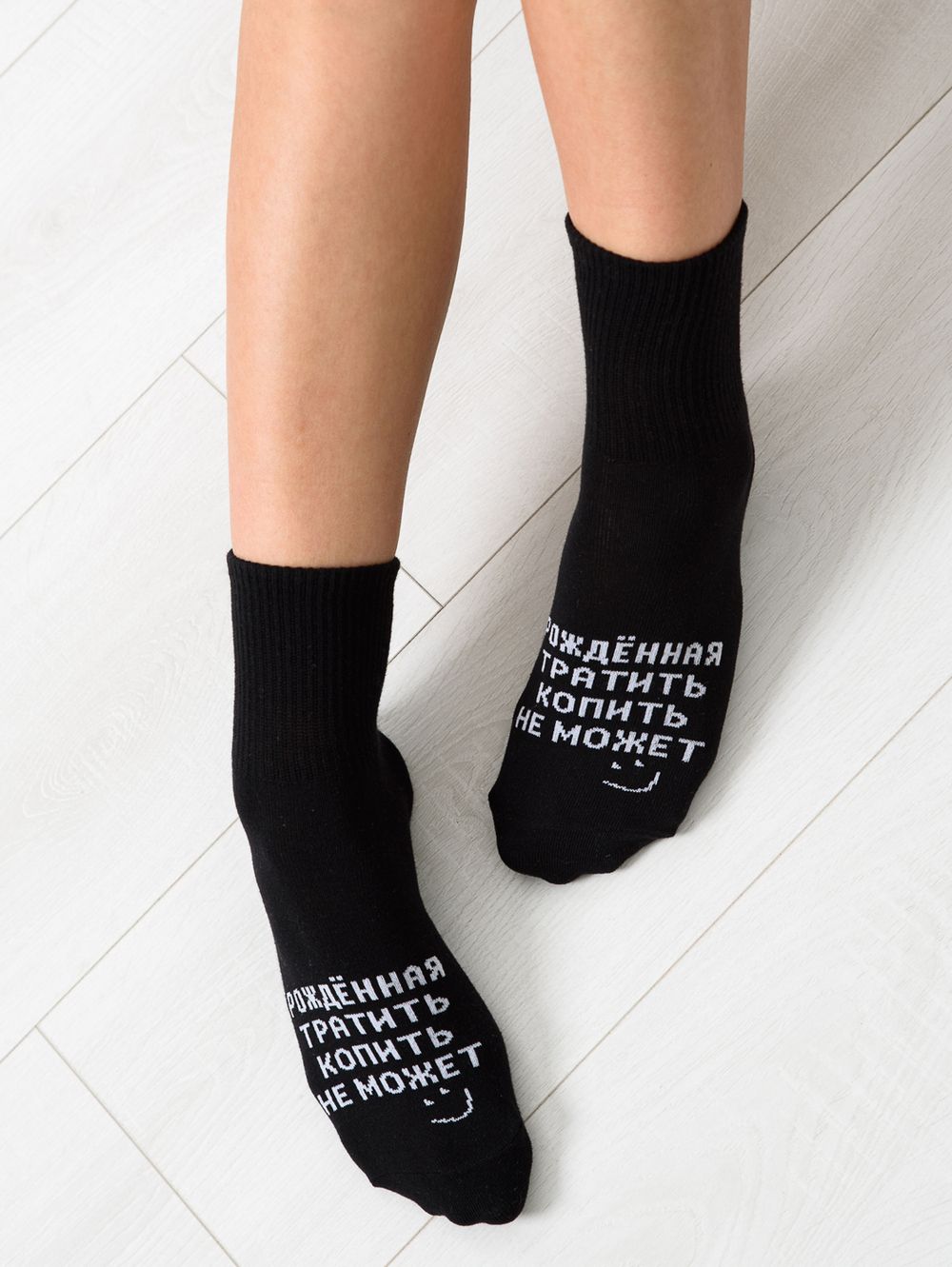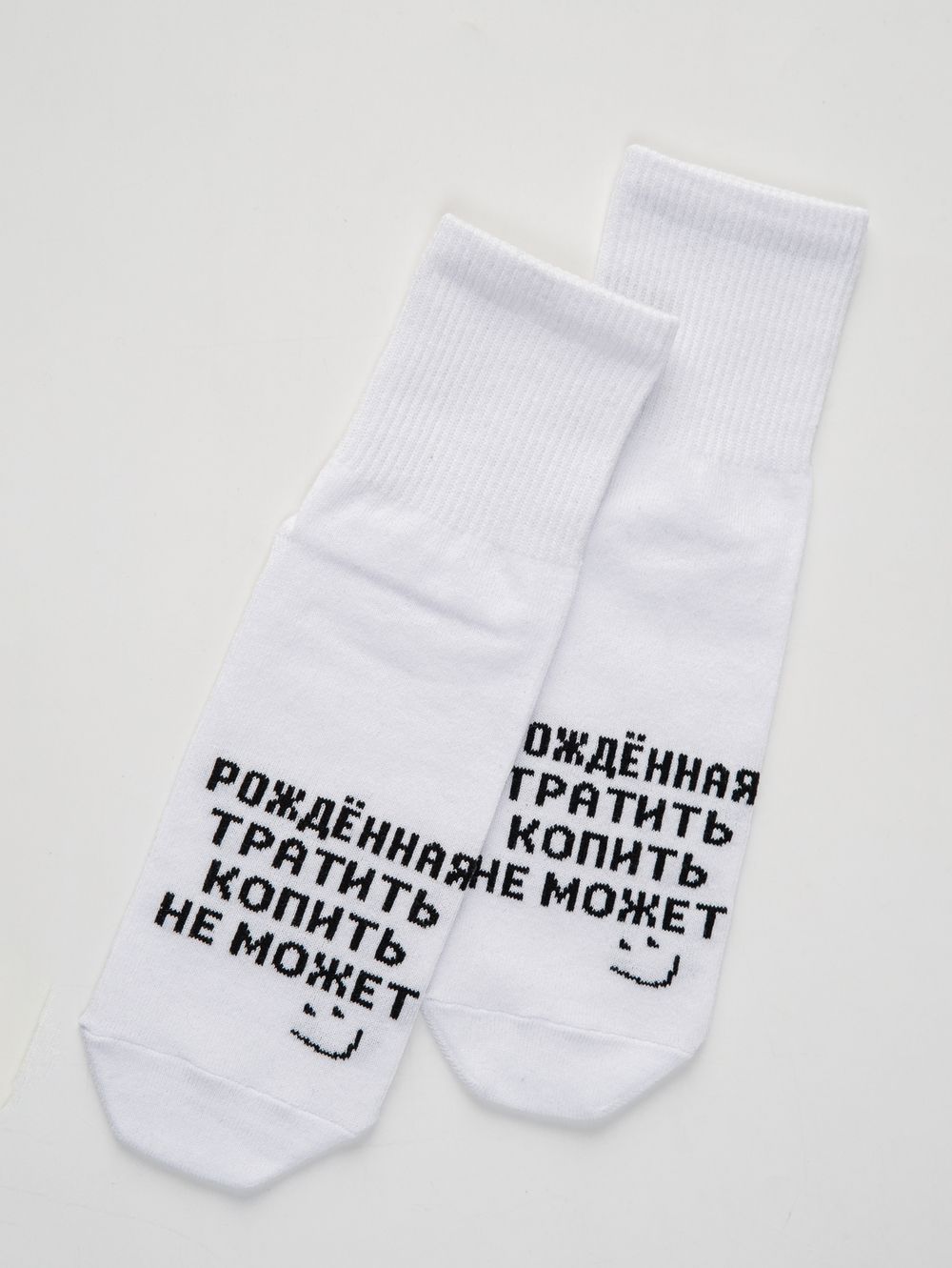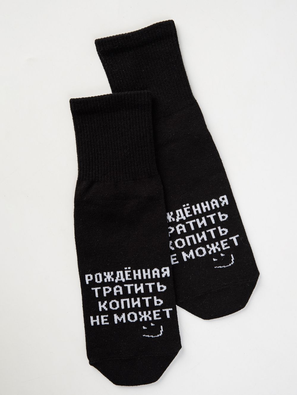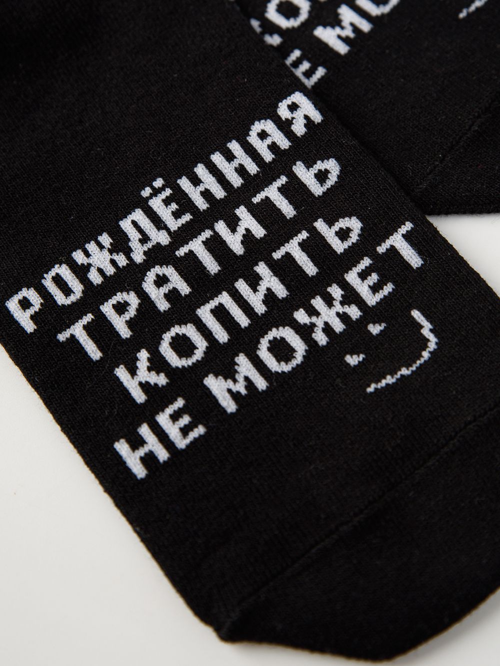 Выбери носки для тех, кто знает: жизнь одна, а удовольствие — в каждой покупке! Яркий принт “Рождённая тратить, копить не может” поднимет настроение тебе и всем вокруг. Мягкий хлопок, отличная посадка, долговечность и нескучный дизайн — именно то, что нужно для максимального комфорта и самовыражения.
