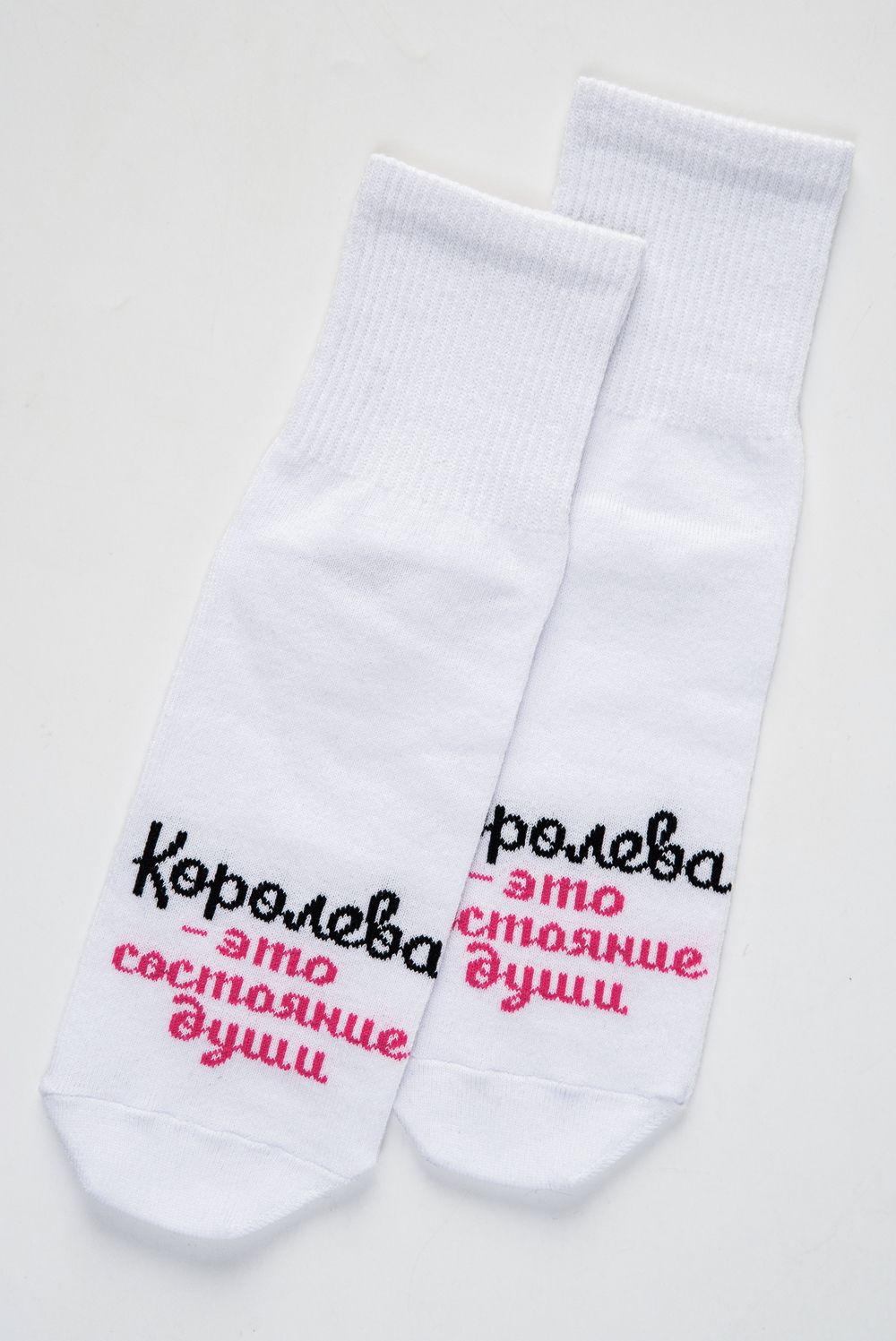 Добавьте изюминку в свой повседневный образ! Белые носки с яркой надписью «Королева – это состояние души» вдохновят на уверенность и поднимут настроение каждый день. Мягкий хлопок, идеальная посадка — выбирайте стиль, который говорит за вас! Подходят для подарка и для себя любимой.