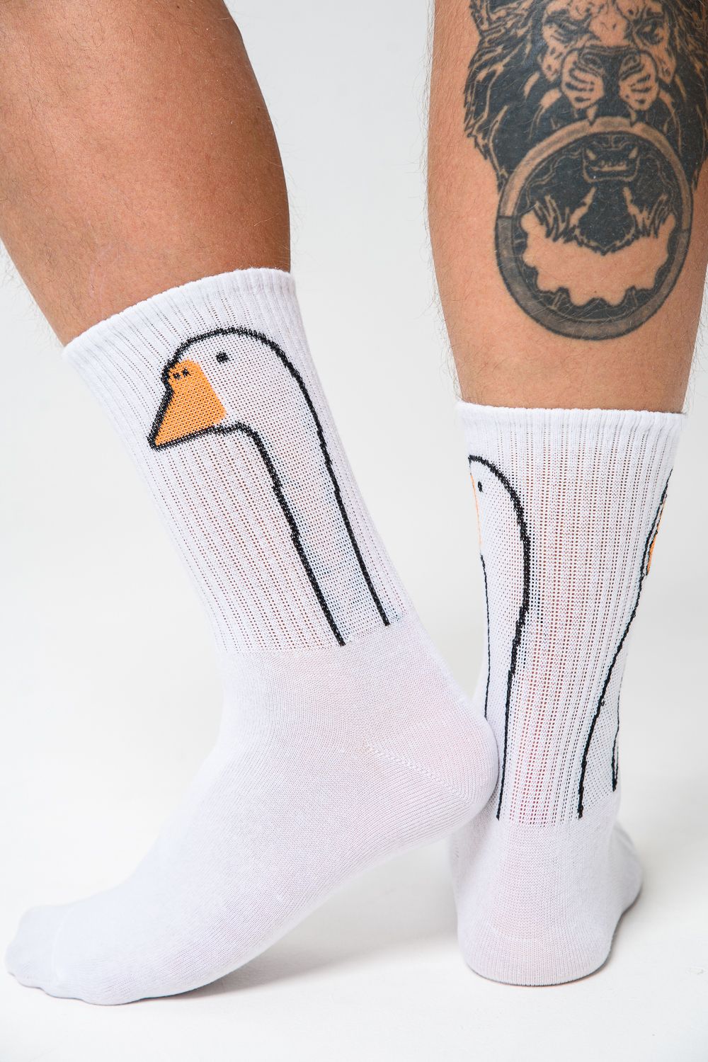 Трендовые мужские носки с гусем. Эта птица покорила сердца многих людей. Комплект 2 пары с изображением популярного гуся.