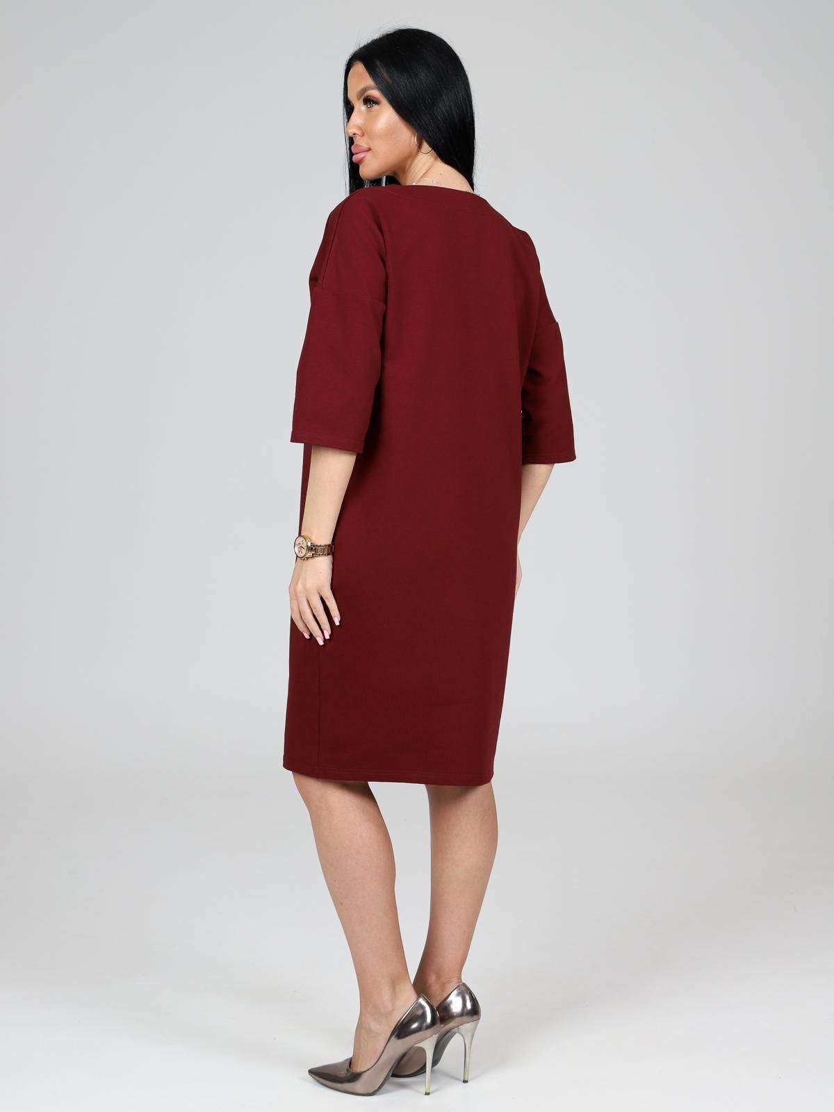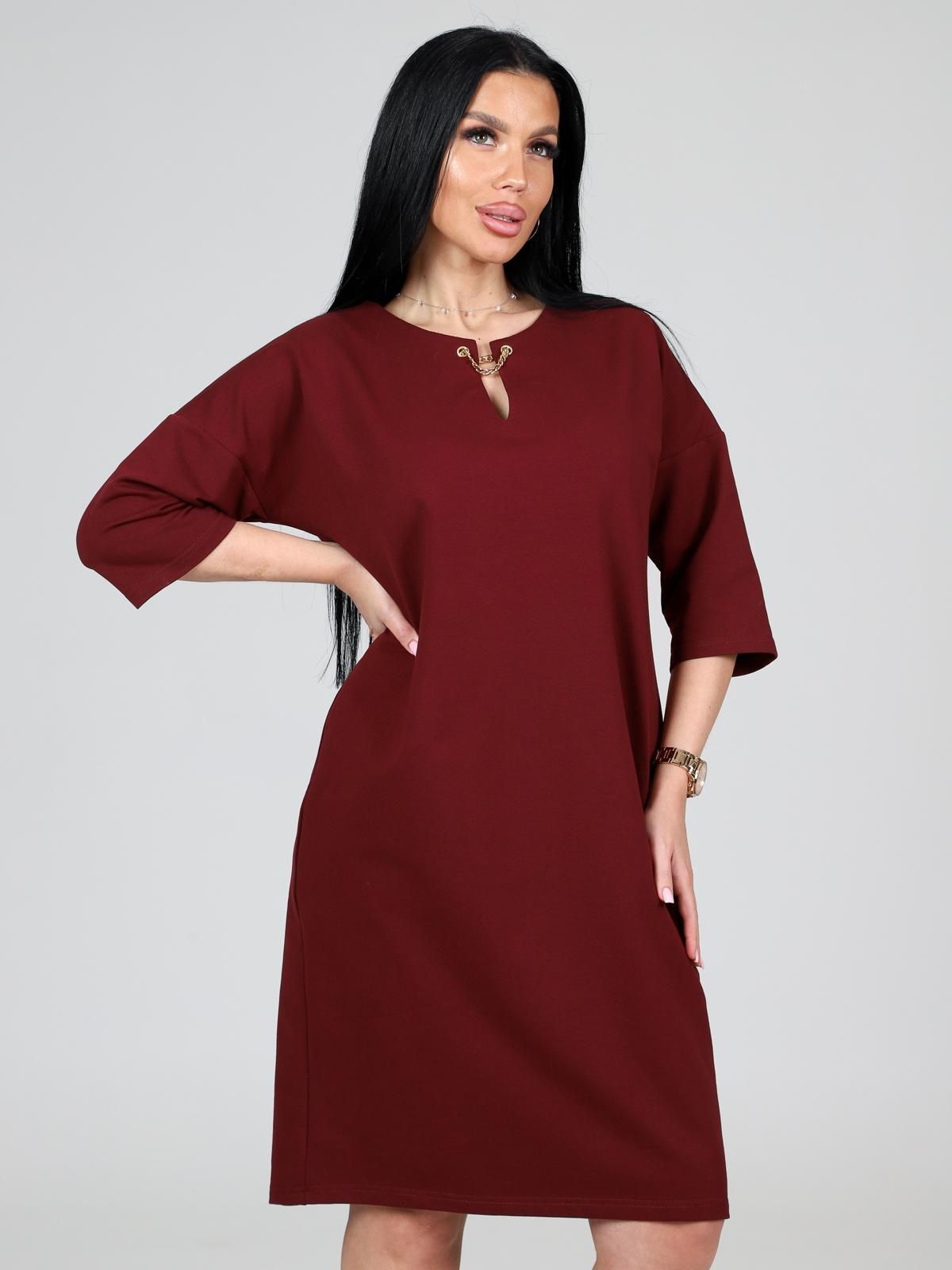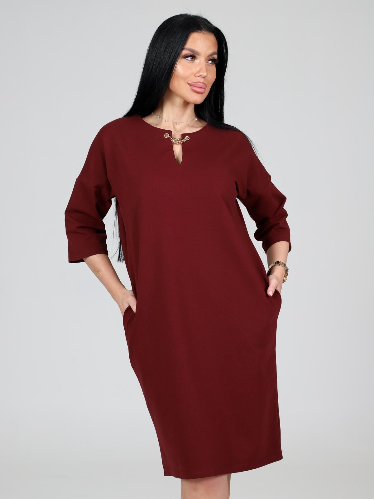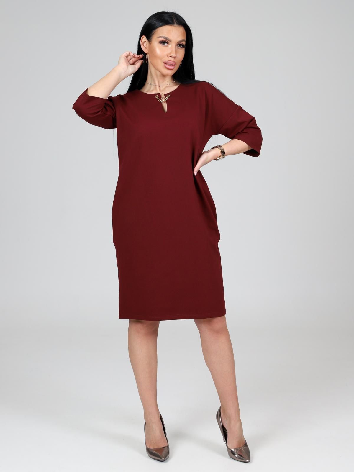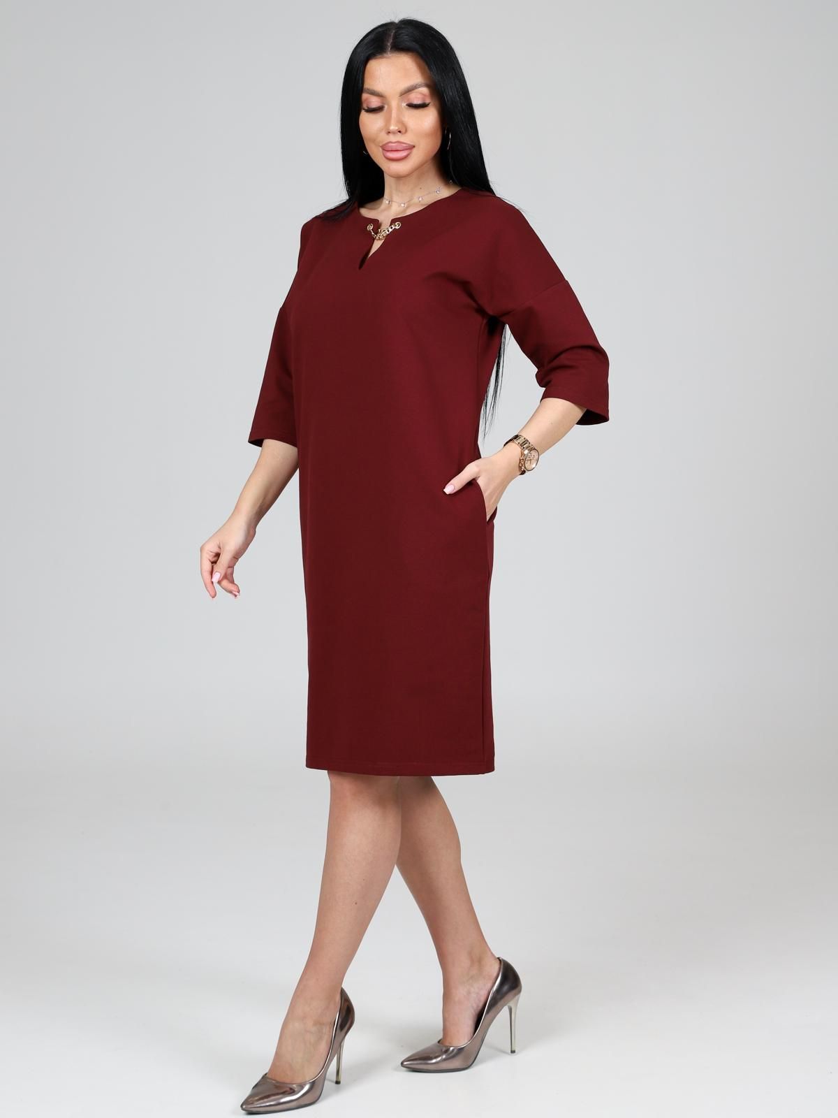 Платье подойдет для торжественного случая, а так же для повседневной носки. Модель прямого силуэта, длиной до колен, с карманами в боковых швах, рукав ¾. Модная, универсальная модель походит всем - стройным женщинам и дамам с формами.