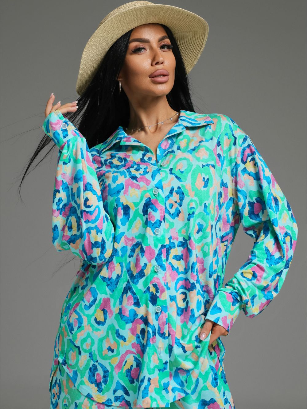 Рубашка прямого силуэта с центральной бортовой застежкой на пуговицы, с втачным воротником,