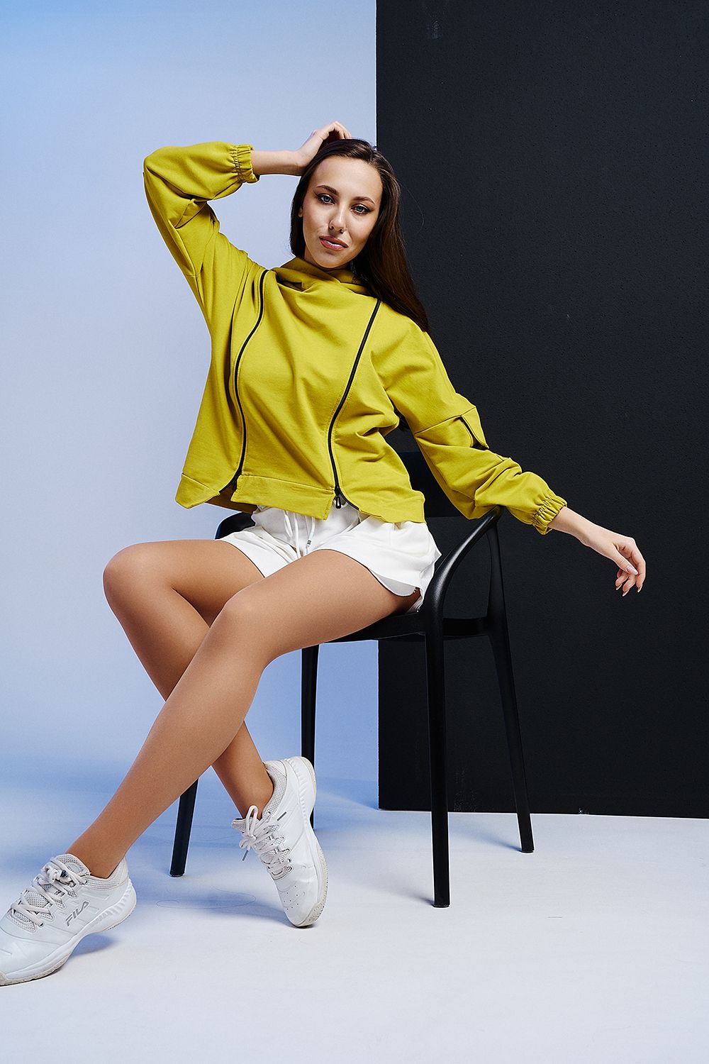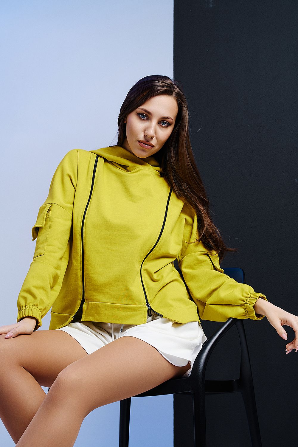 Женская толстовка с двумя молниями, капюшоном, карманами на рукавах. Свободного силуэта для тех, кто ценит комфорт.