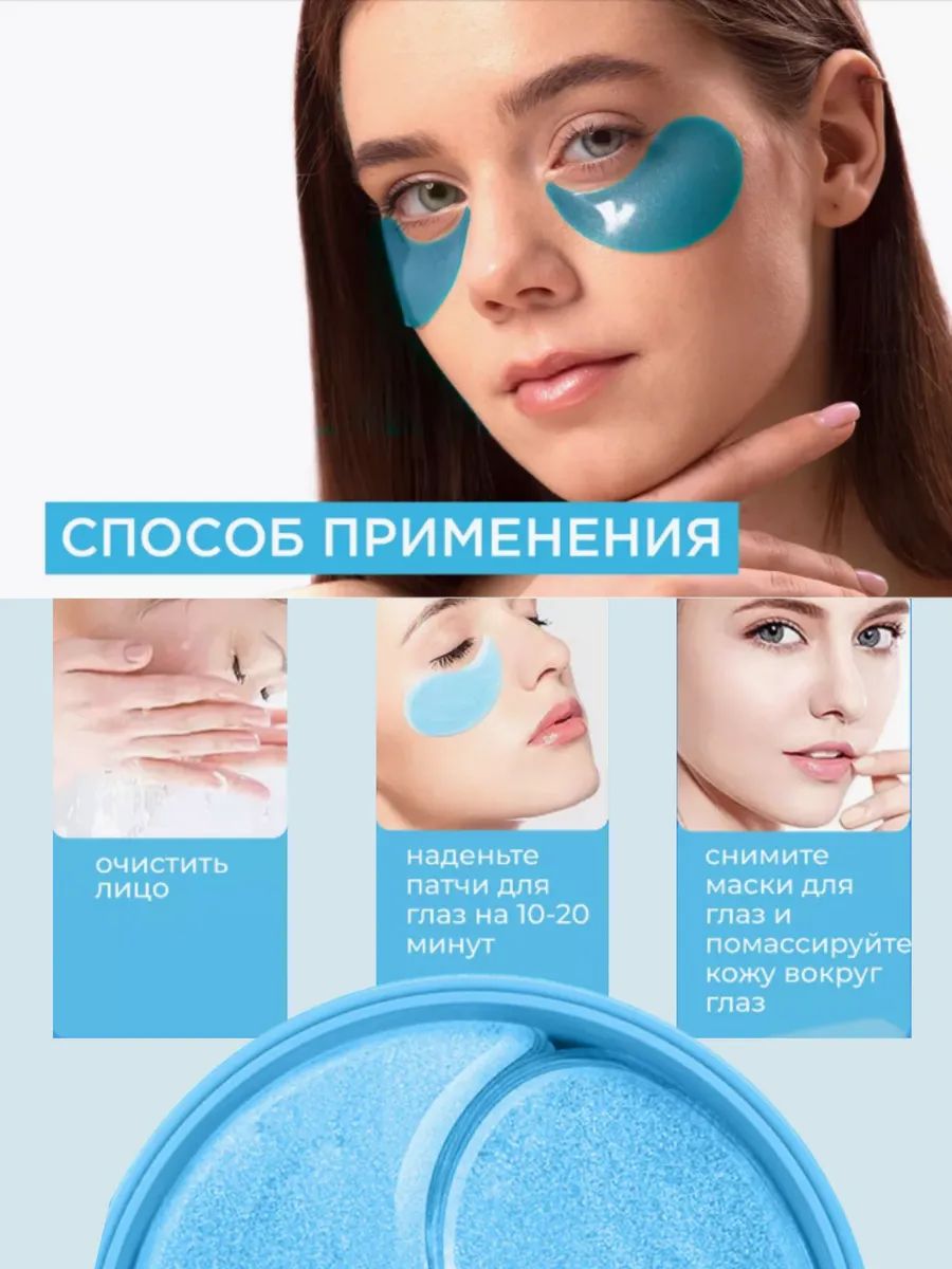 Одноразовые гидрогелевые патчи для глаз от отеков и мешков 60 шт. - эффективная уходовая косметика с увлажняющим и лимфодренажным эффектом. Патчи от азиатского бренда с витаминами и активными веществами содержат коллаген и гиалуроновую кислоту, что делает данный продукт идеальным для антивозрастного ухода. Эти компоненты способствуют улучшению цвета кожи, разглаживанию неровностей и морщин. Косметический продукт поможет справиться с отеками и синяками в области нижнего века. Патчи также можно применять на всех зонах области лица. Противоотечные гидрогелевые патчи для профессионального ухода за кожей вокруг глаз поставляются в баночке с крышкой, удобной для использования и хранения. Набор подойдет для взрослых женщин и молодых девушек, а так же мужчин. Косметический продукт в гигиеничном одноразовом формате поможет обеспечить профессиональный уход за областью вокруг глаз в домашних условиях. Патчи с омолаживающим лифтинг - эффектом от темных кругов способствуют уменьшению глубины морщинок и восстановлению упругости дермы. Витаминные патчи обеспечивают глубокое увлажнение и питание кожи. Средство с активными ингредиентами подходит для ежедневного ухода и имеет накопительный эффект. Корейская косметика для подростков известна своей эффективностью. Используйте патчи после сна или в течение дня, чтобы быстро снять отеки и тонизировать кожу. Они способствуют осветлению и выравниванию тона, сужению пор, подтяжке контура век. Уходовая косметика не оставляет жирного блеска и ощущения пленки. Подойдет для всех типов кожи, включая сухую и чувствительную.