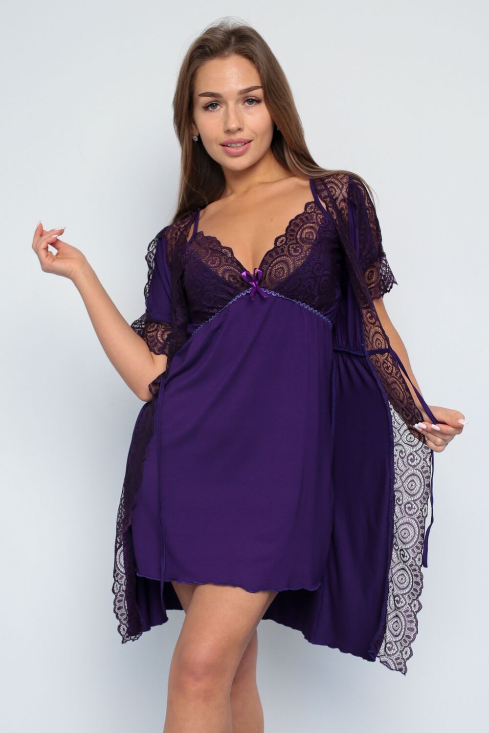 Пеньюар с сорочкой из вискозы представляет собой элегантный женский комплект нижнего белья, предназначенный для домашнего комфорта и романтического образа. Такой комплект идеально подходит для особых случаев, создавая атмосферу роскоши и нежности. Он подчеркнёт женственность фигуры, сохраняя комфорт и уют. Сорочка и халат с резинкойна талии.