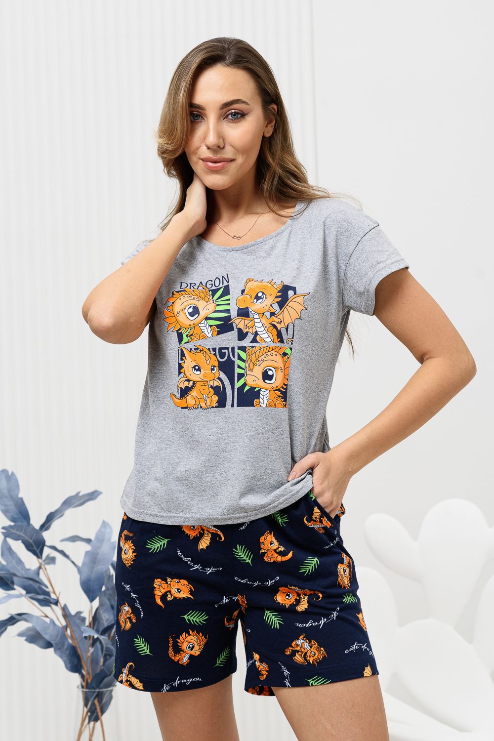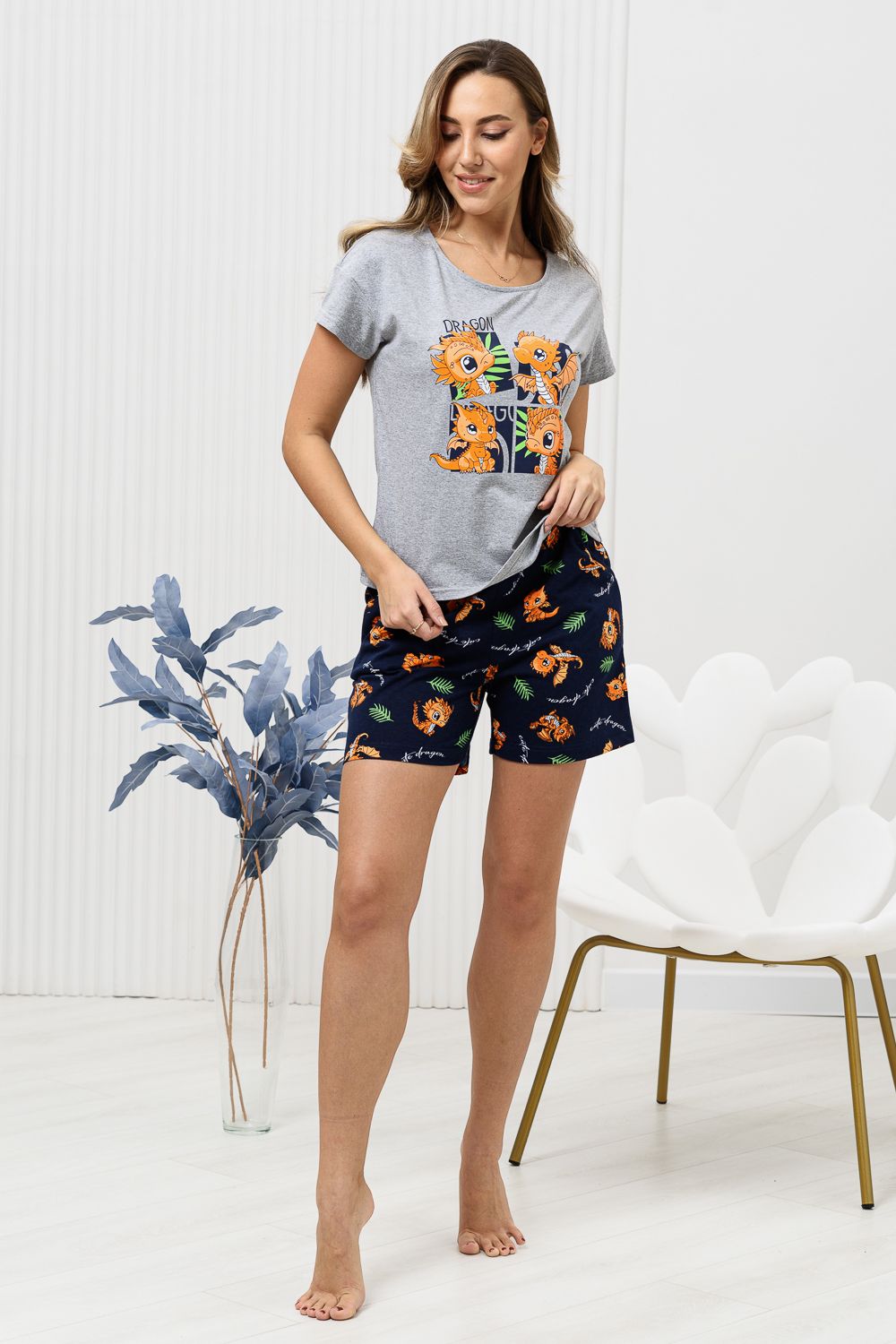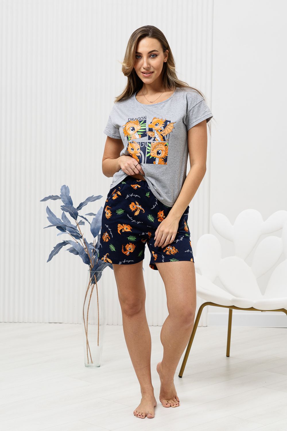 Удобная и очень комфортная пижама с новогодней символикой. Футболка из кулирной ткани - меланж украшена ярким принтом с изображением очаровательных дракончиков - символом 2024 года. Рукав короткий, спущенная пройма, горловина обработана окантовкой и отстрочена, что придаёт изделию аккуратный и стильный вид. Шорты домашнего комплекта выполнены из полотна с рисунком, перекликающимся с принтом на футболке, имеют карманы. Комплект подойдёт как домашний костюм, и как изделие для сна, будет отличным подарком для ваших близких.