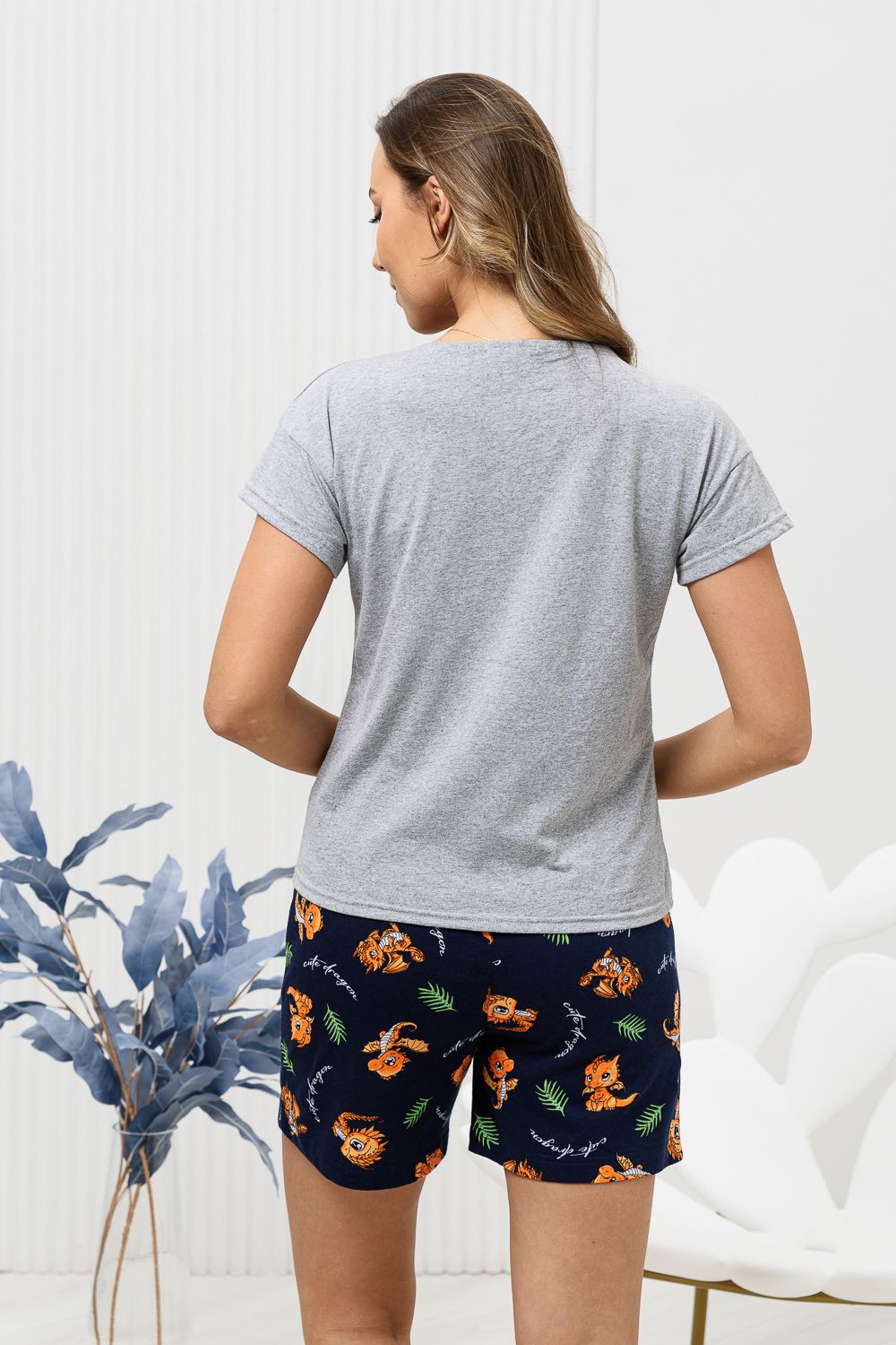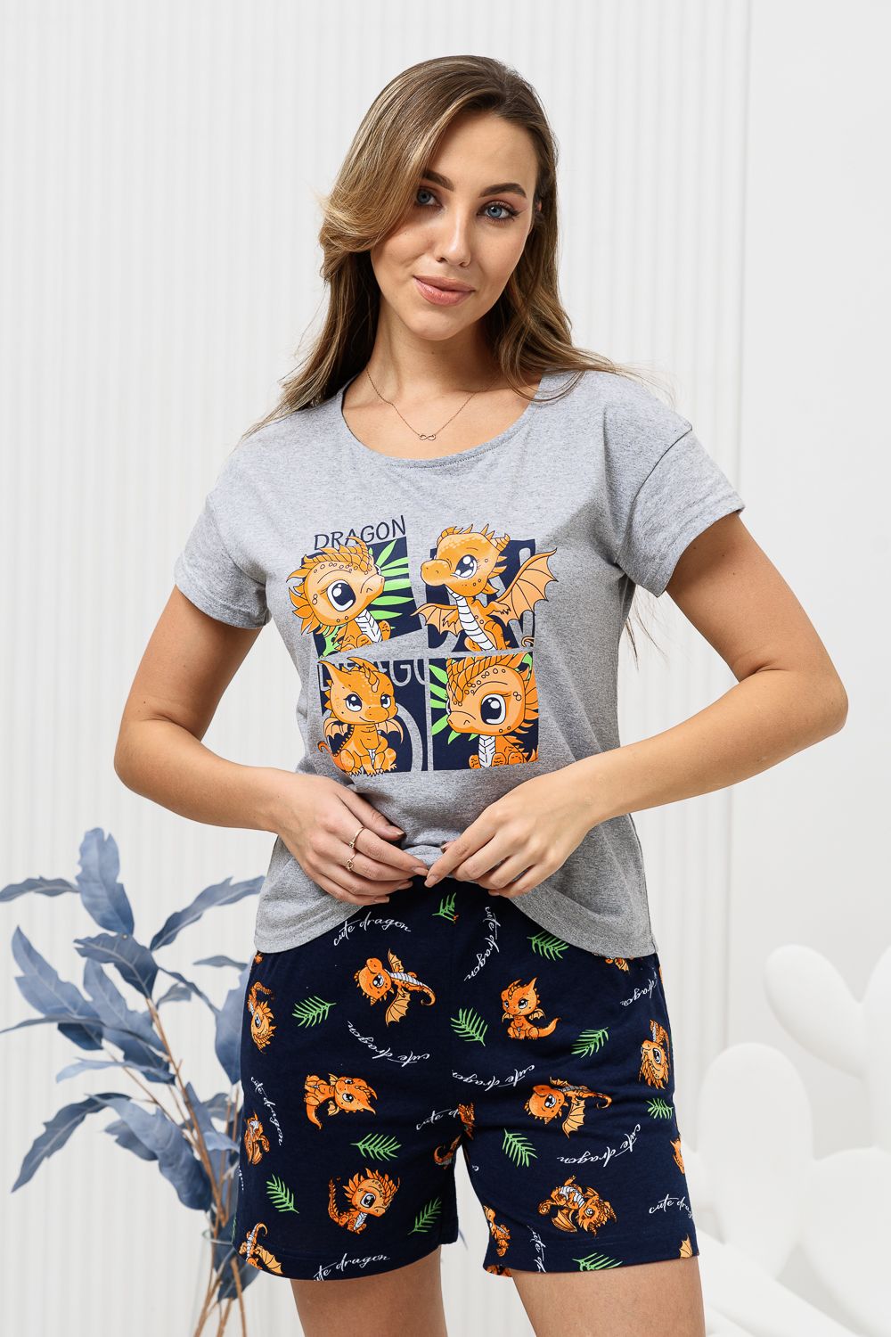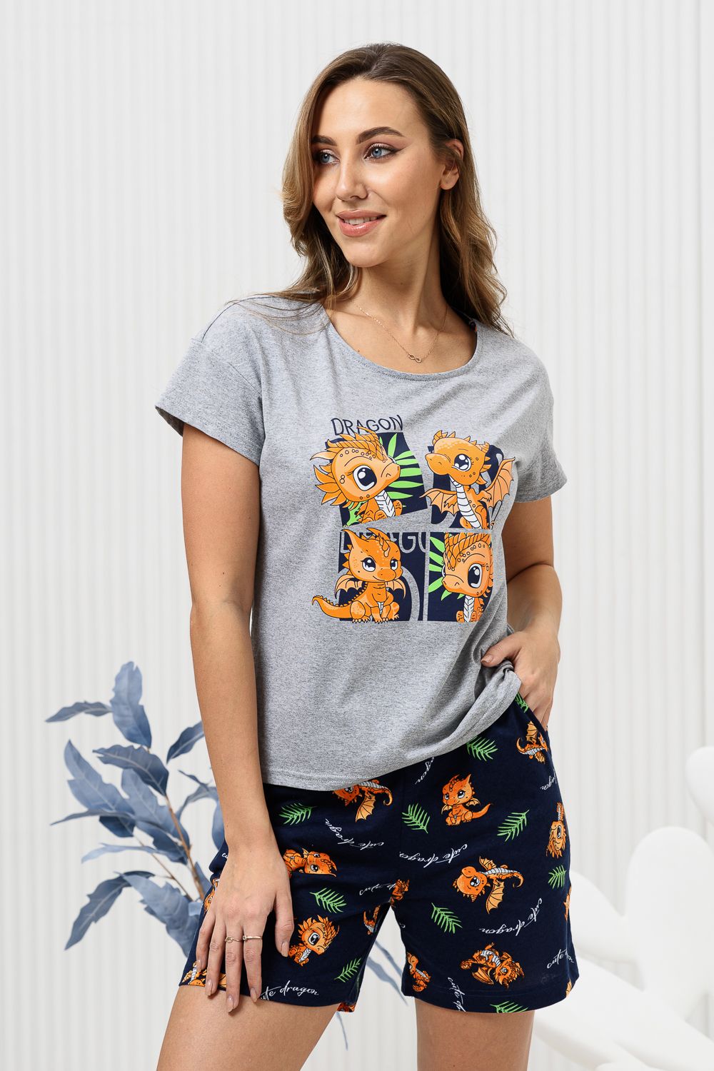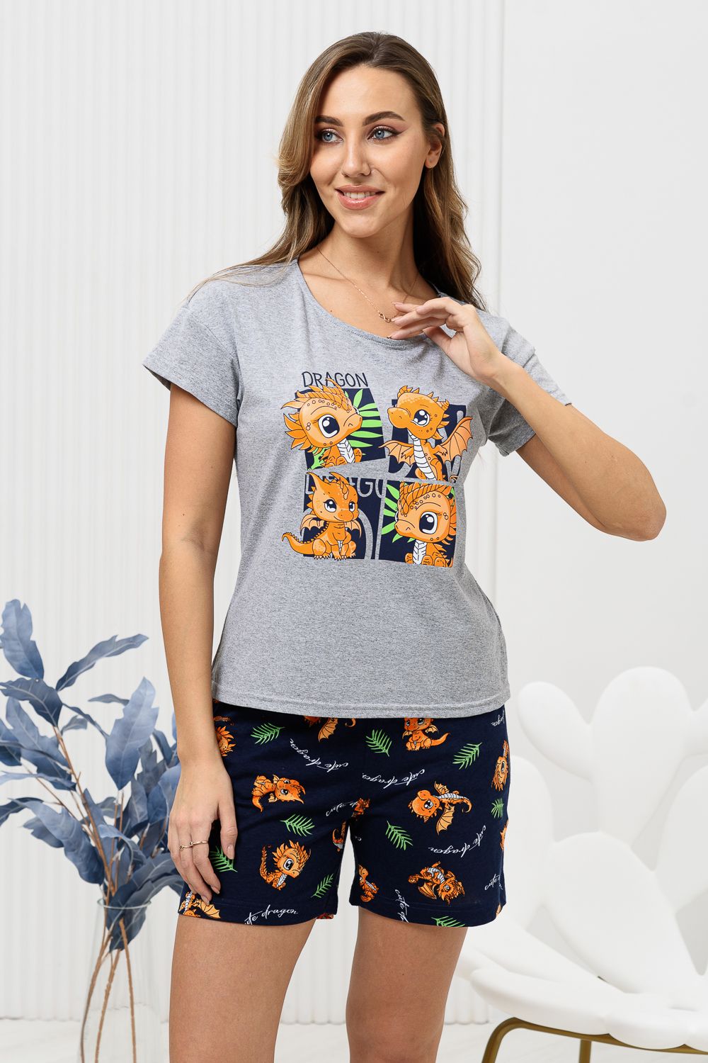 Удобная и очень комфортная пижама с новогодней символикой. Футболка из кулирной ткани - меланж украшена ярким принтом с изображением очаровательных дракончиков - символом 2024 года. Рукав короткий, спущенная пройма, горловина обработана окантовкой и отстрочена, что придаёт изделию аккуратный и стильный вид. Шорты домашнего комплекта выполнены из полотна с рисунком, перекликающимся с принтом на футболке, имеют карманы. Комплект подойдёт как домашний костюм, и как изделие для сна, будет отличным подарком для ваших близких.